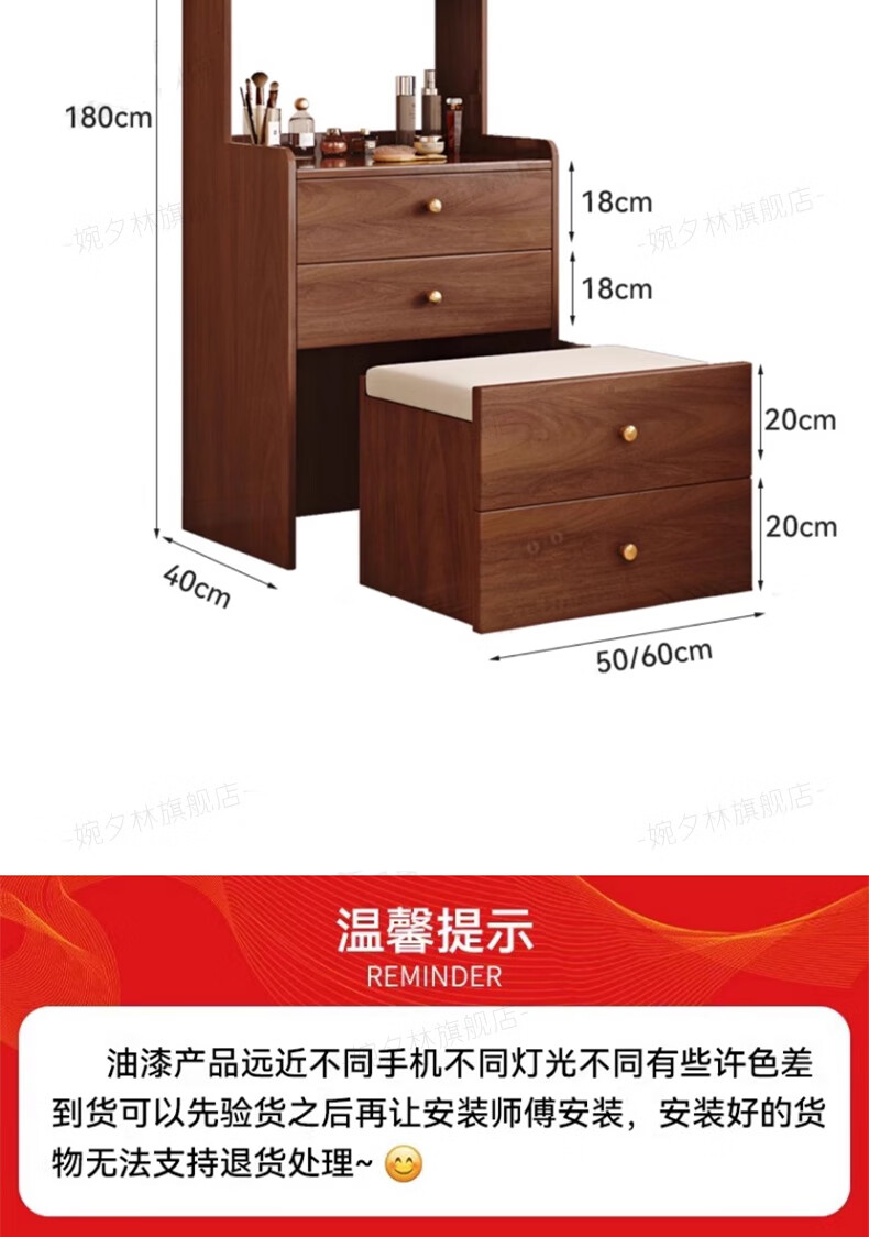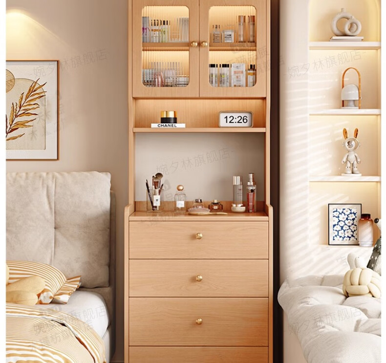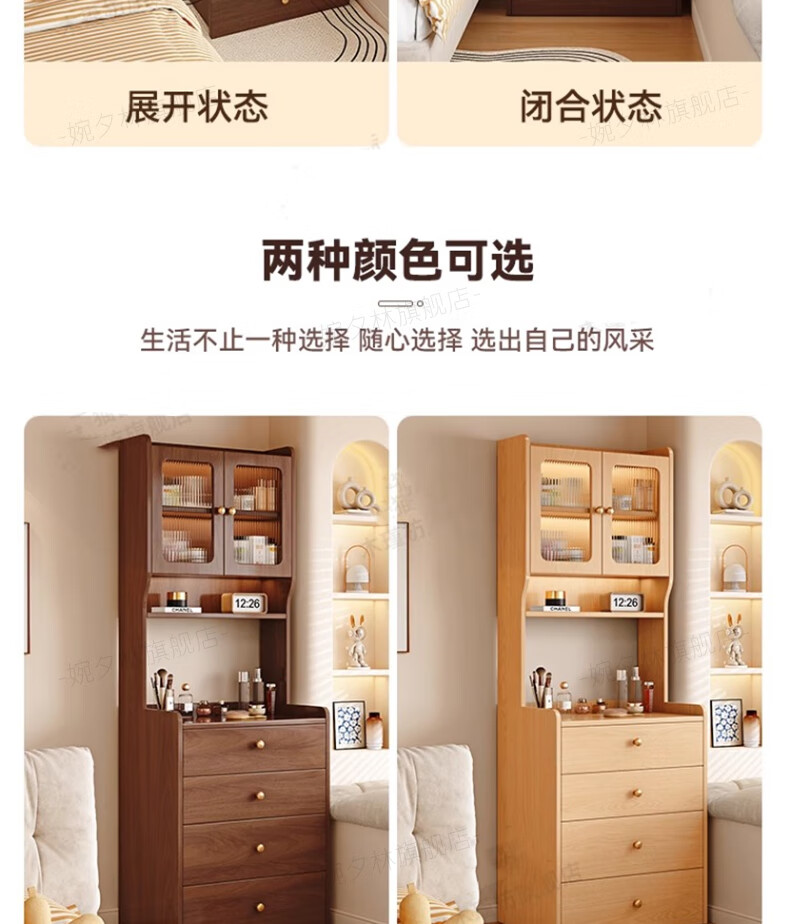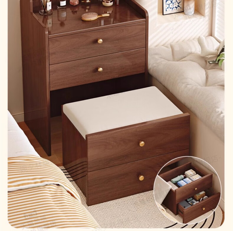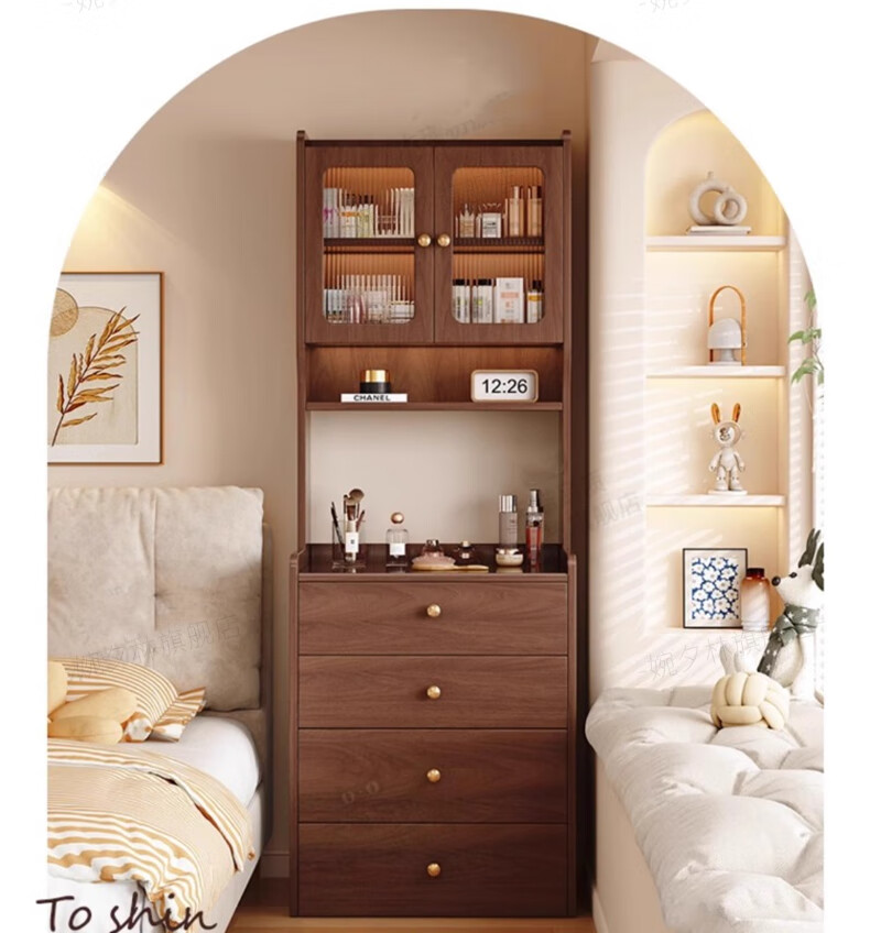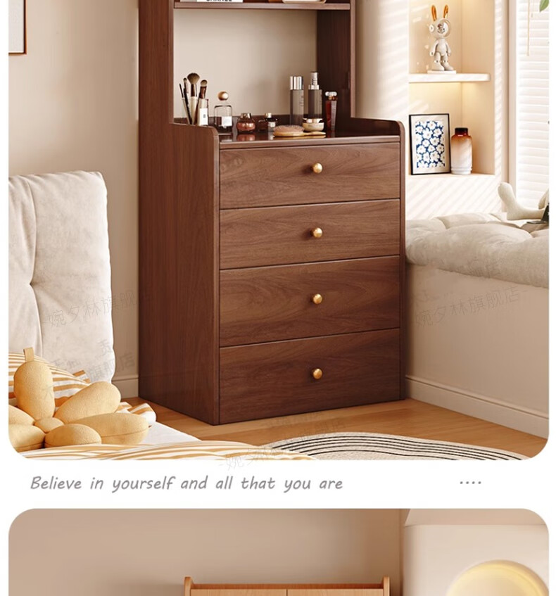 Wan Xilin solid wood dressing table makeup table modern bedroom simple drawer cabinet integrated small apartment bedside table makeup table storage cabinet 50CM-oak color + makeup stool