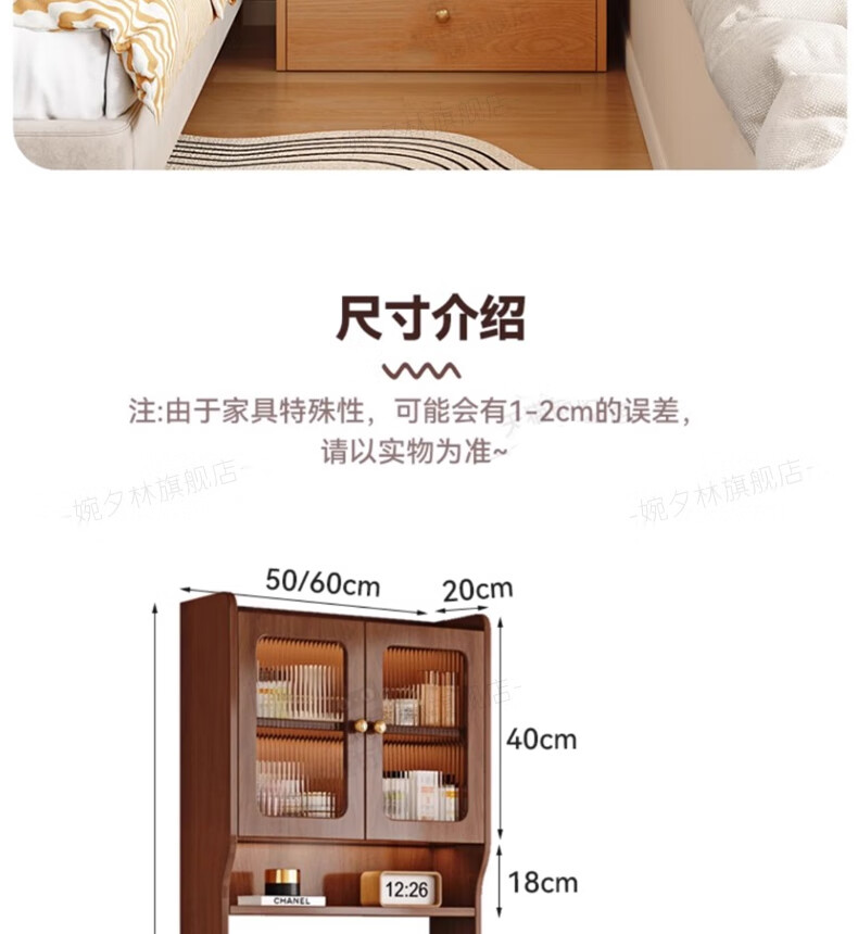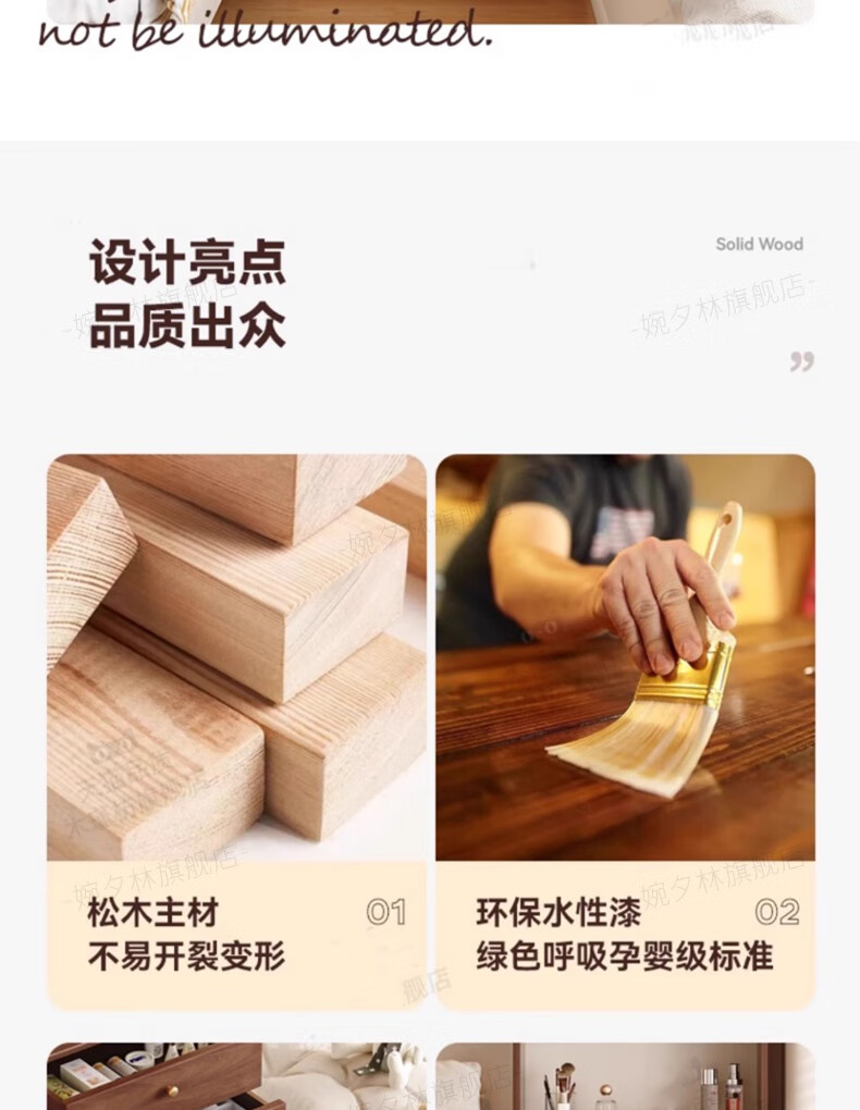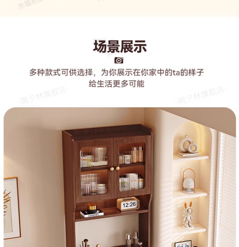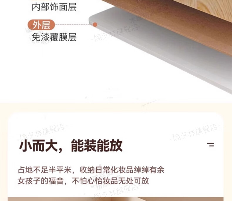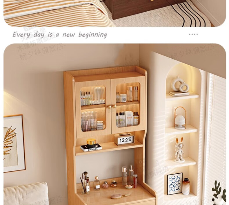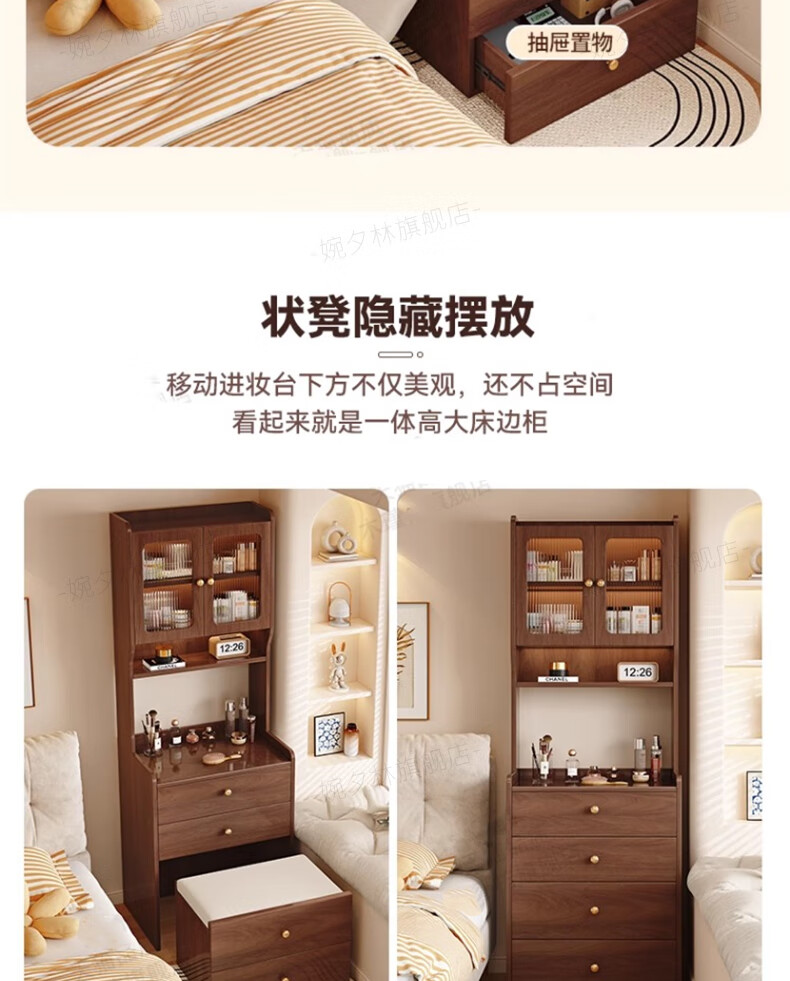 Wan Xilin solid wood dressing table makeup table modern bedroom simple drawer cabinet integrated small apartment bedside table makeup table storage cabinet 50CM-oak color + makeup stool