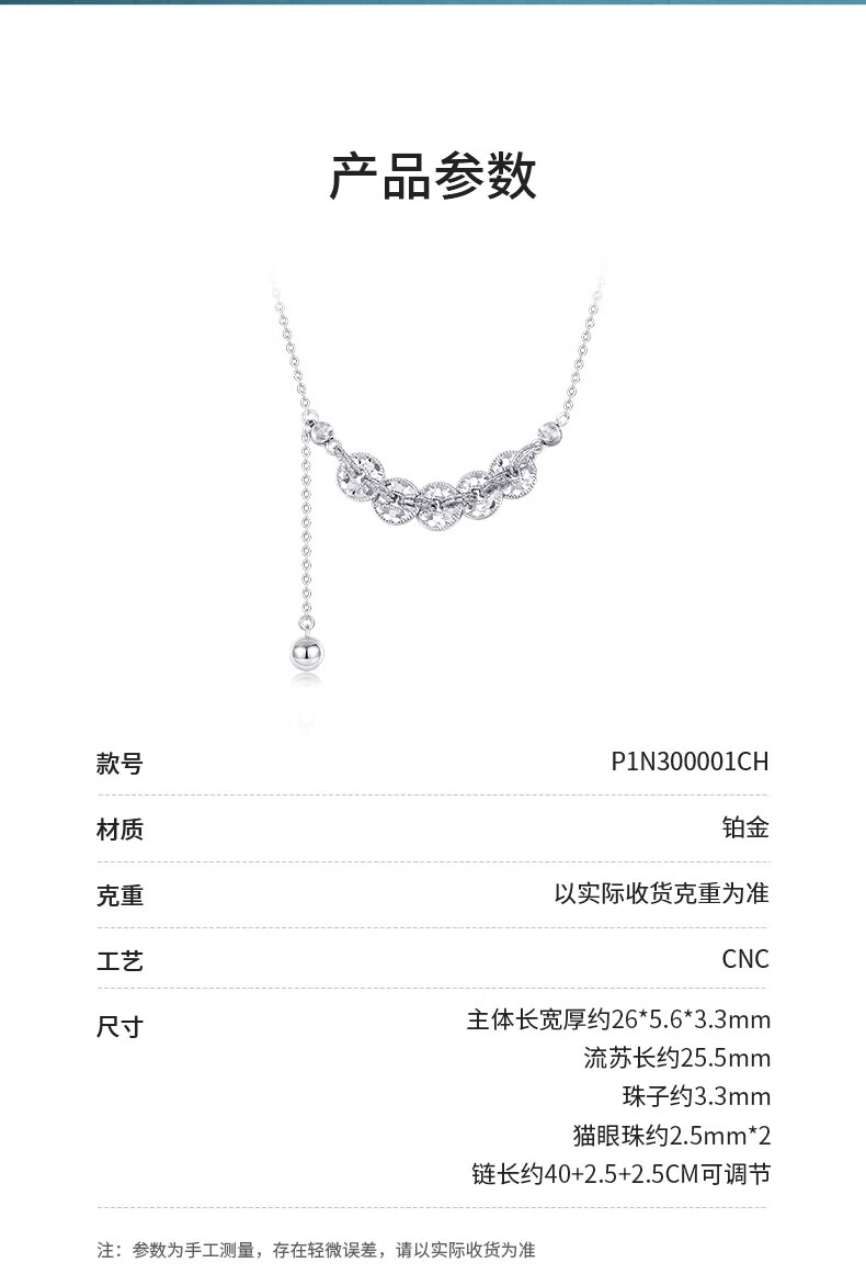 Zhou Taisheng Five Emperors Coin Platinum Necklace Women's pt950 Qiantu Shining Tassel Necklace Birthday Gift for Girlfriend 4.51g