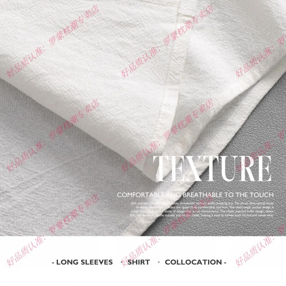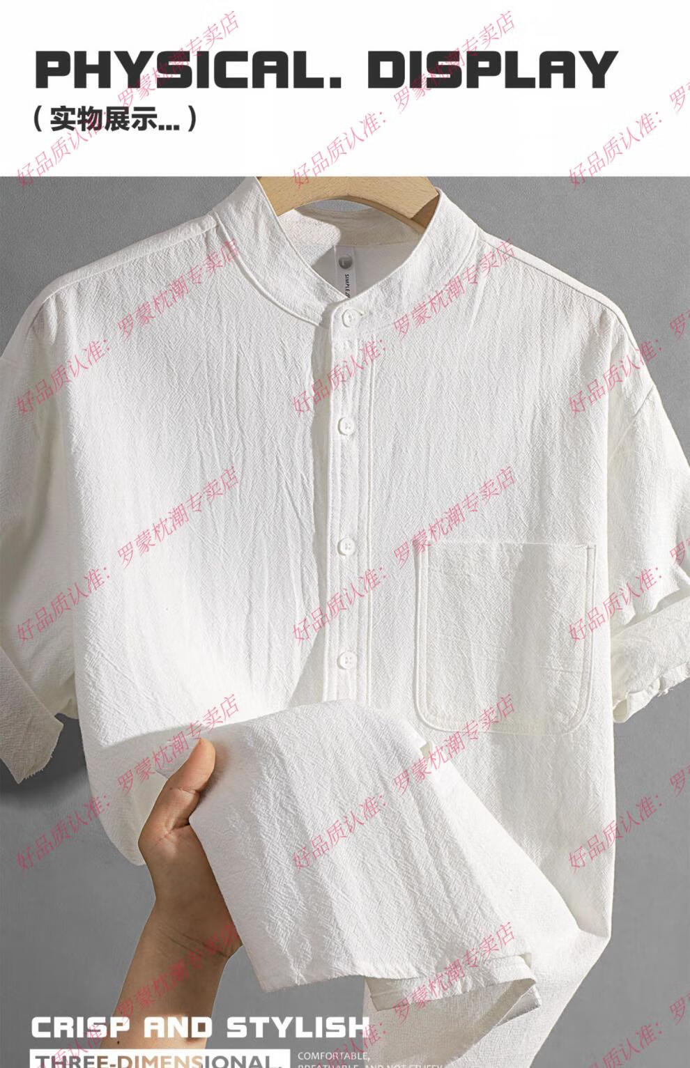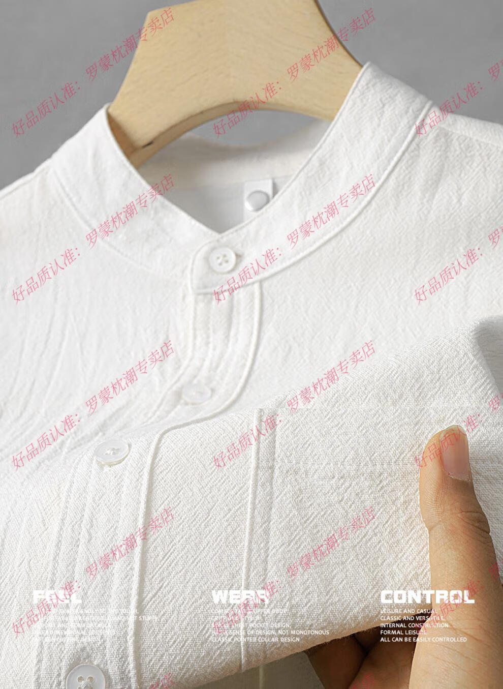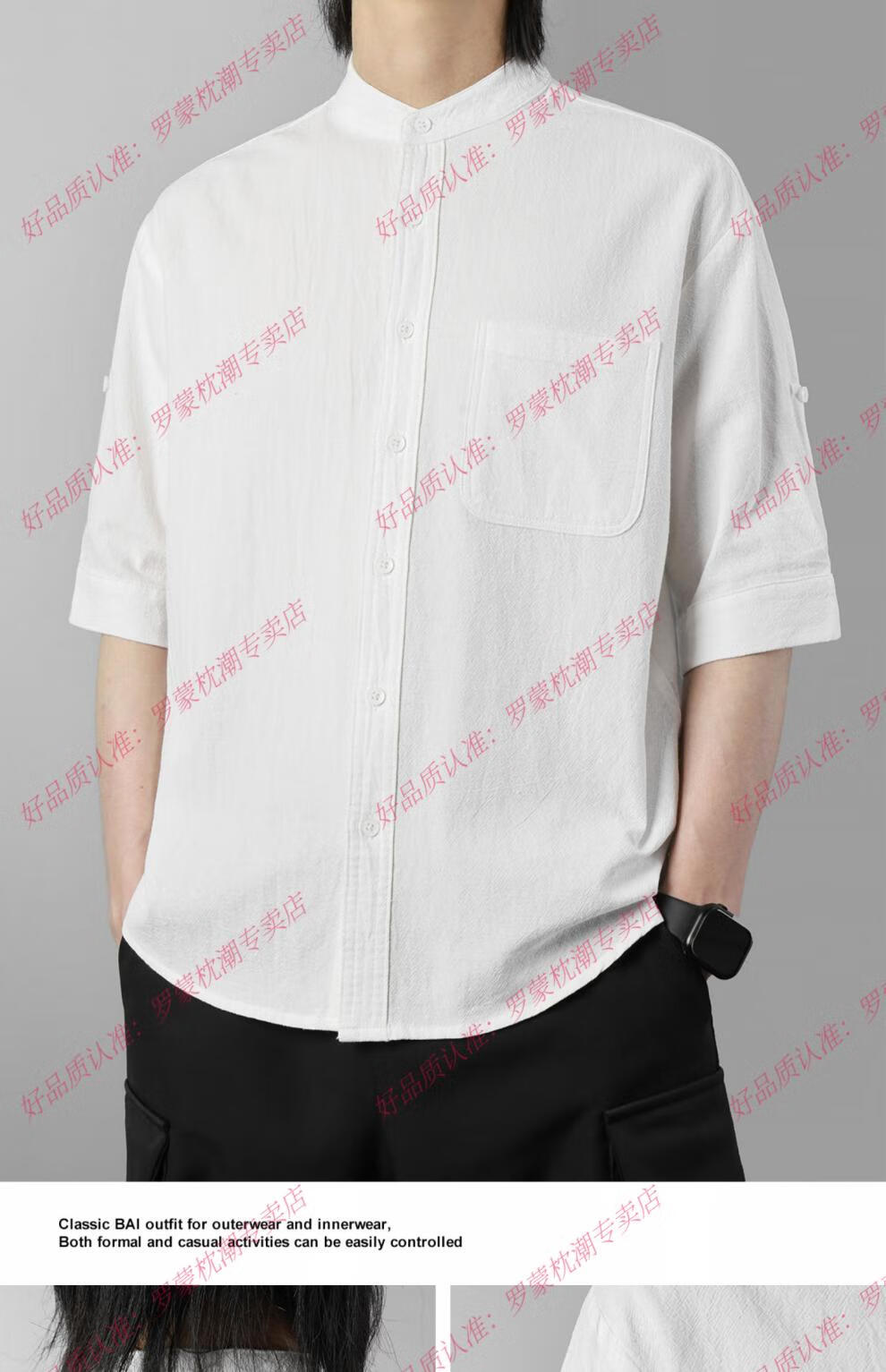 ROMON Men's stand-collar white short-sleeved shirt Men's Japanese round neck three-quarter sleeve T-shirt Henry collar textured shirt C1020-white-three-quarter sleeve L 90-110Jin Jin equals 0.5 kg