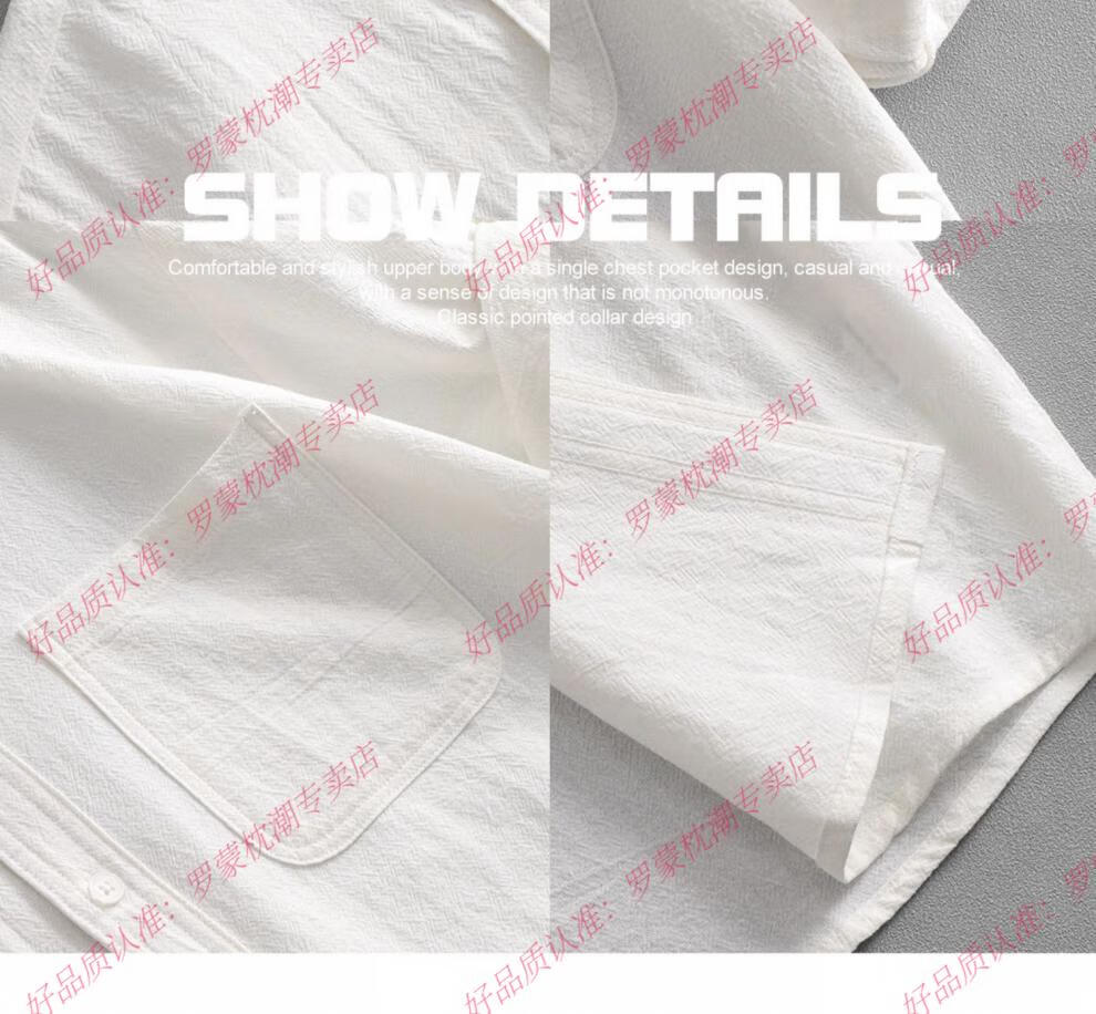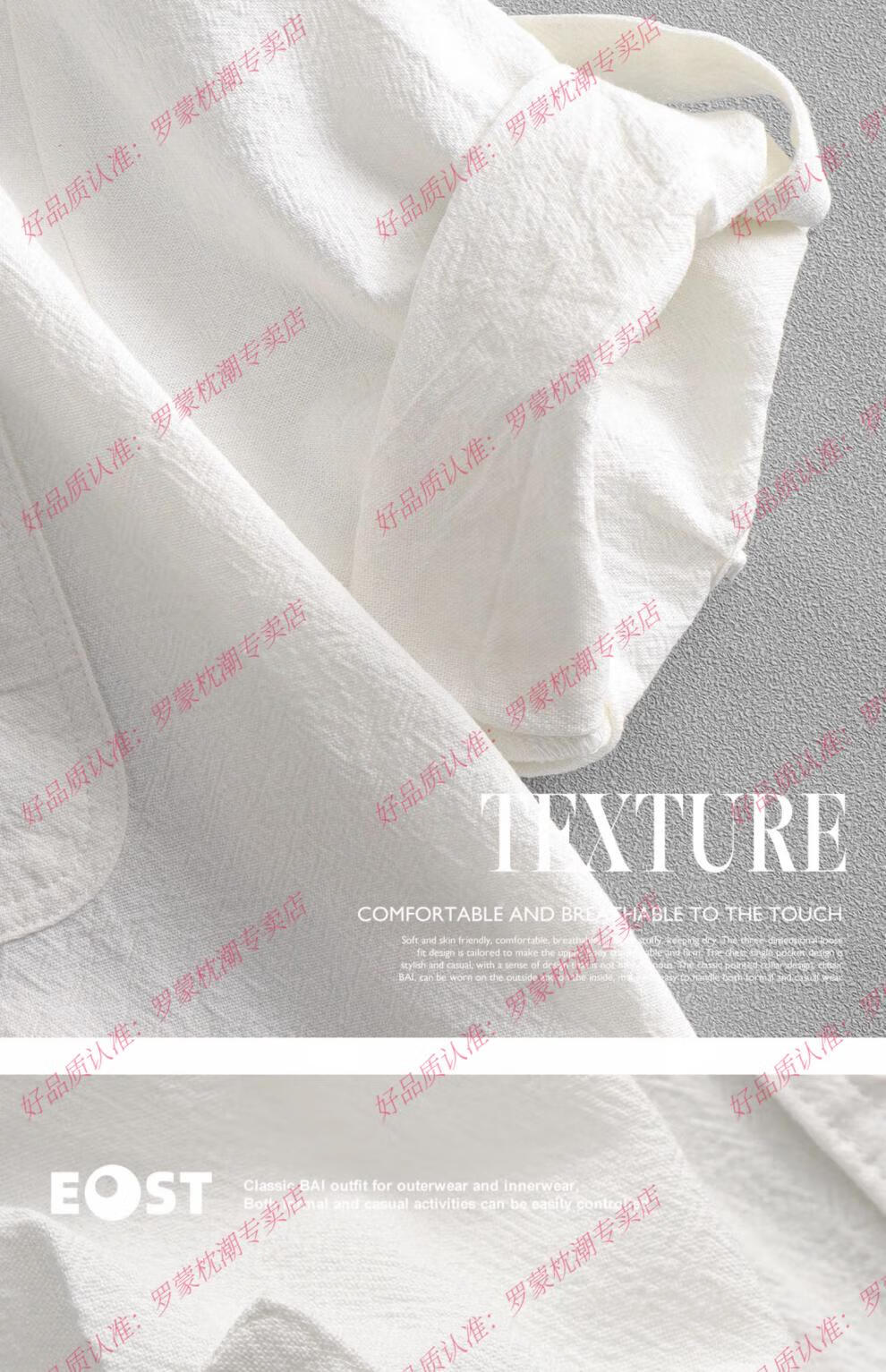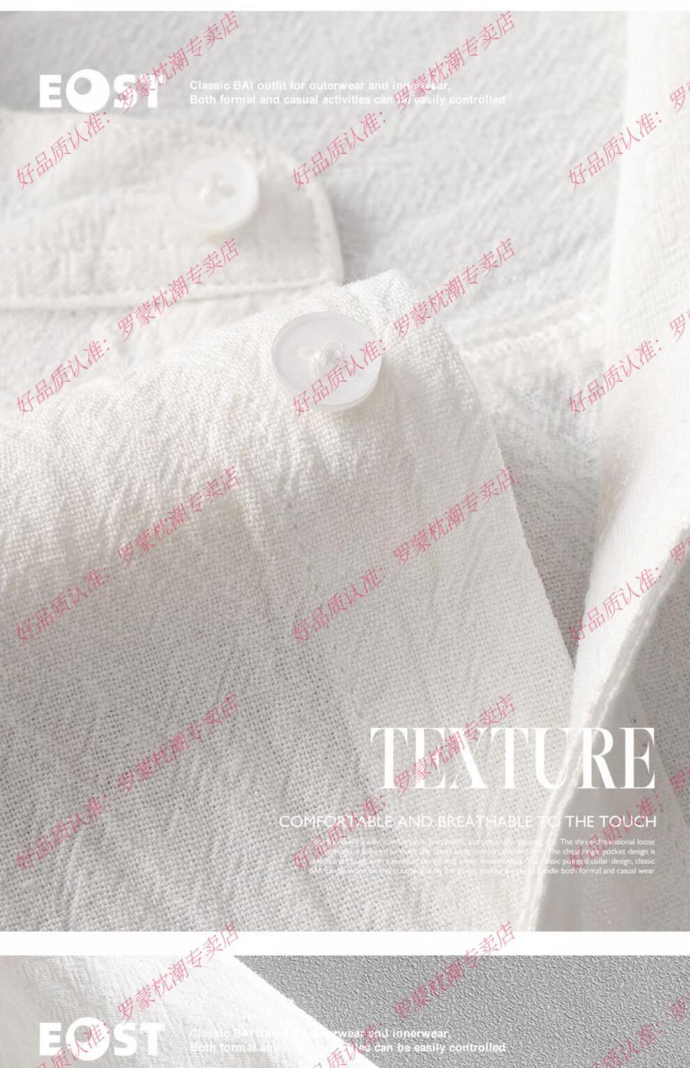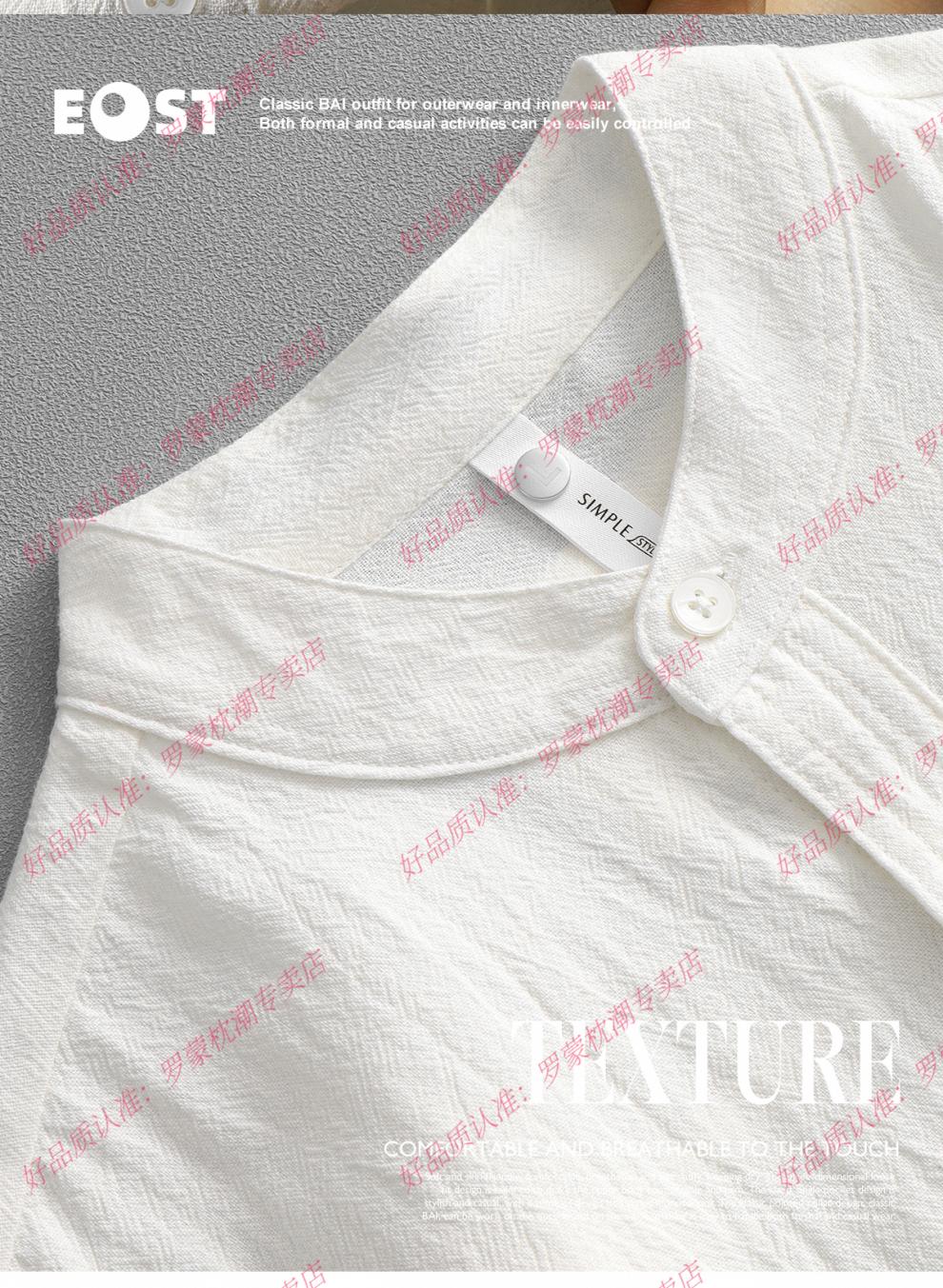 ROMON Men's stand-collar white short-sleeved shirt Men's Japanese round neck three-quarter sleeve T-shirt Henry collar textured shirt C1020-white-three-quarter sleeve L 90-110Jin Jin equals 0.5 kg