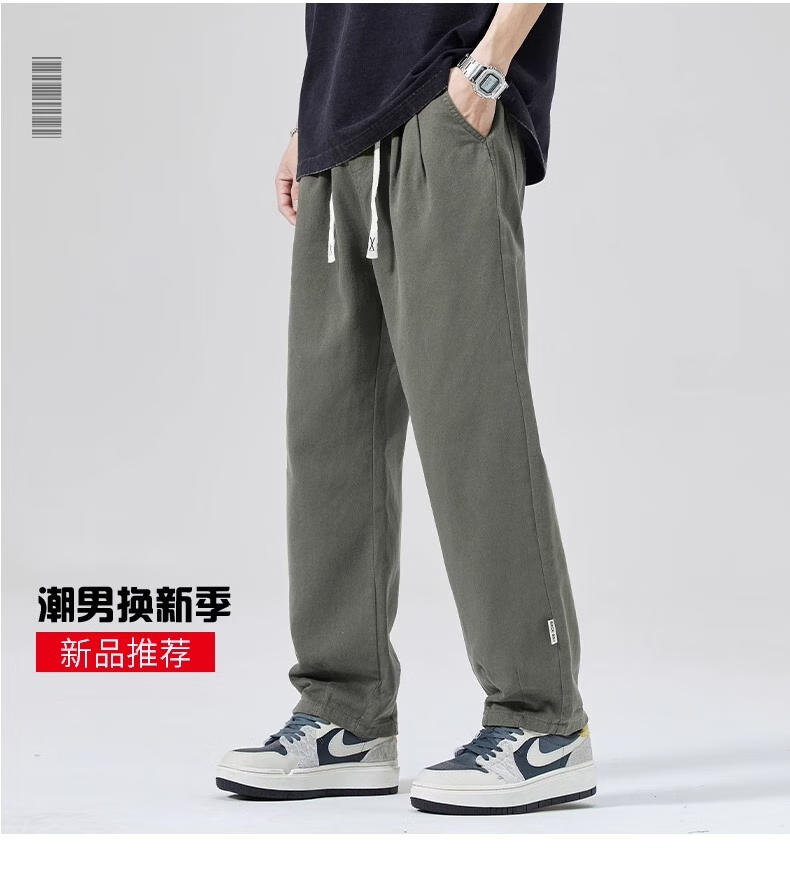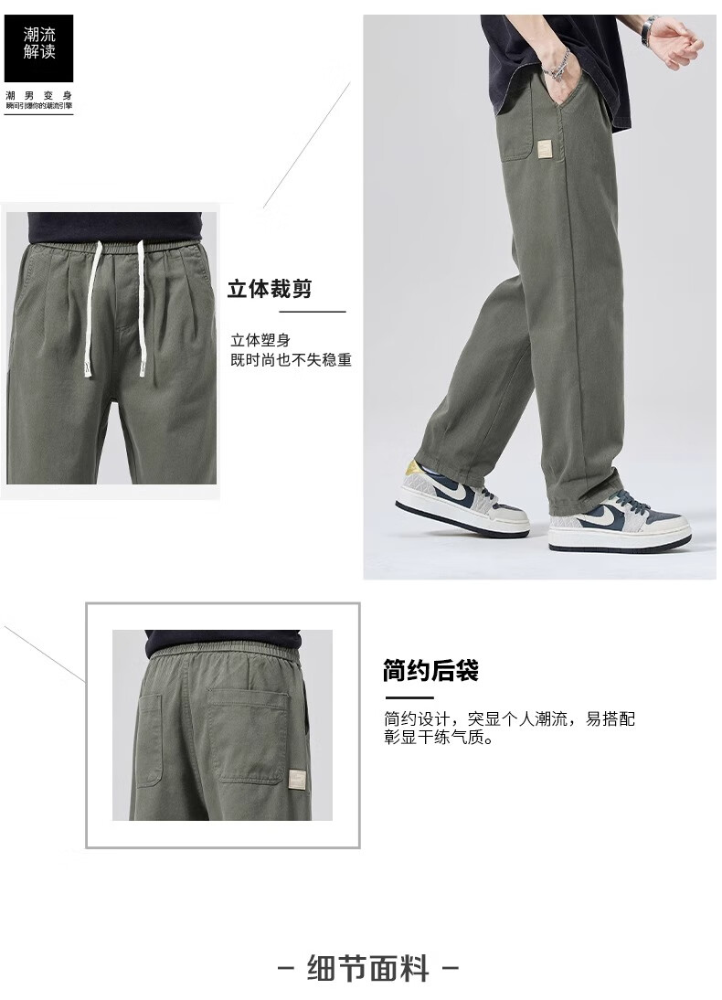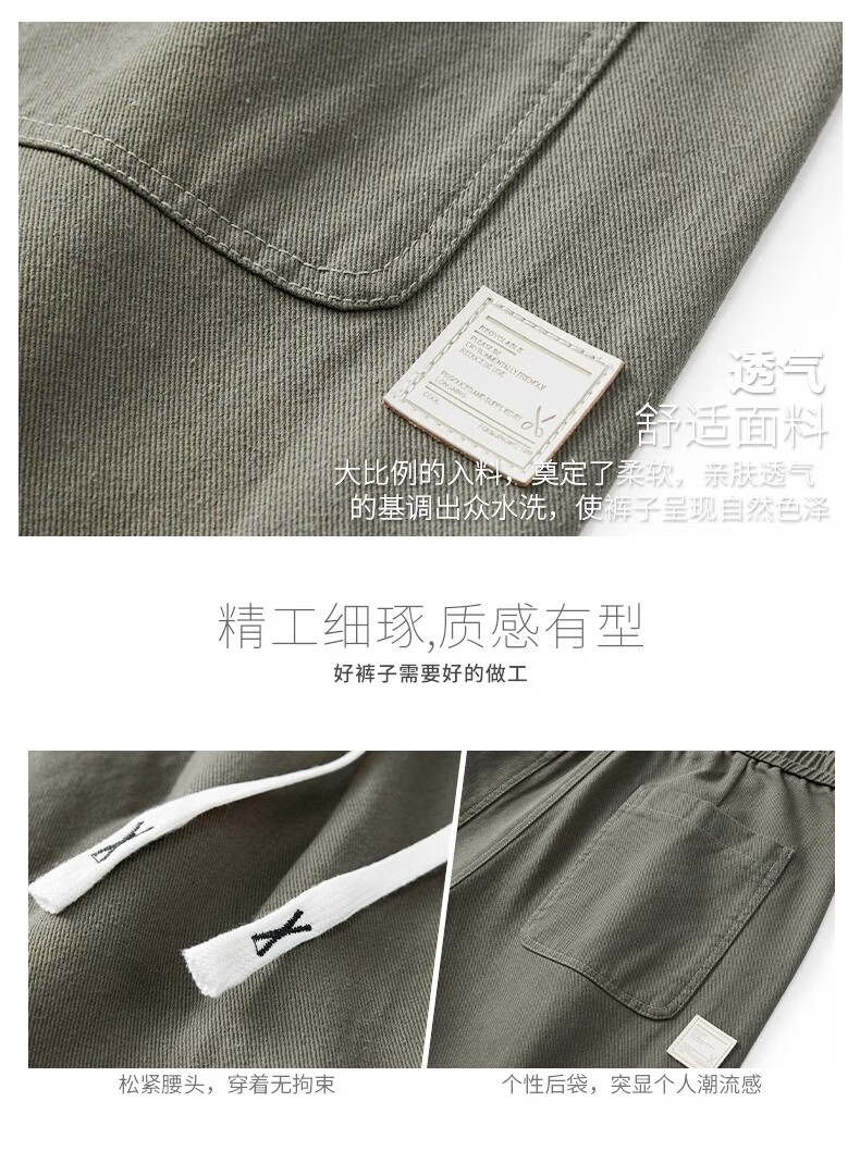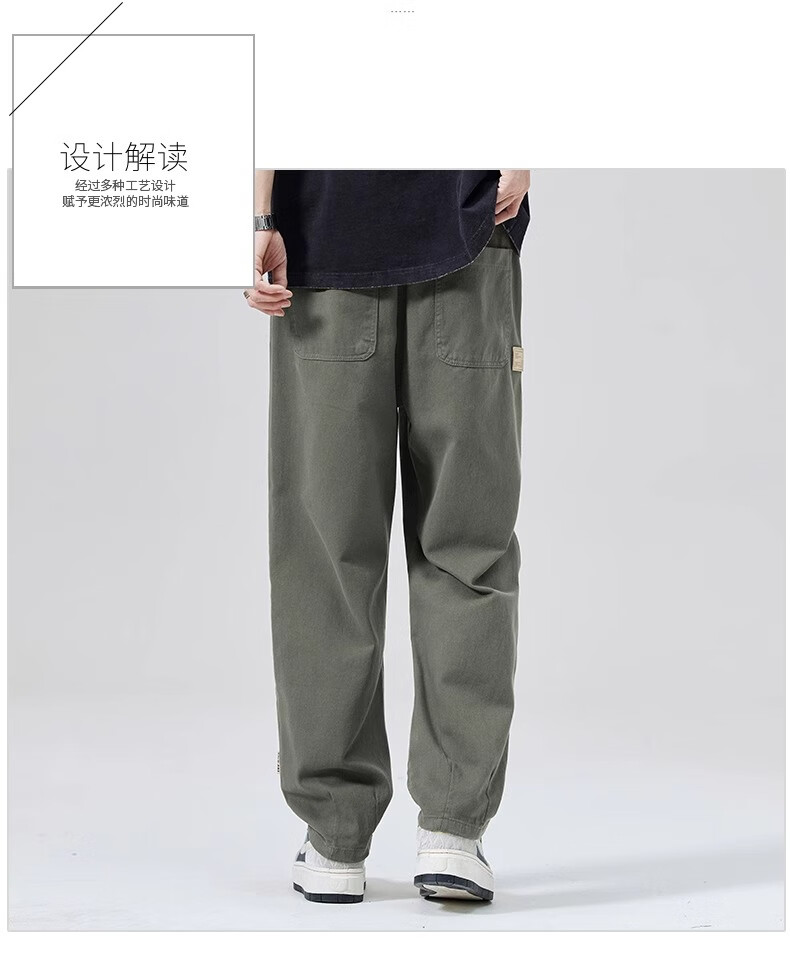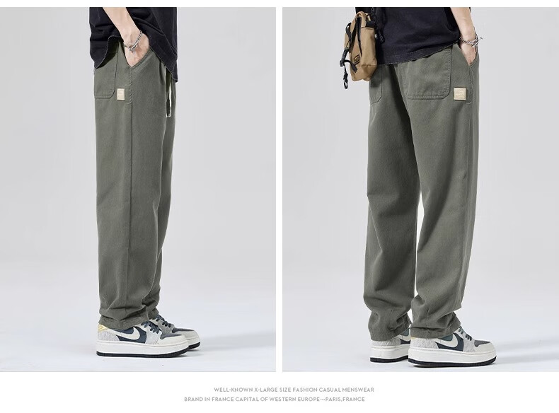 Baleno S&K series work pants autumn 2025 new trousers boys loose straight men's trousers pure cotton casual pants 2328 military green L 120-135Jin Jin equals 0.5 kg