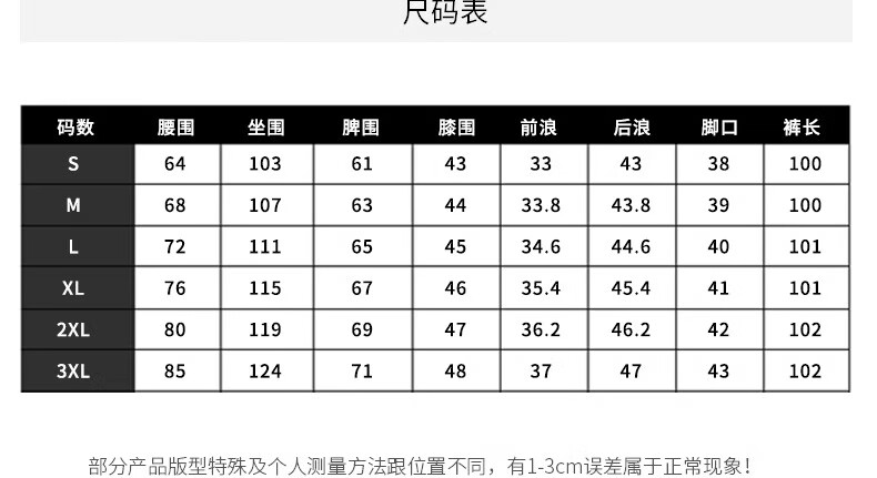 Outseam (cm) 99 cm 101.5 cm 104 cm 106.5 cm 109 cm