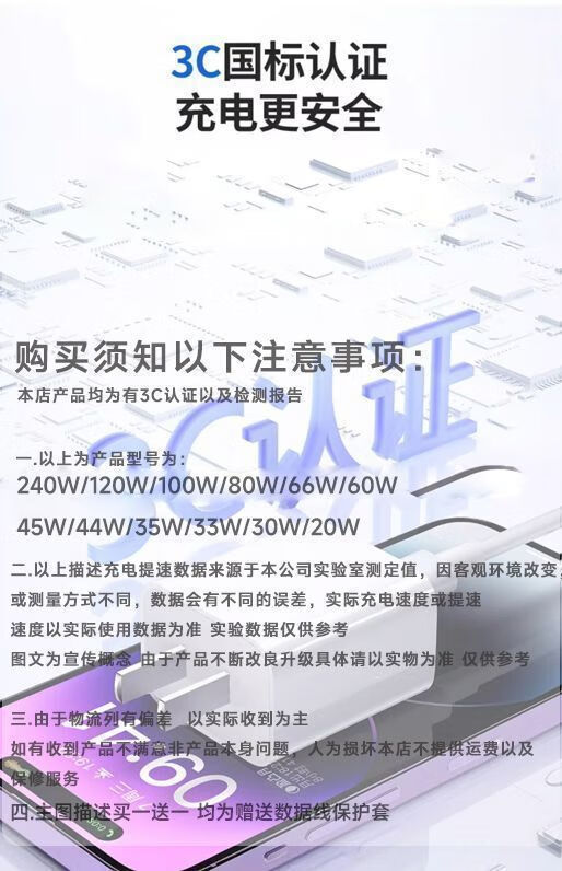Baikalang is suitable for Huawei 120W charger 66W lightning fast charging head mate50 60pro mobile phone charging plug p50p40p30 suitable for Honor 60/50/40 charging cable 6A fast charging cable fully compatible 1 meter