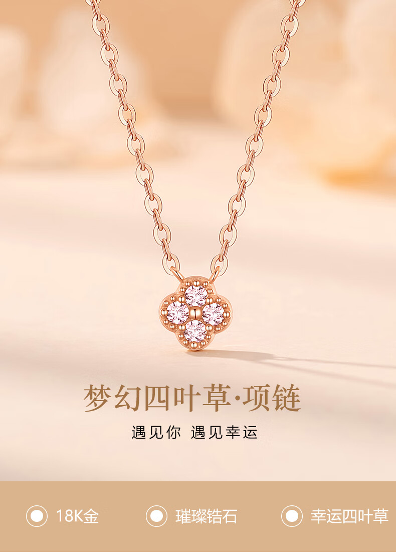 Grace Girl 18K gold dreamy four-leaf clover necklace for women, light luxury design, heartfelt gift for girlfriend on her birthday, Valentine's Day 18K gold dreamy four-leaf clover necklace + light luxury gift box