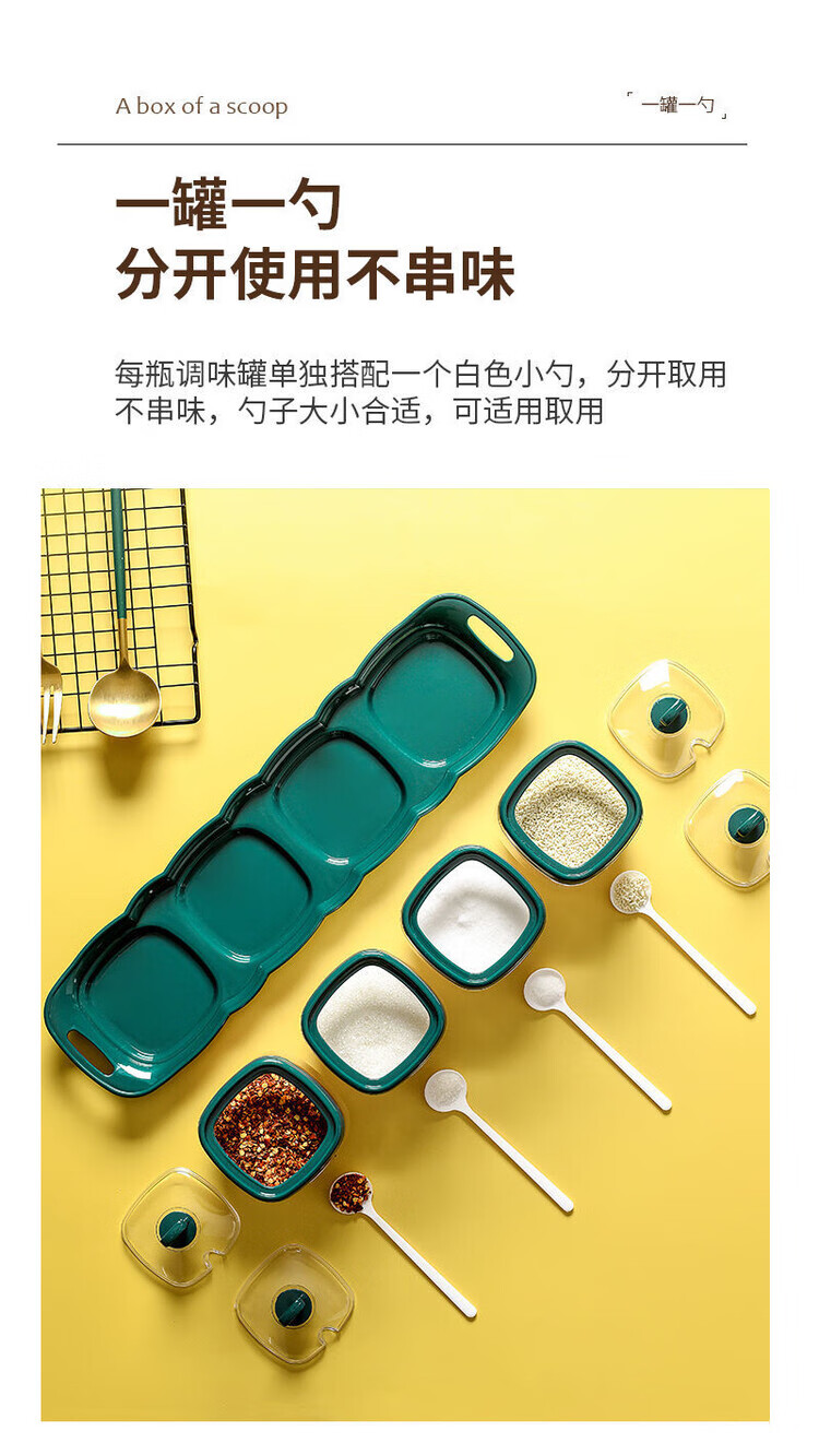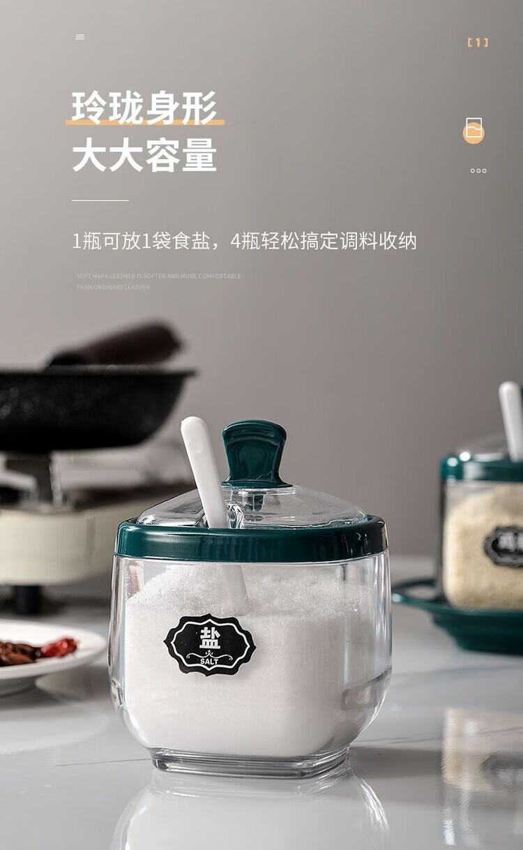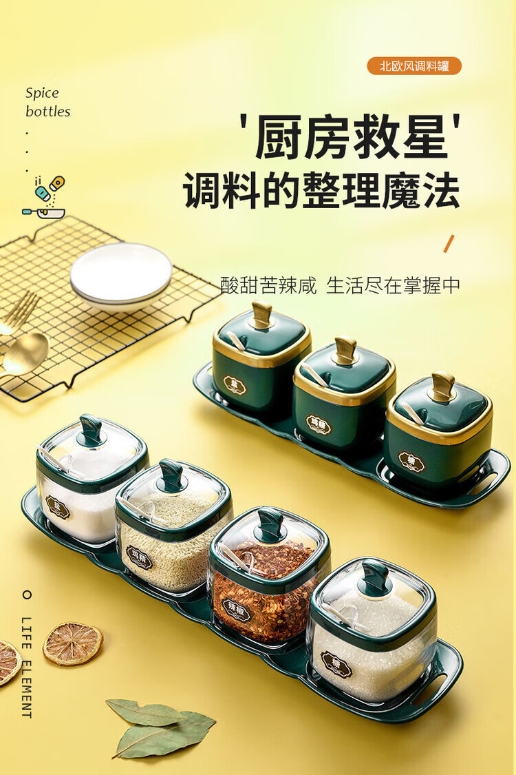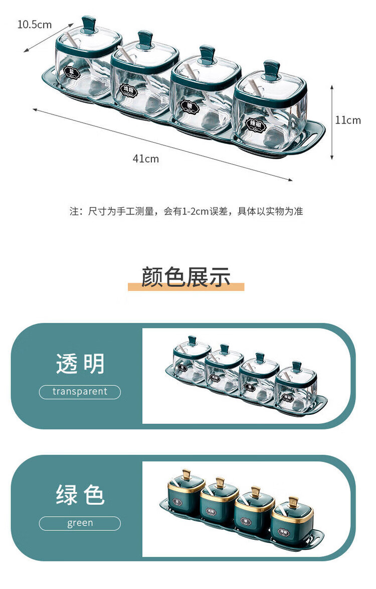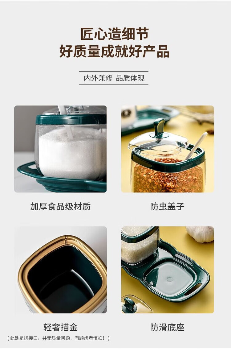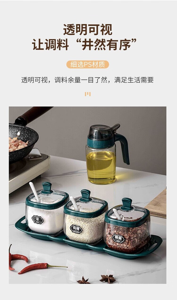 Taixige salt, MSG, seasoning box combination set, seasoning jar, seasoning bottle, seasoning bottle, kitchen supplies, household oil pot, emerald, two packs, free spoon