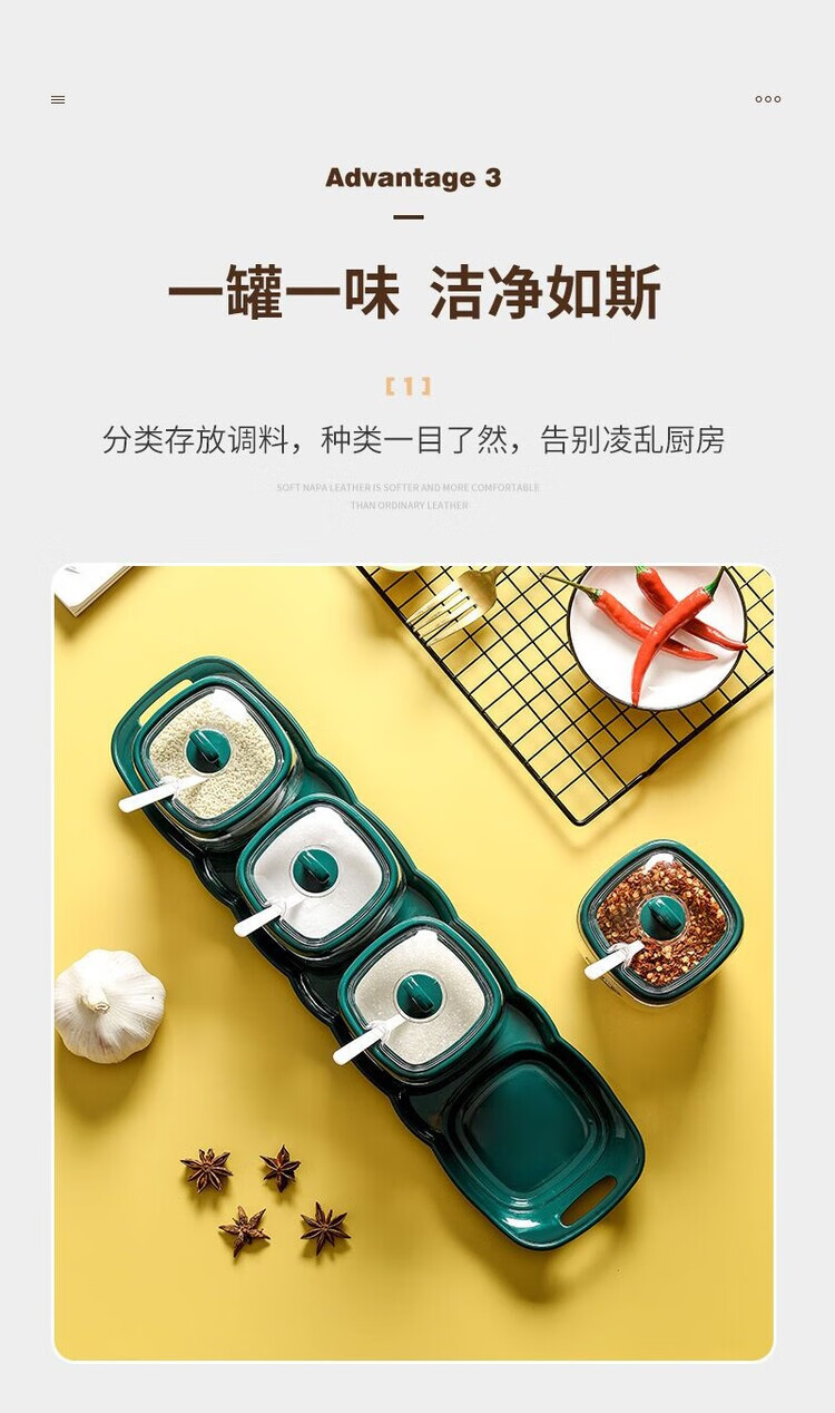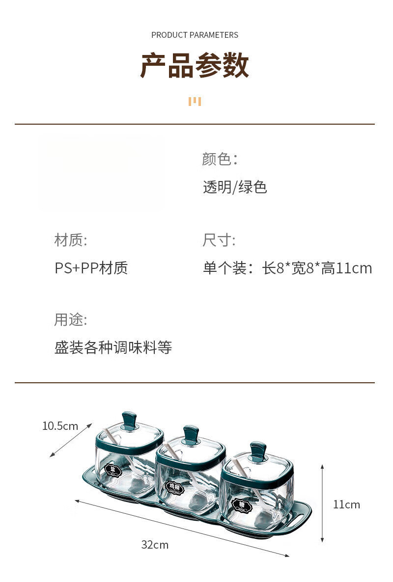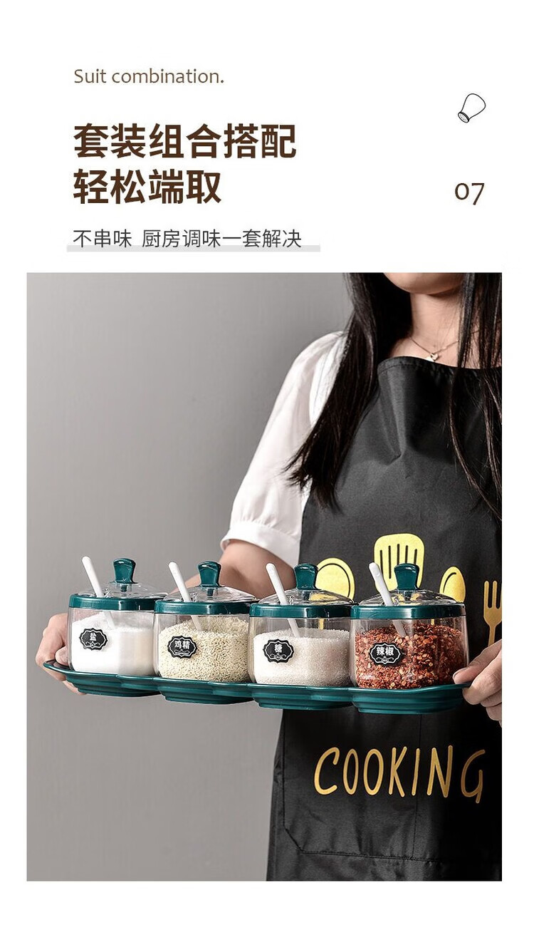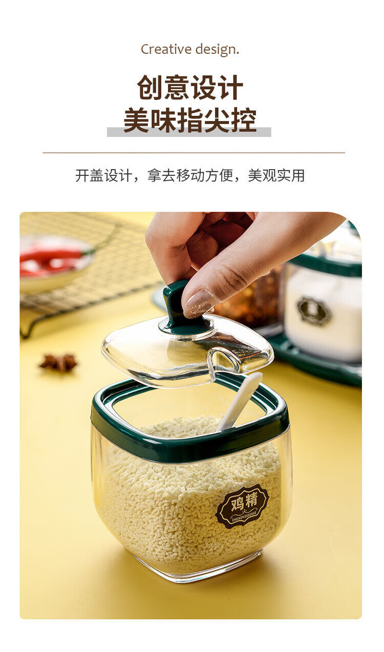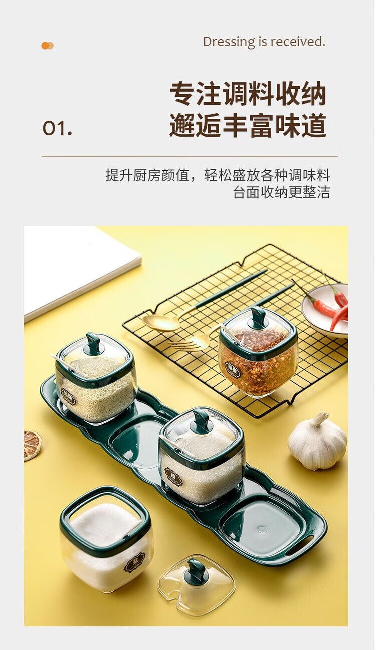 Taixige salt, MSG, seasoning box combination set, seasoning jar, seasoning bottle, seasoning bottle, kitchen supplies, household oil pot, emerald, two packs, free spoon