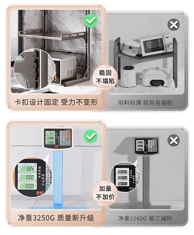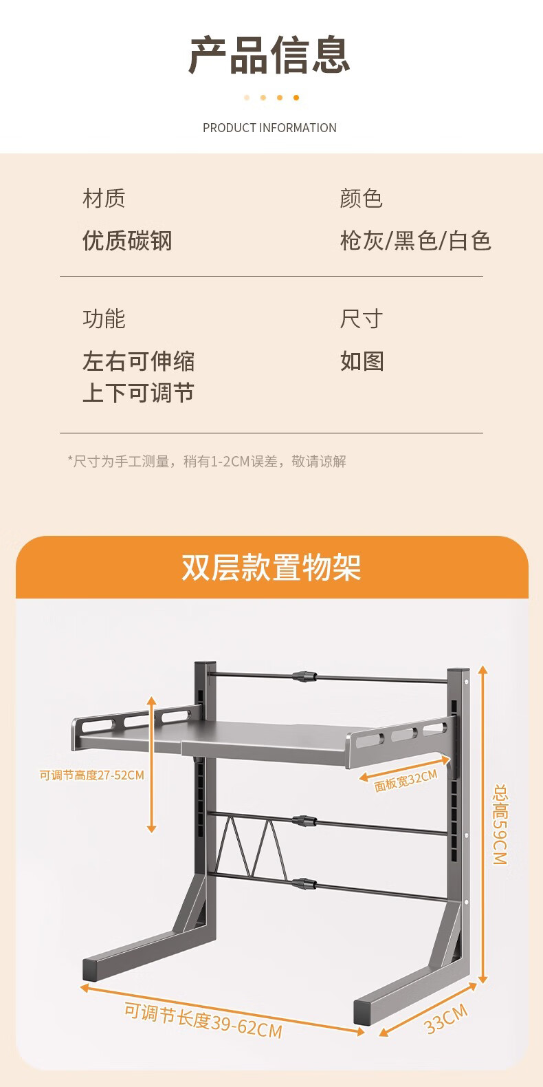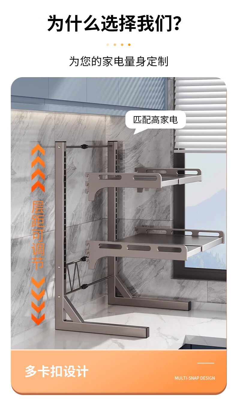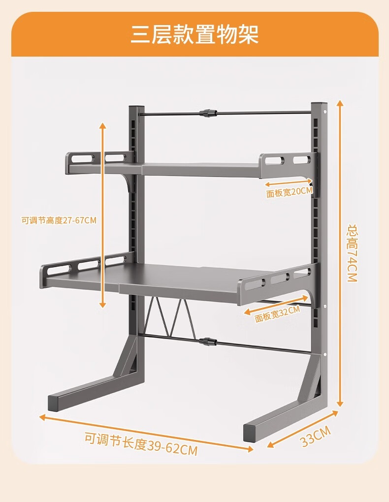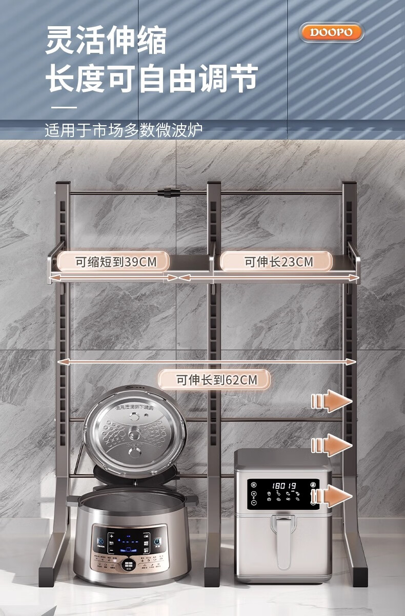 Duopeng Kitchen Microwave Storage Rack Countertop Multifunctional Retractable Oven Stand Air Fryer Rice Cooker Storage Rack Welfare Model - Gun Gray Double Layer Telescopic* Main Rack