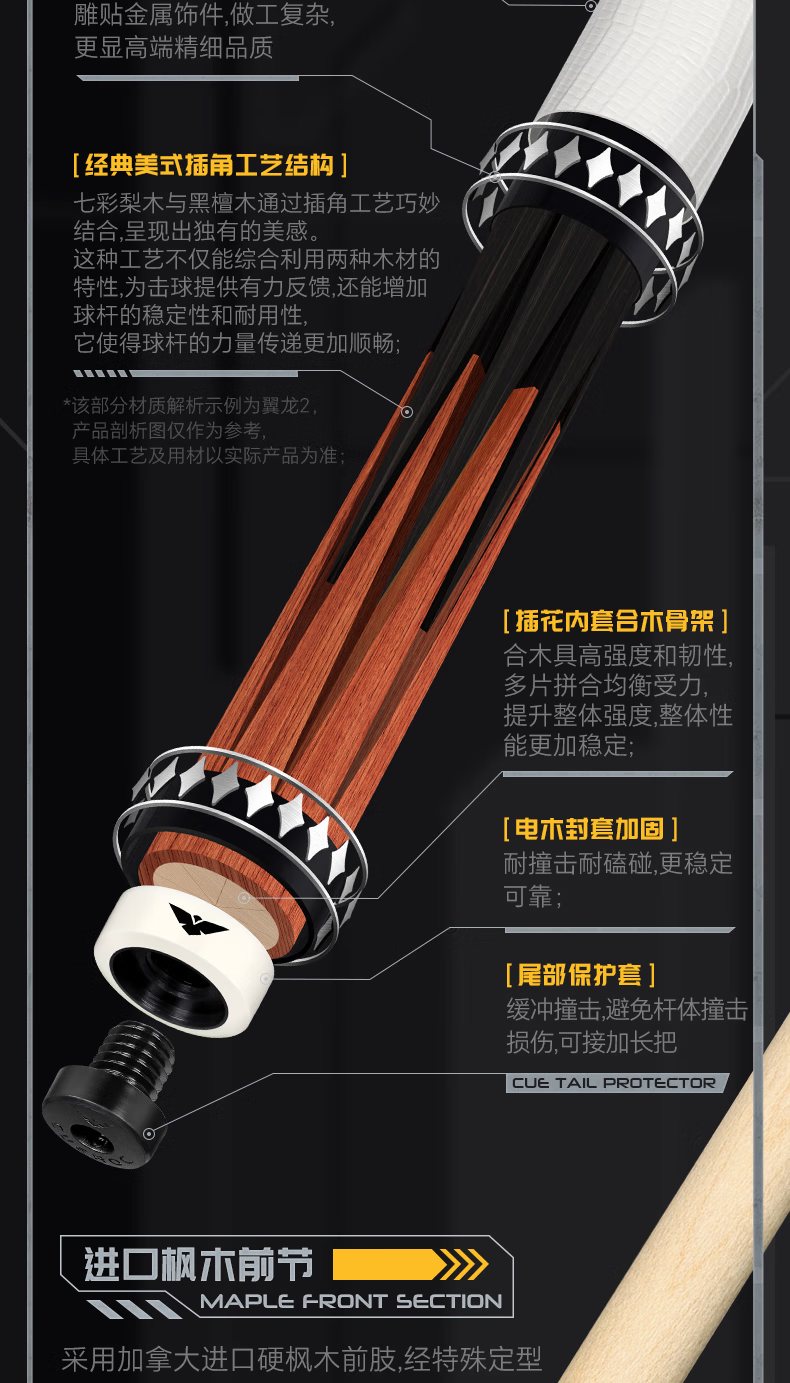 Kurok's new Storm Wing Dragon Nine Thousand Miles billiard cue with light handle, big head, Chinese black eight-nine-ball split pole, maple wood authentic Kurok's Nine Thousand Miles + Barrel Gift Set