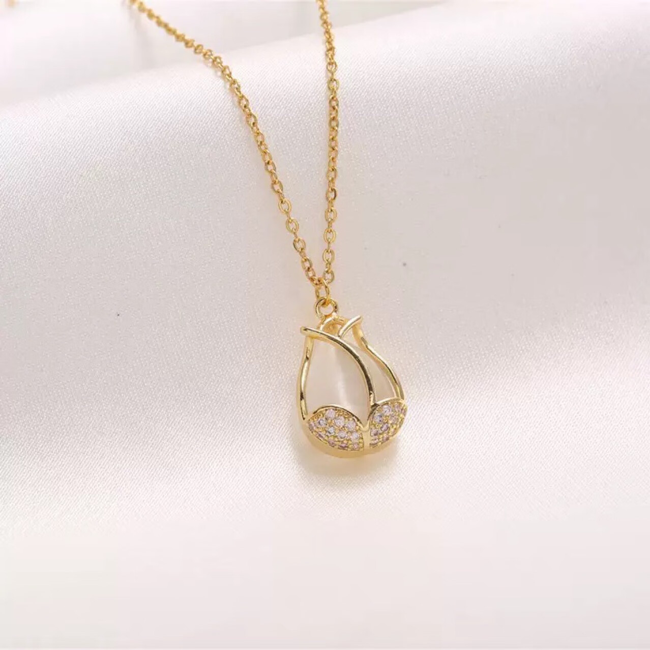 Tulip Necklace 2025 New Trendy Internet Celebrity Hot Style High-Looking Clavicle Chain for Women Tulip Pendant + Lip Necklace