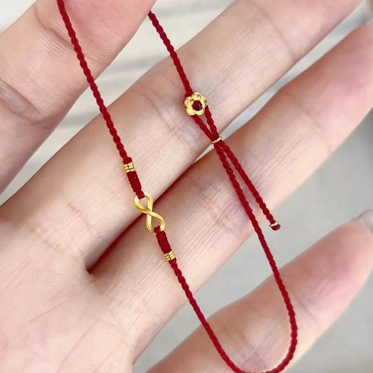 Minimalist gold-colored bracelet braided with red rope for the year of birth, infinite good luck, small flower tail buckle, high-looking and exquisite bracelet for women, Möbius strip-red rope bracelet-adjustable