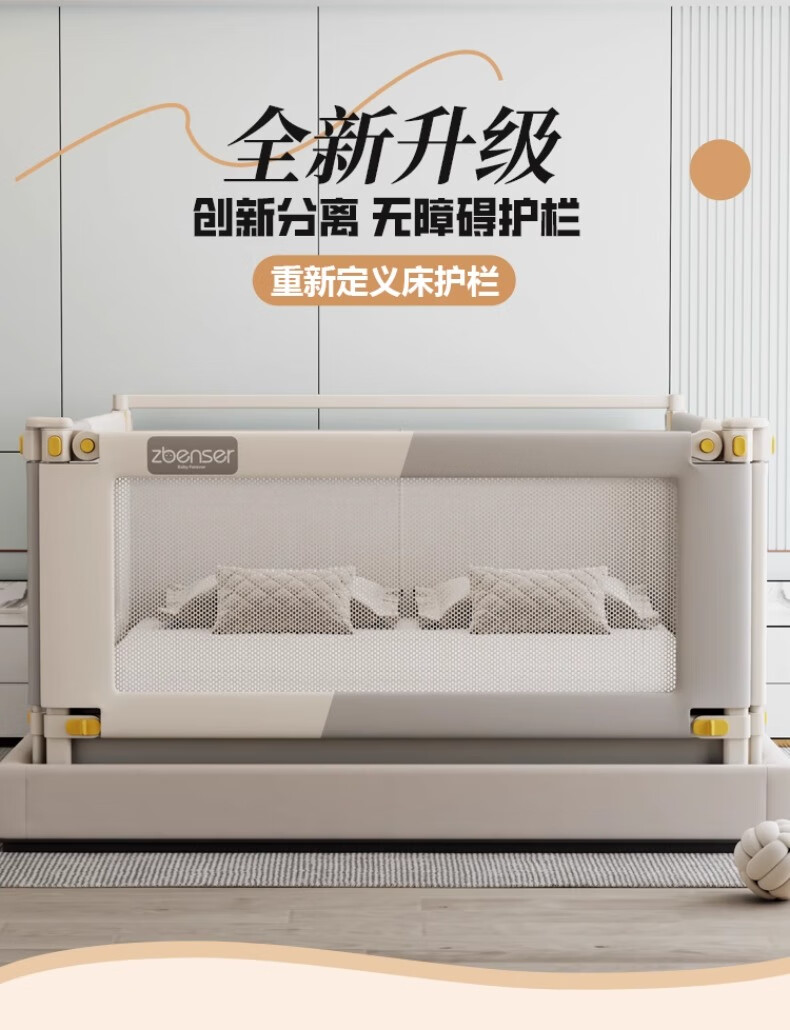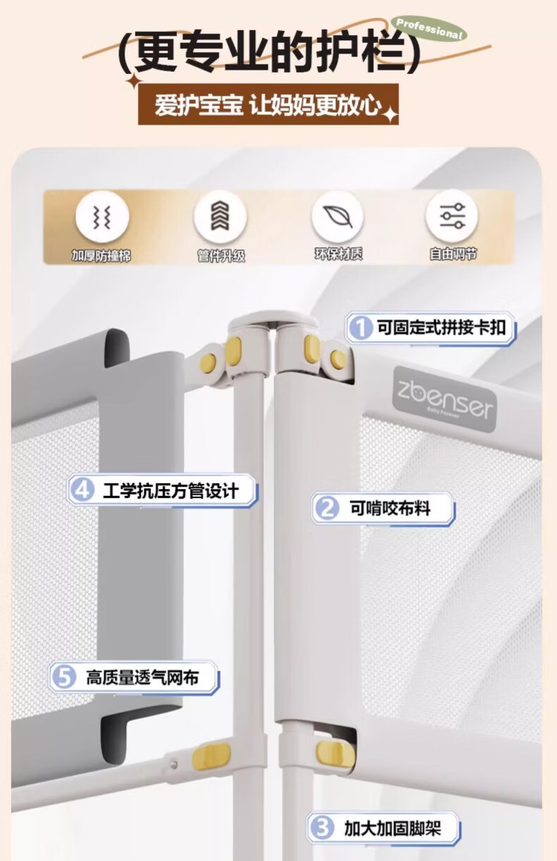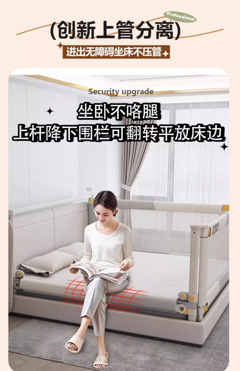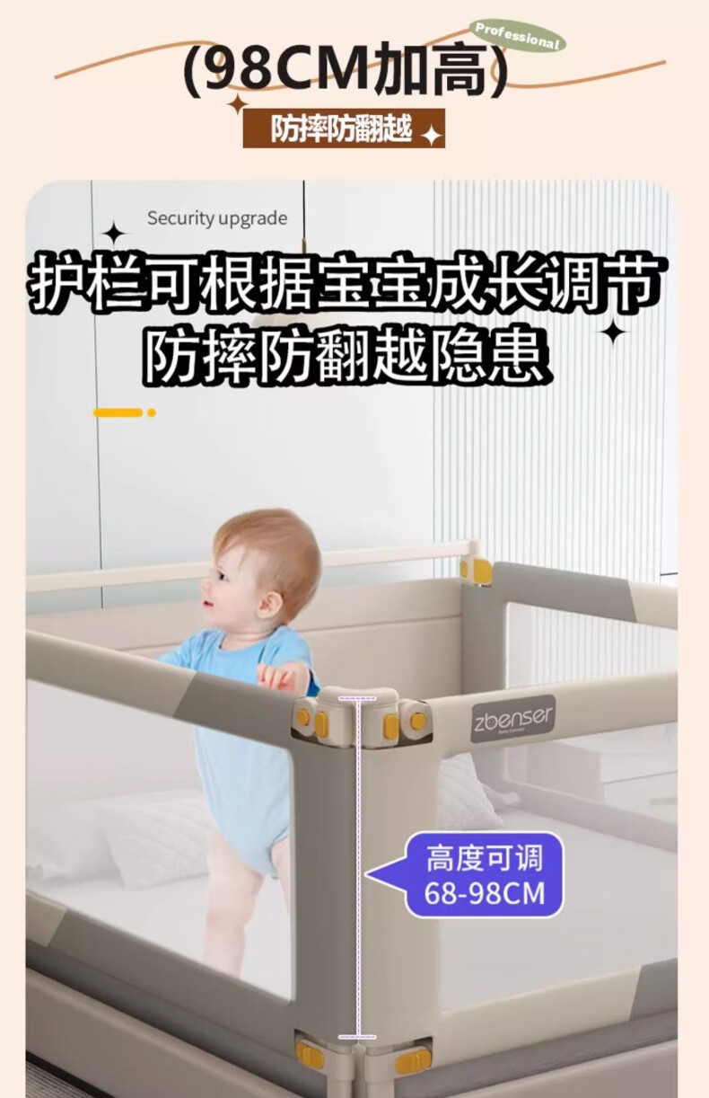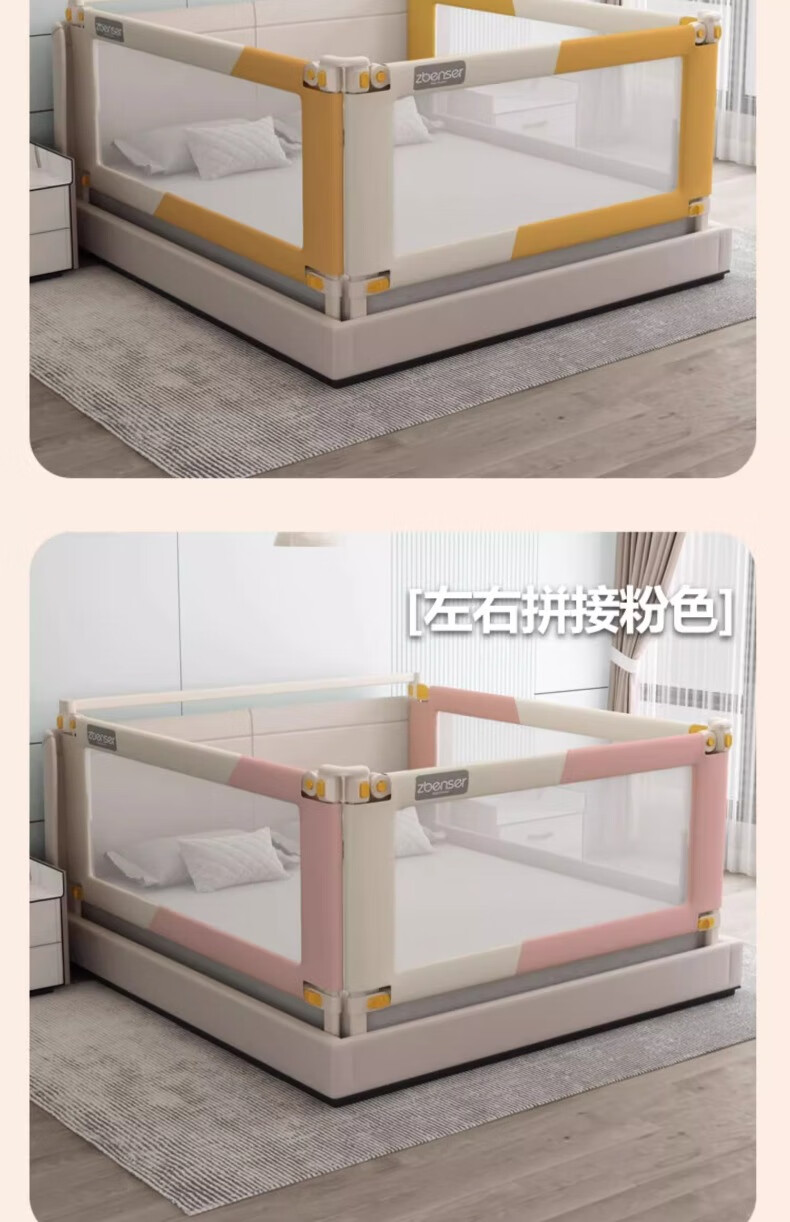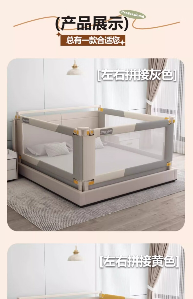 RANYW bed fence baby anti-fall bed side baffle baby bed fence safety guardrail heightening guardrail left and right splicing gray punch-free U-shaped base 1.8 meters + 2.0 meters + 2.0 meters three-sided combination