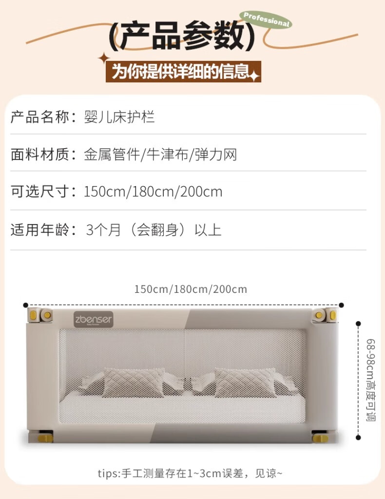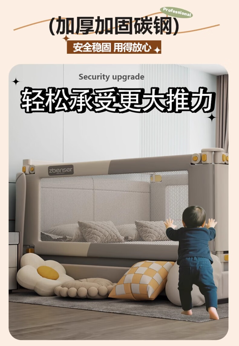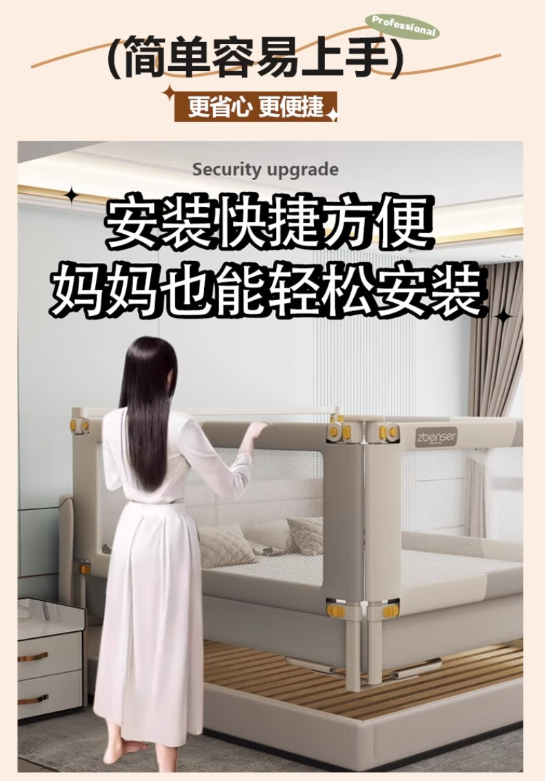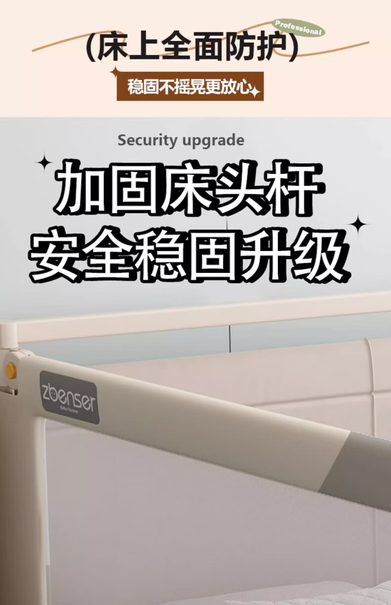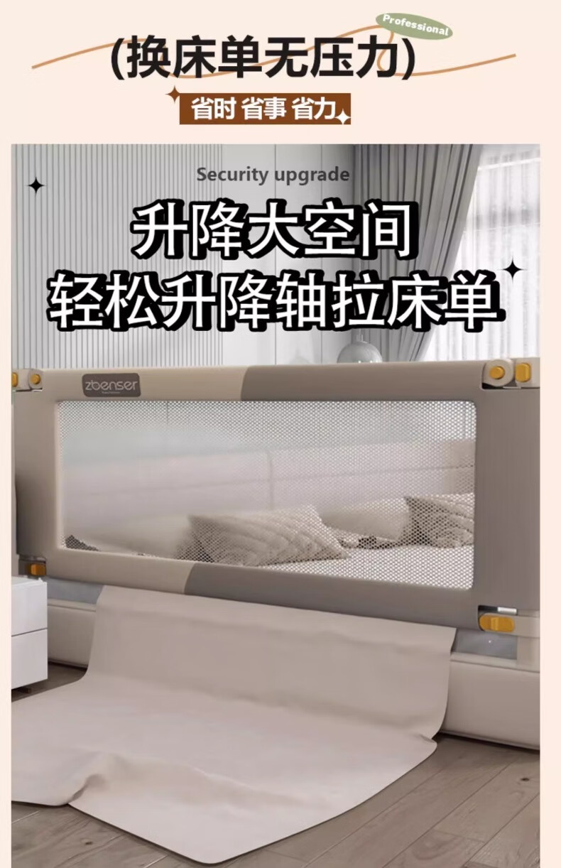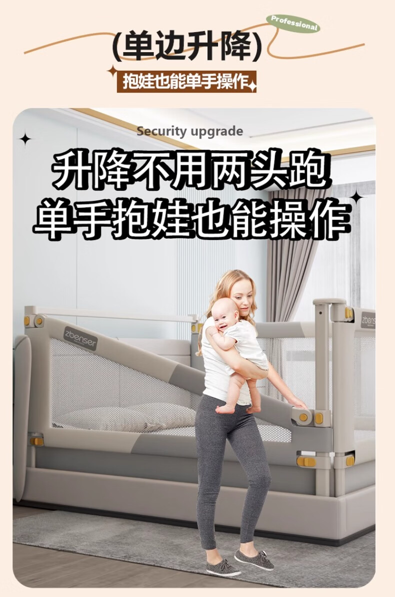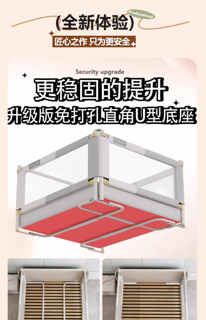 RANYW bed fence baby anti-fall bed side baffle baby bed fence safety guardrail heightening guardrail left and right splicing gray punch-free U-shaped base 1.8 meters + 2.0 meters + 2.0 meters three-sided combination