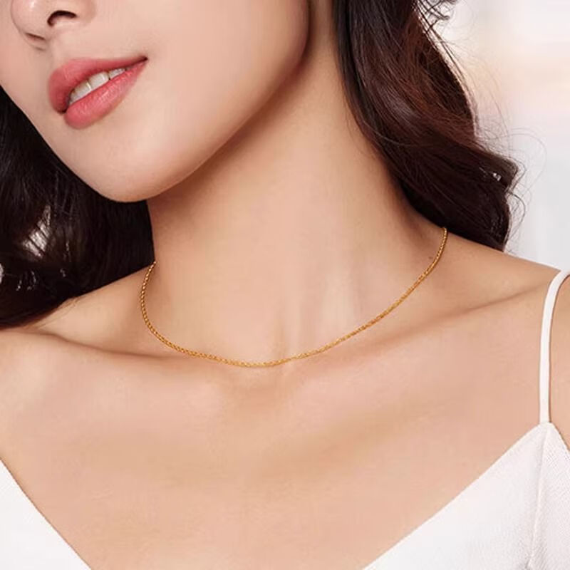 RSRDDY Lao Fenghuang Gold Store's same necklace 999 women's fine clavicle chain O-shaped chain gold-plated chain for my wife 18k gold 0-shaped necklace Lao Fengxiang's same style