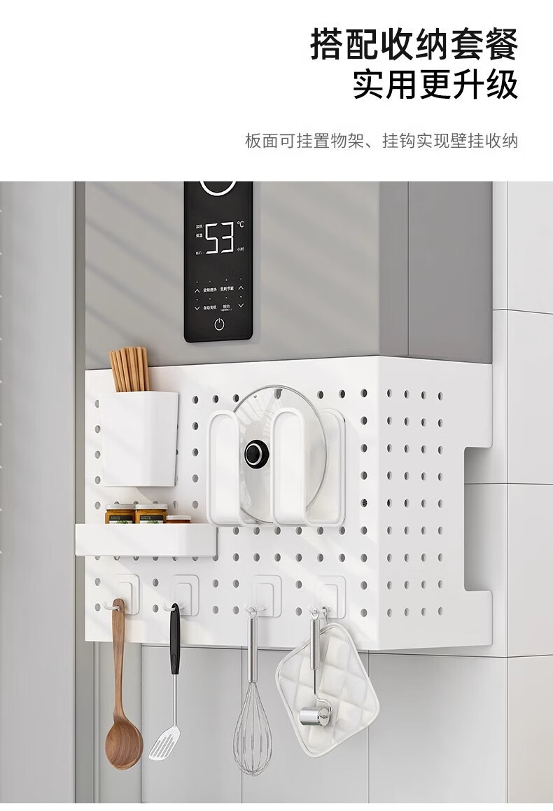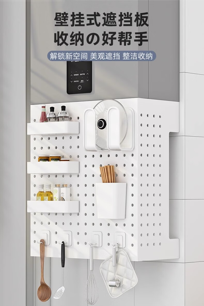 Qinkai Kitchen Storage Rack Pot Lid Rack Gas Water Heater Cover Pipe Covering Wall Hole Plate Gas Wall-hung Boiler High-end/Luxury Eight-piece Set Breaking the Bottom Length 35-Height 40-Depth 17 (Simple White)