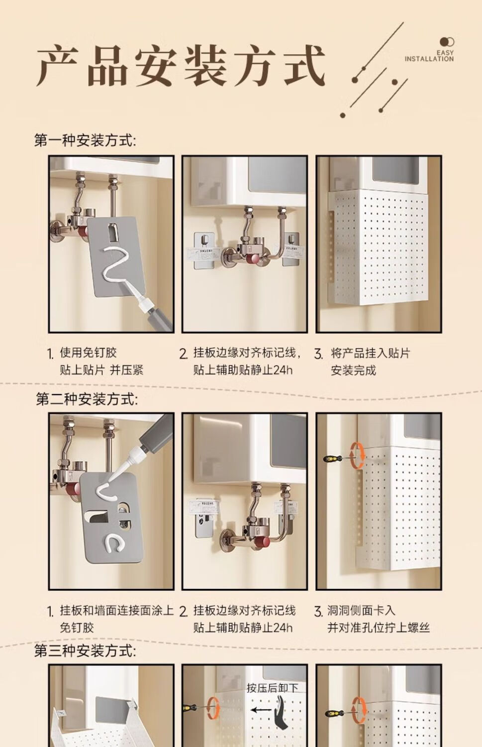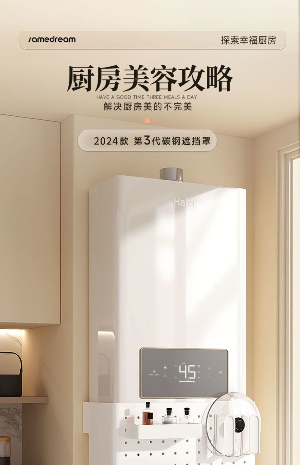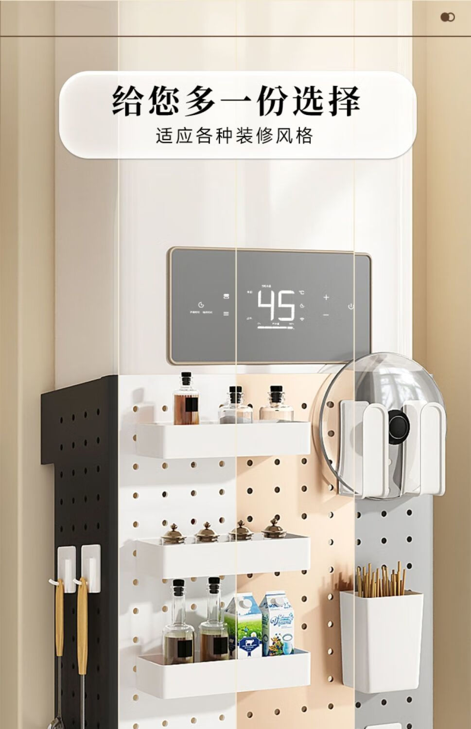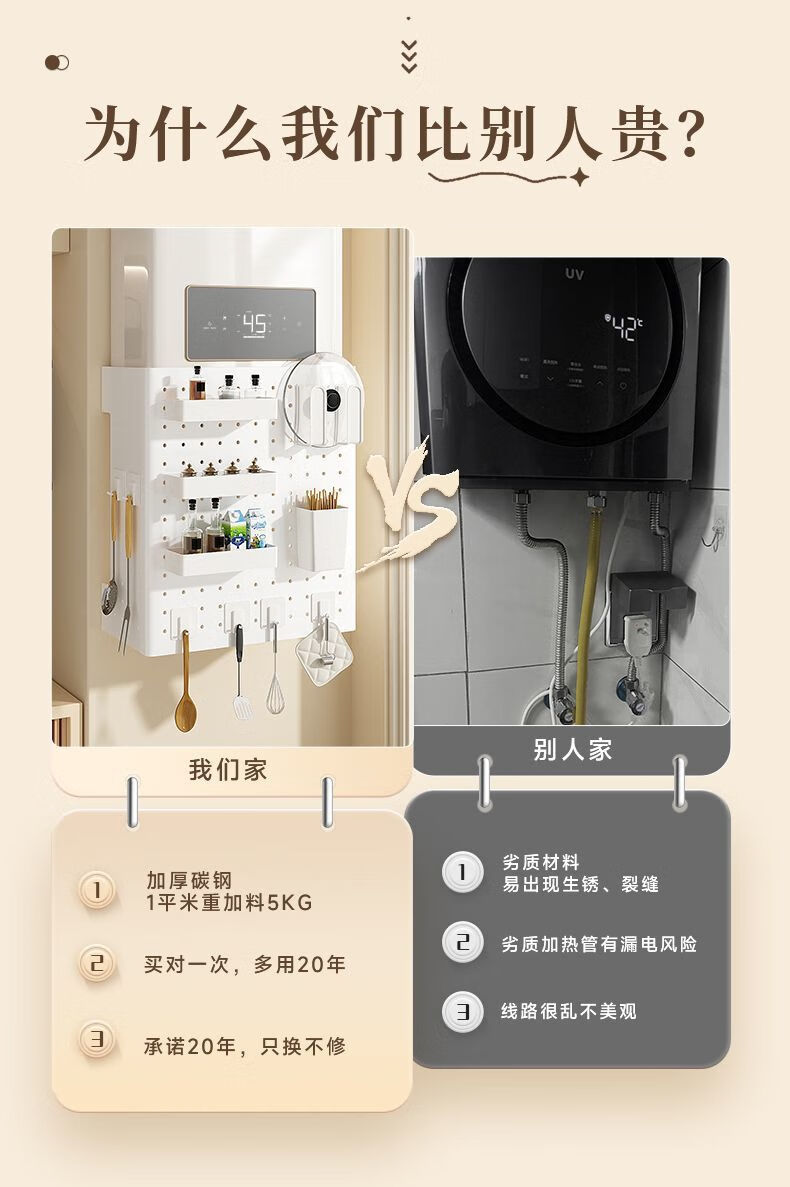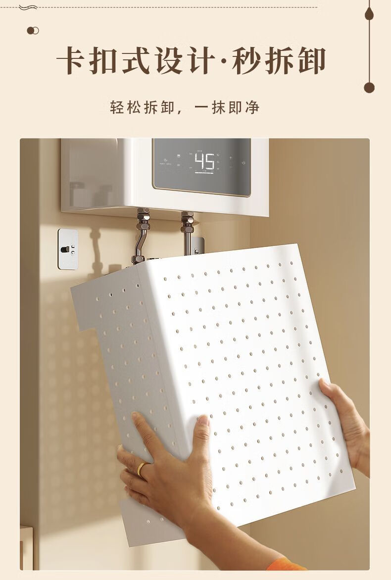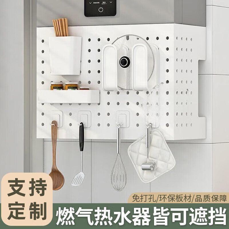 Qinkai gas water heater shielding cover, hole plate under the wall-mounted boiler to cover the gas pipe, decorative kitchen shelf, basic model + 4 hooks (), width 35*height 30*depth 17cm