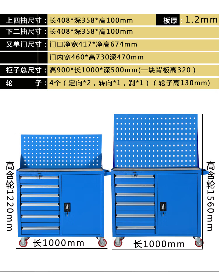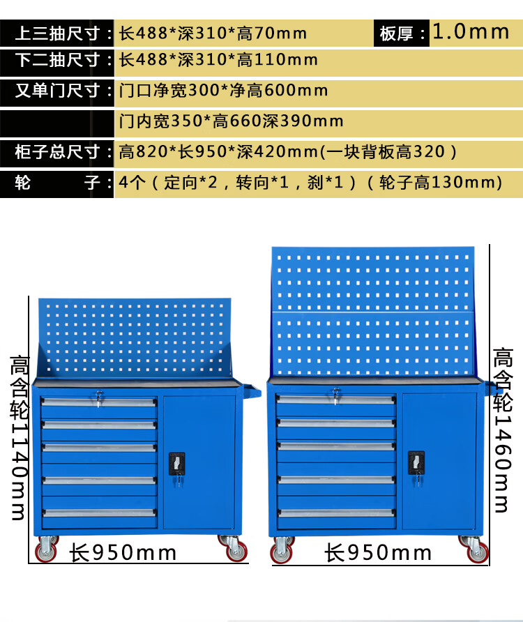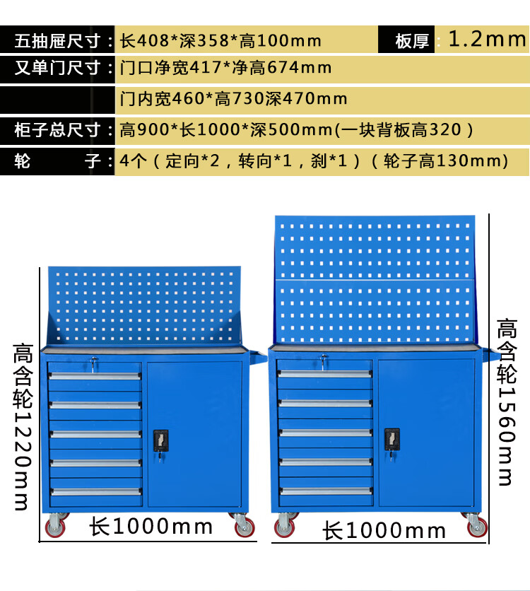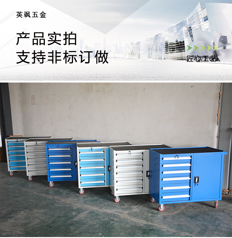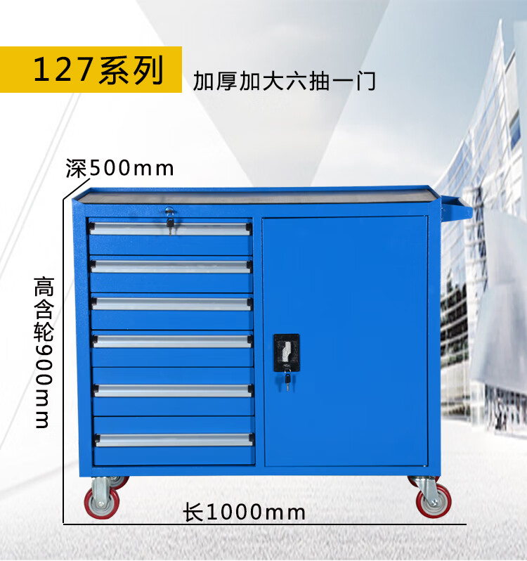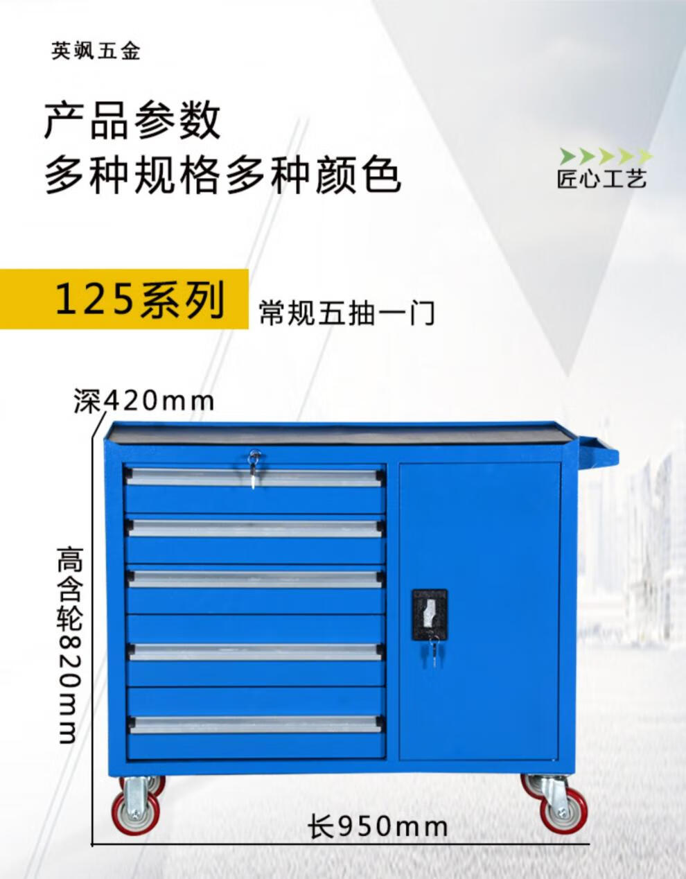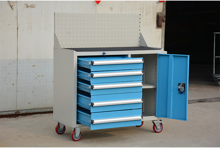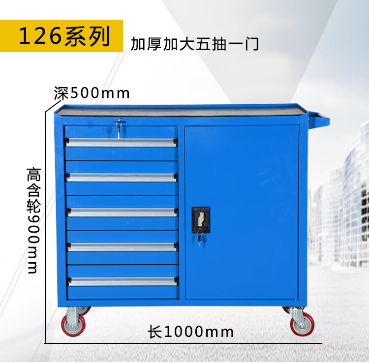 TNBROTHERS Yingsha Heavy-duty Thickened Hardware Tool Cart Multifunctional Industrial Grade Tool Iron Sheet Tool Cabinet Workshop Five-Pull Mobile YS-124 Blue + Brake 46KG