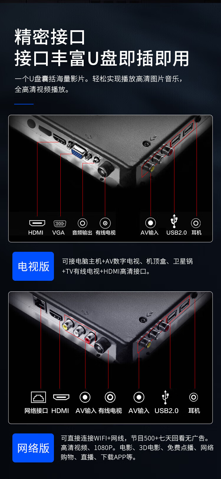 SHNIRP32/37/43/47/55/60/65英寸电视机 家用老人智能无线网络语音投屏4K超高清护眼防蓝光液晶电视插U盘 TV4K-37【高清电视版】长74cm宽44cm