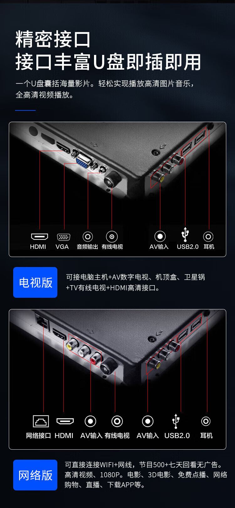 SHNIRP32/37/43/47/55英寸电视机 家用老人小尺寸电视机智能无线网络语音投屏4K超高清护眼液晶电视插U盘 TV4K-37【高清电视版】长74cm宽44cm