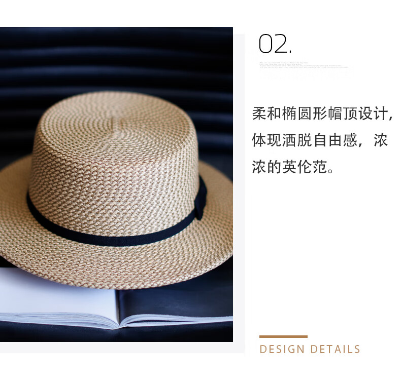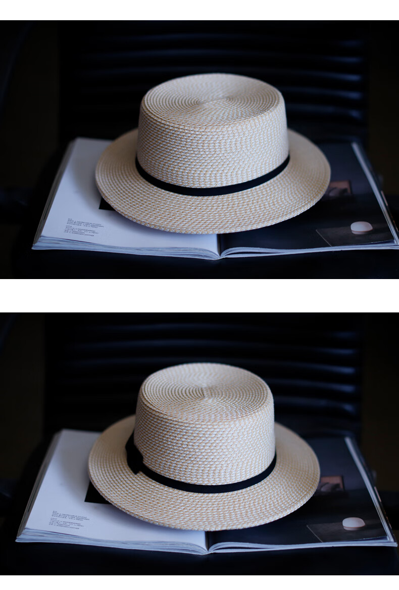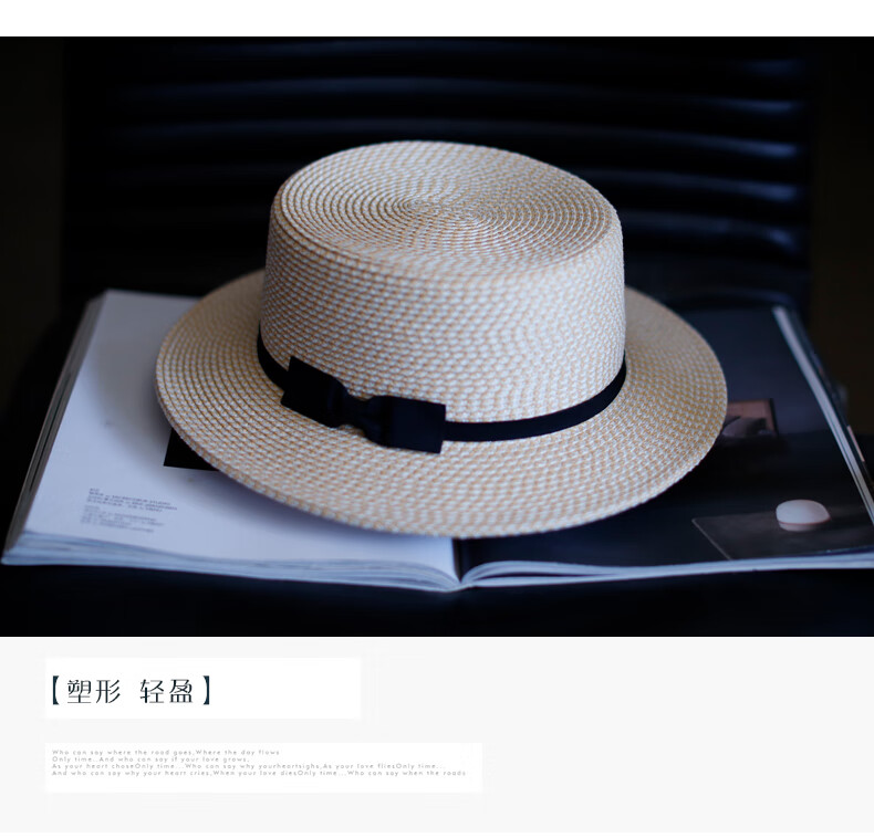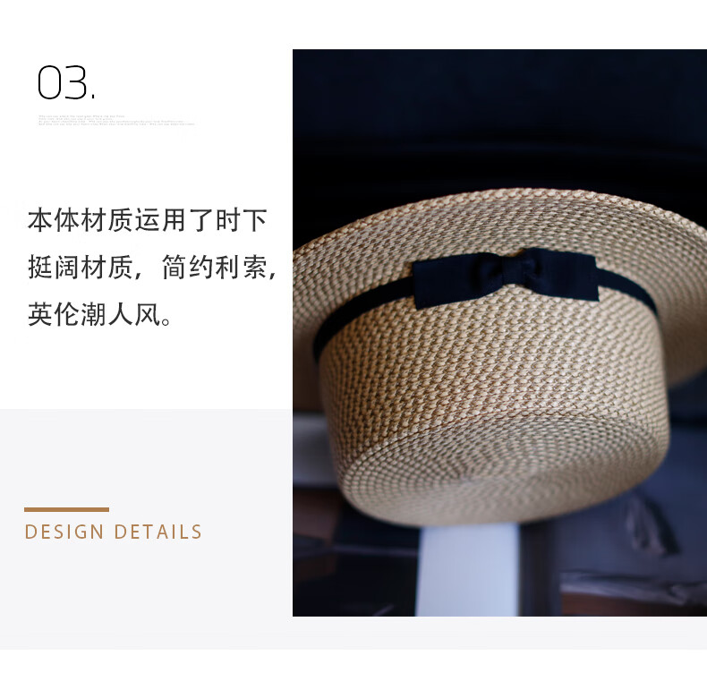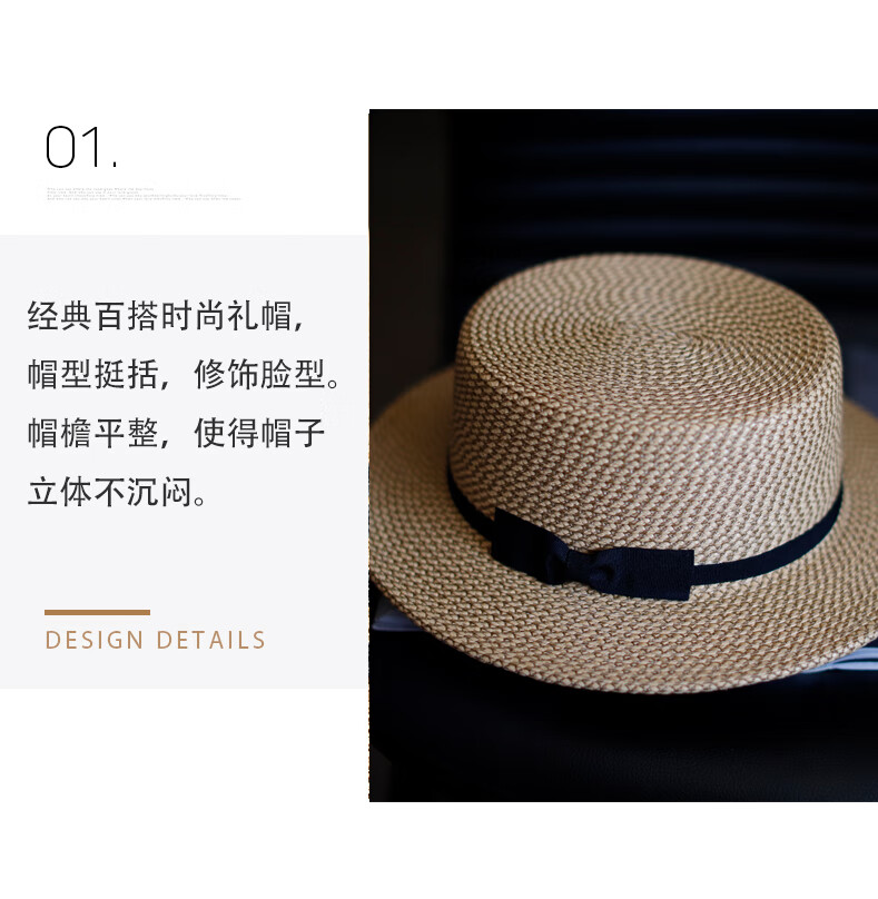 Tochino Japanese style straw hat women's summer sun hat flat brim small bow flat top hat sun protection beach hat vacation beige