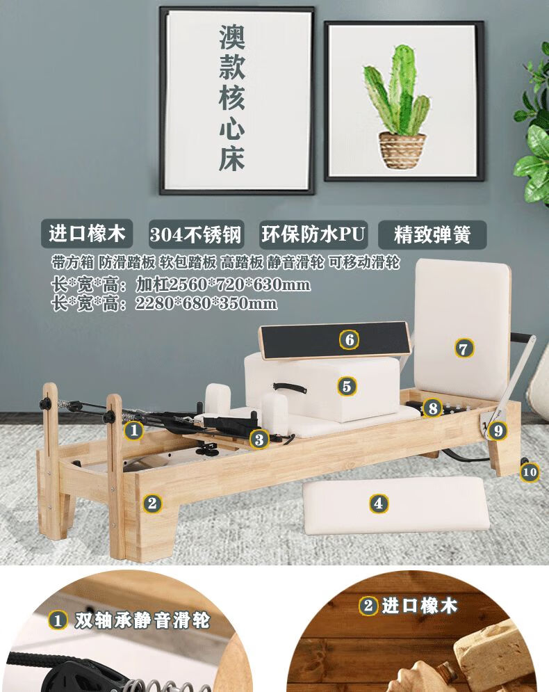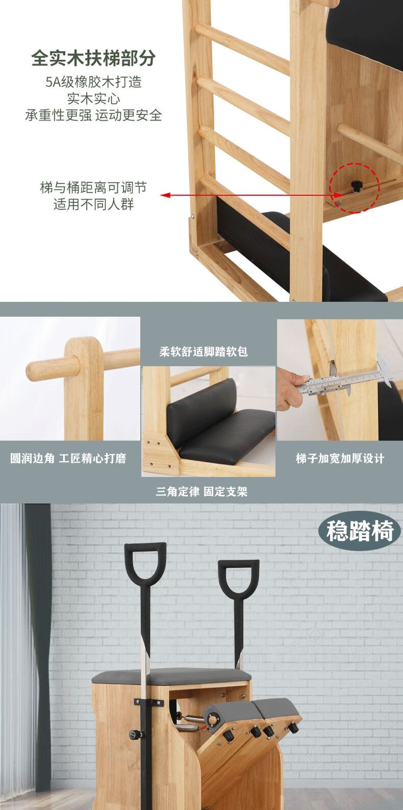 Pilates five-piece set core bed large equipment Cadillac Chanrou semi-elevated yoga Pilates fitness equipment Oak Australian model upgraded five-piece set black