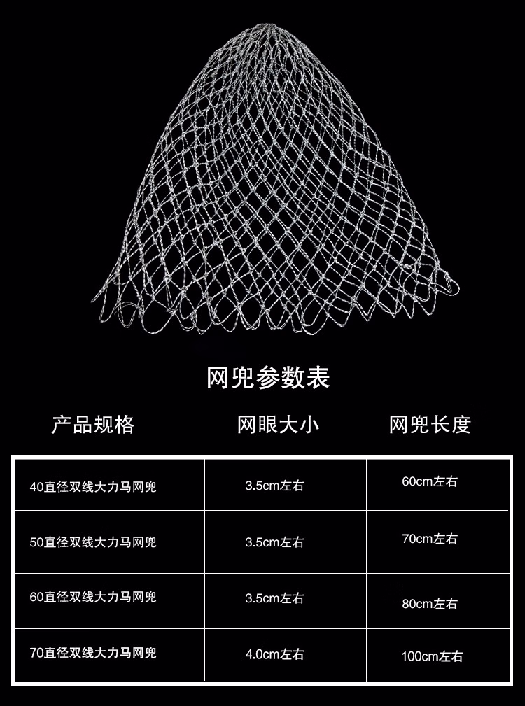 Kaooseen Dali horse net bag foldable hand-woven large object net head anti-hook high-horsepower net fishing gear small eye 40 mouth single net bag deep about 50 holes about 1.5cm