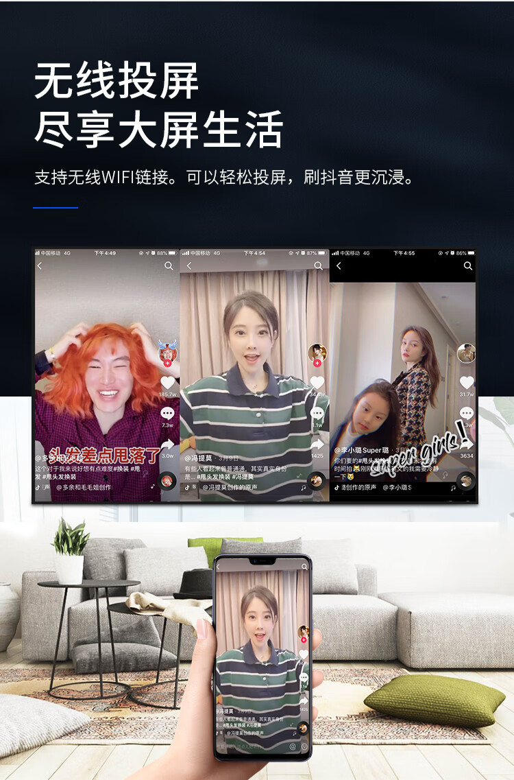 SHNIRP37/40/45/50/55/65/75-inch TV home 4K ultra-high definition frameless ultra-thin color TV for the elderly eye protection anti-blue light intelligent network voice projection U disk TV4K-50 HD TV version 96cm long 55cm wide