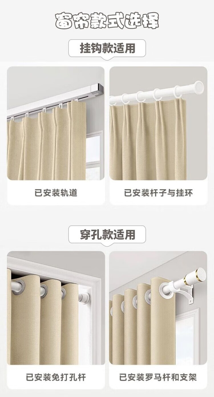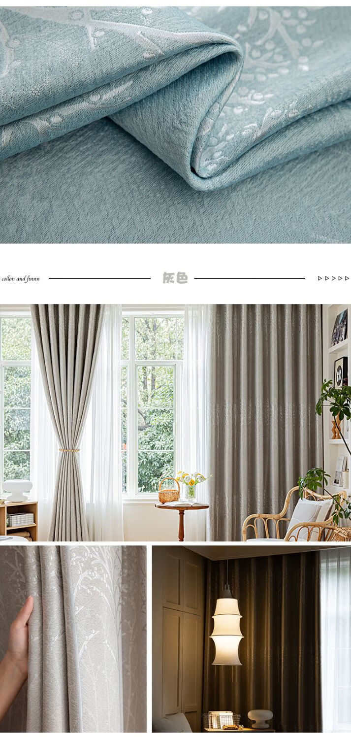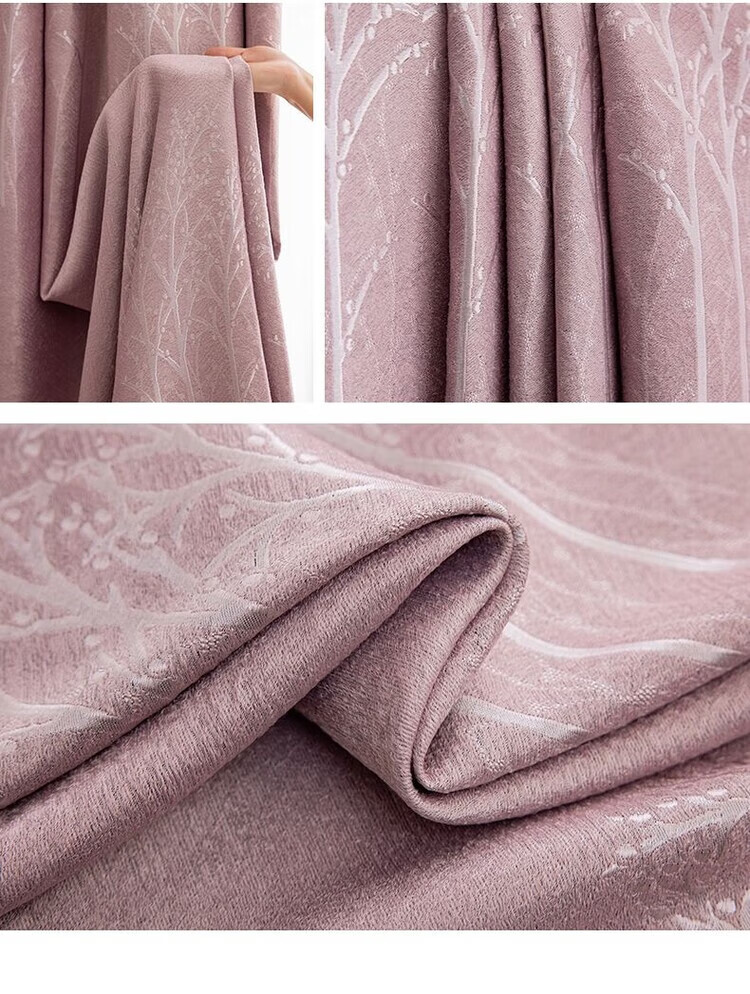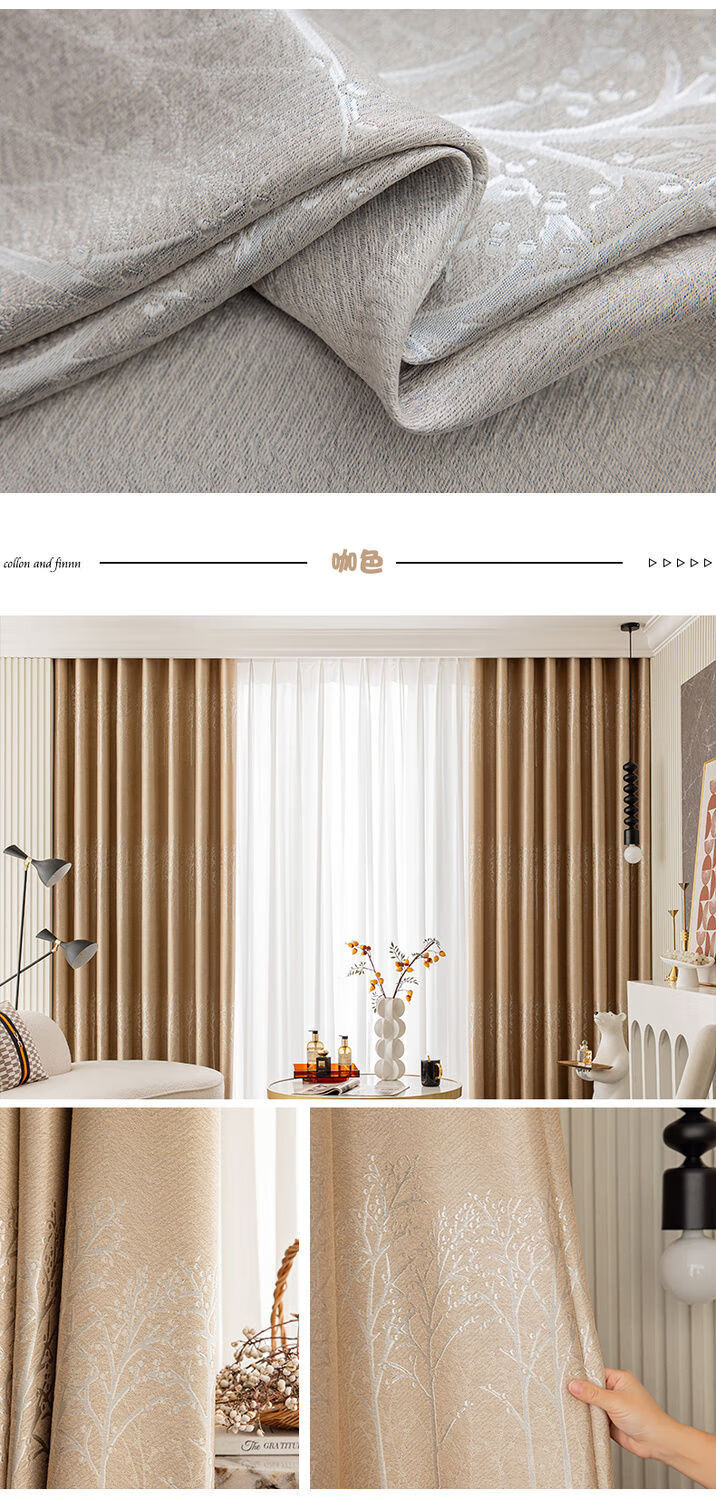 Curtain fabric manufacturer thickened blackout curtains simple living room bedroom heat insulation sun protection rental house made of trees - gray perforated style one piece width 5.0 meters * height 2.7 meters
