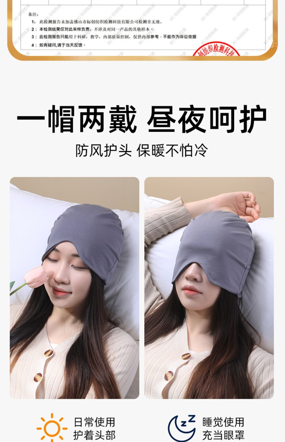 LVPASA nightcap men's night sleeping hood to prevent falling off sleep hood windproof warm forehead protector large size mask baotou household cold smoke ash