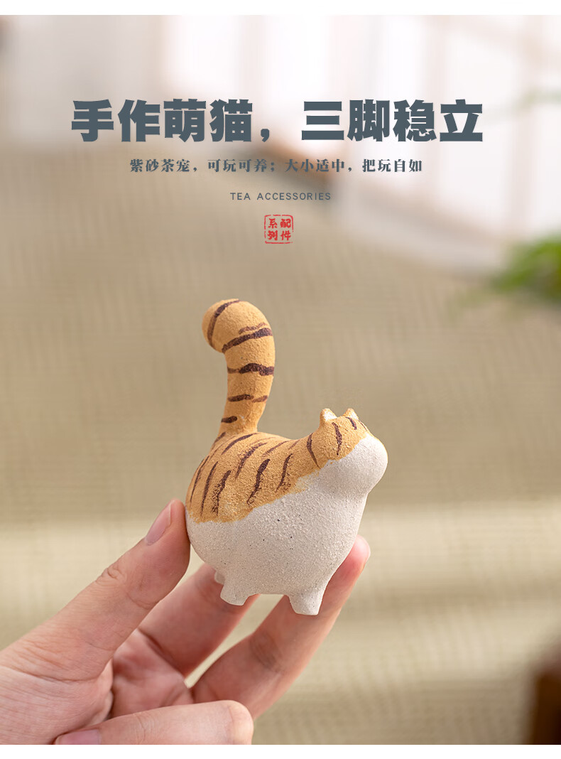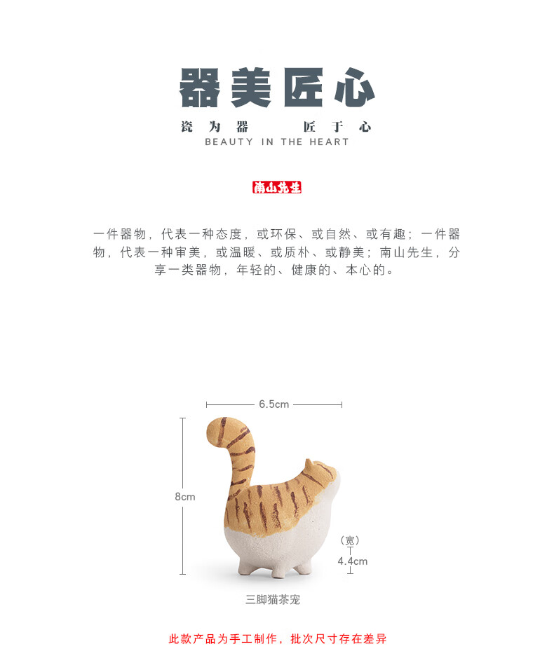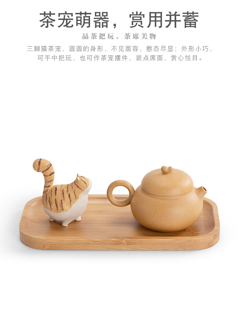 Mr. Nanshan Zisha creative tea pet ornaments cute desktop ornaments home tea play Kung Fu tea set accessories three-legged cat tea pet three-legged cat tea pet