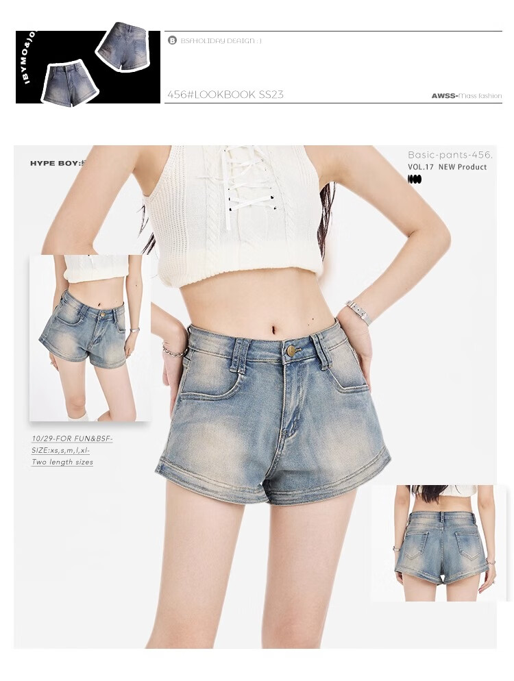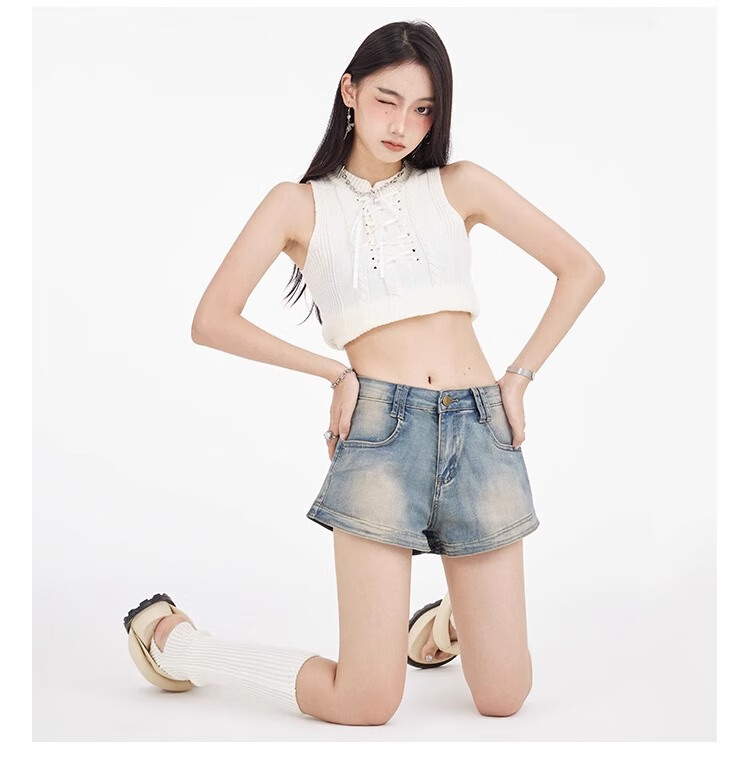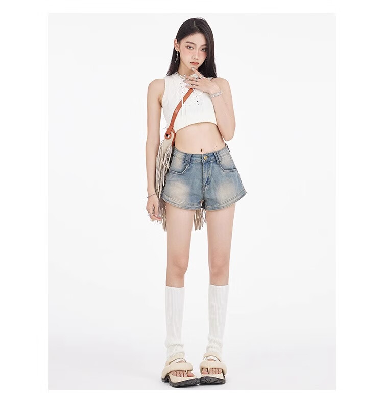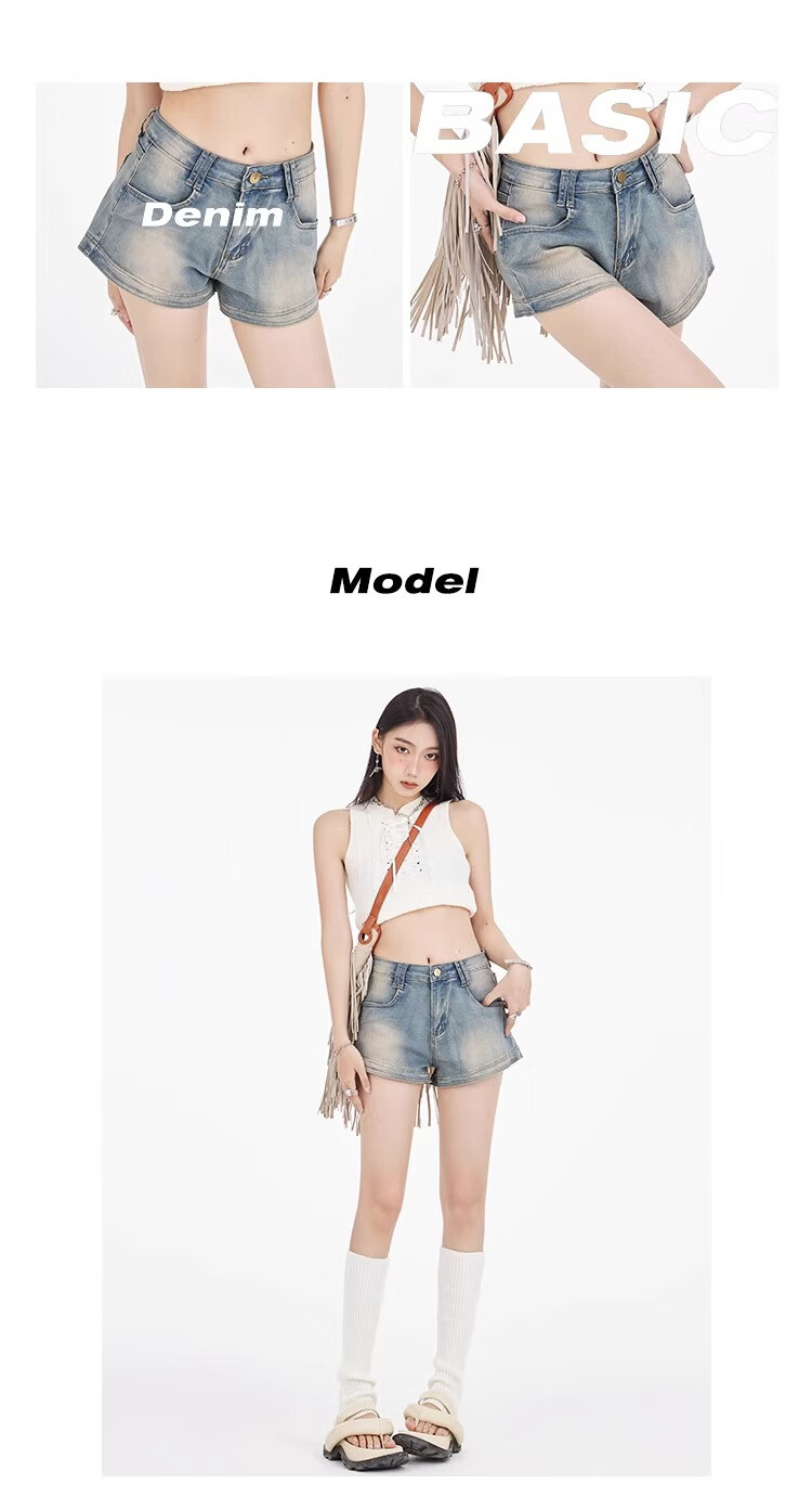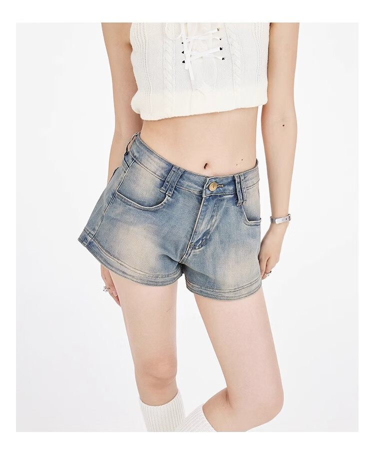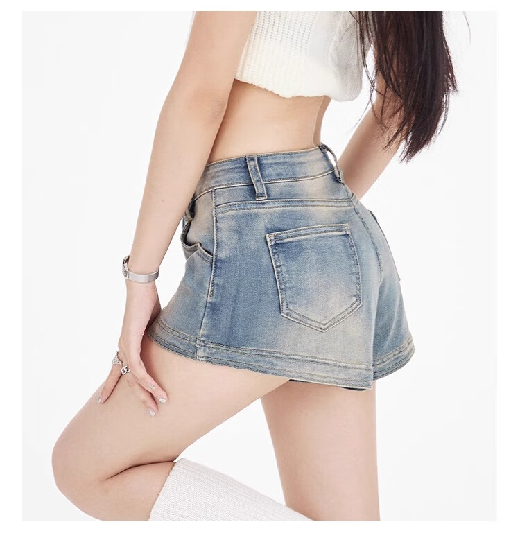 Bai Qixin American retro denim shorts for women summer 2025 high-waisted hot girl hip-covering slim slimming small A-line hot pants retro blue M (96-105Jin Jin is equal to 0.5 kg)
