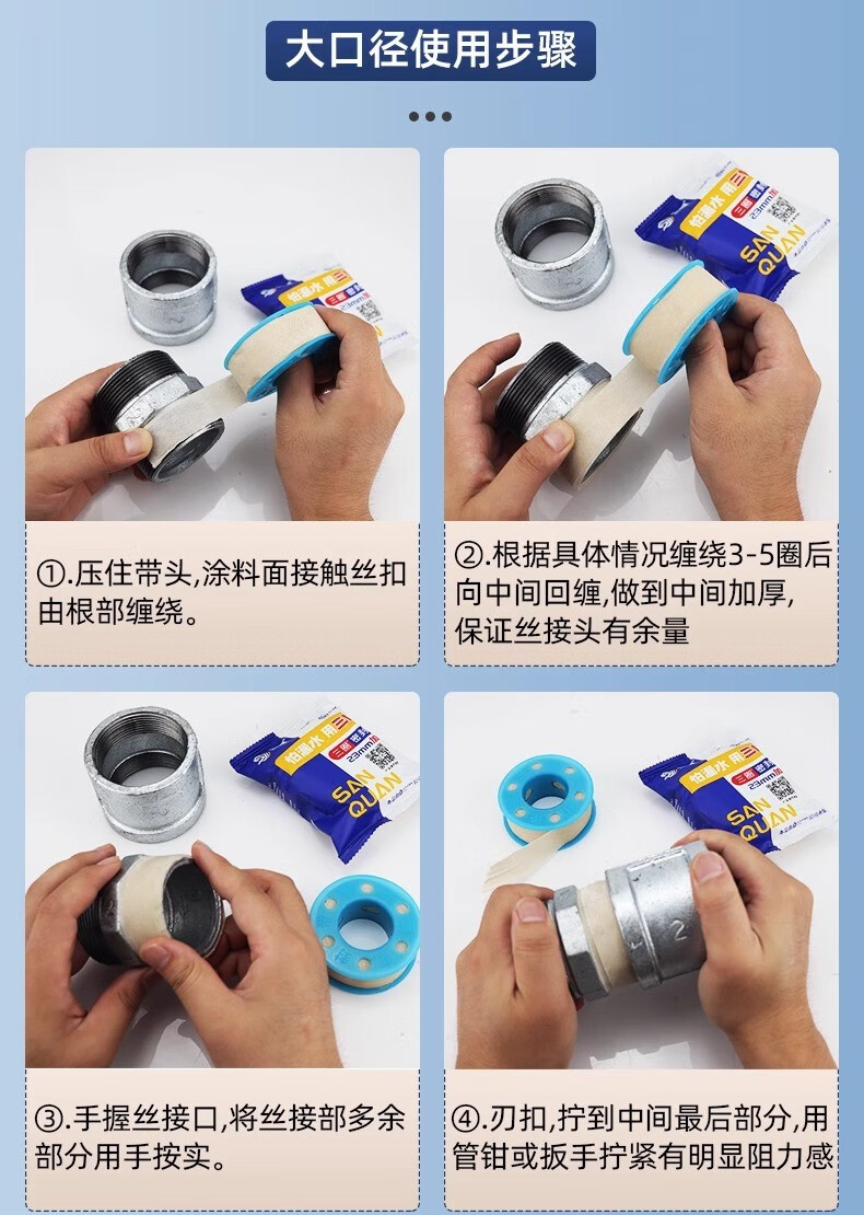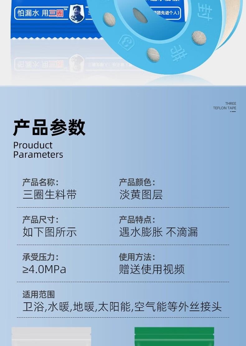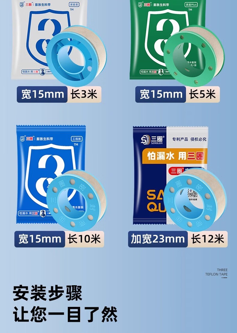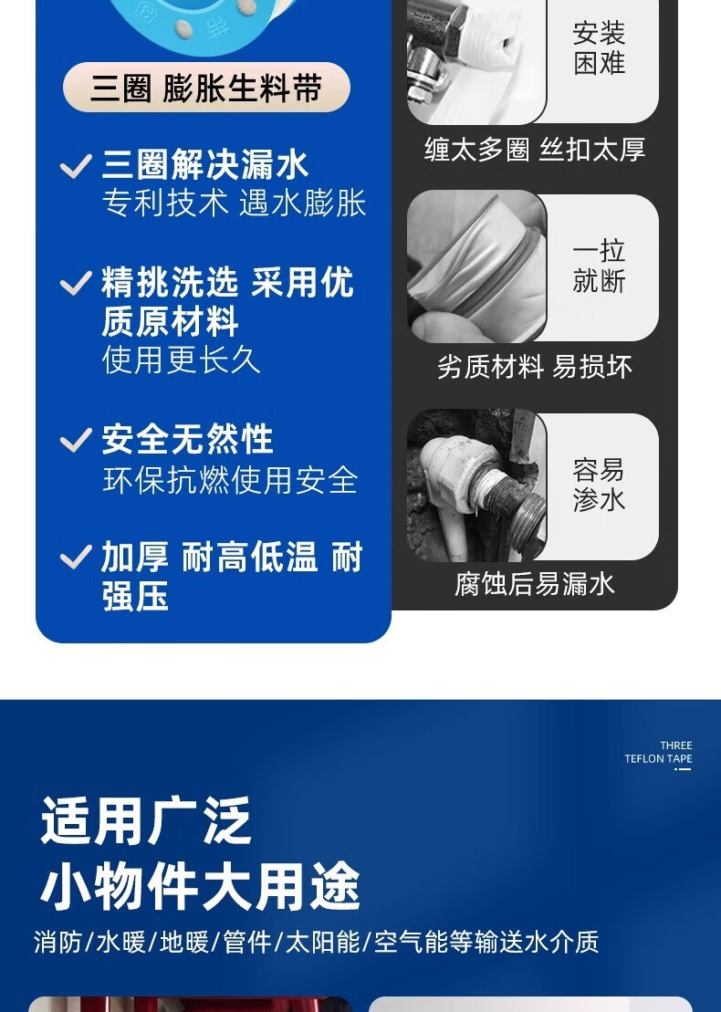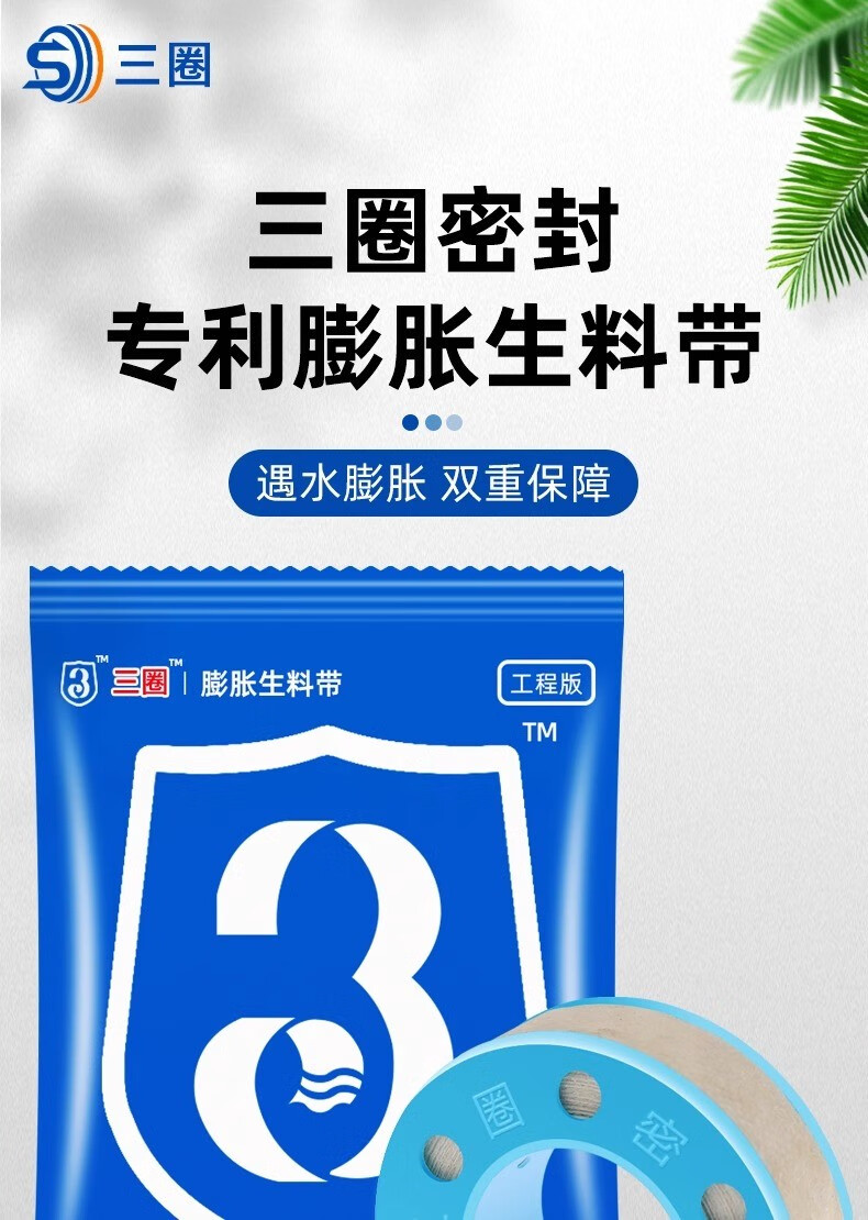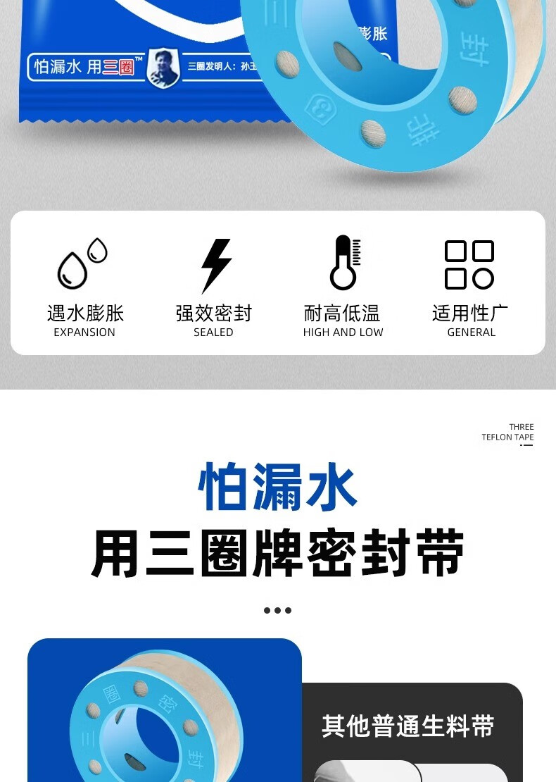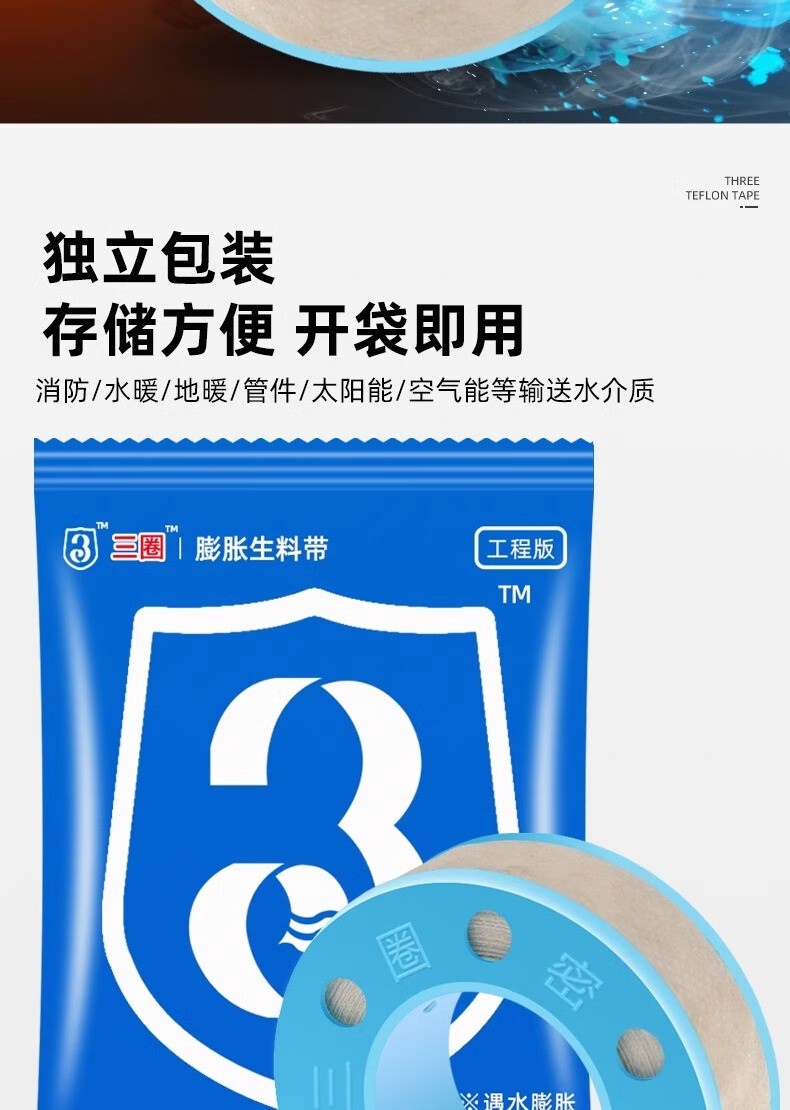 Jifujianwang (JMW) Xinghui three-circle expanded raw material belt waterproof hemp silk plumbing seal widened and thick water-tight waterproof three-circle engineering raw material 1 roll wide 15mm-long 10 meters wet type