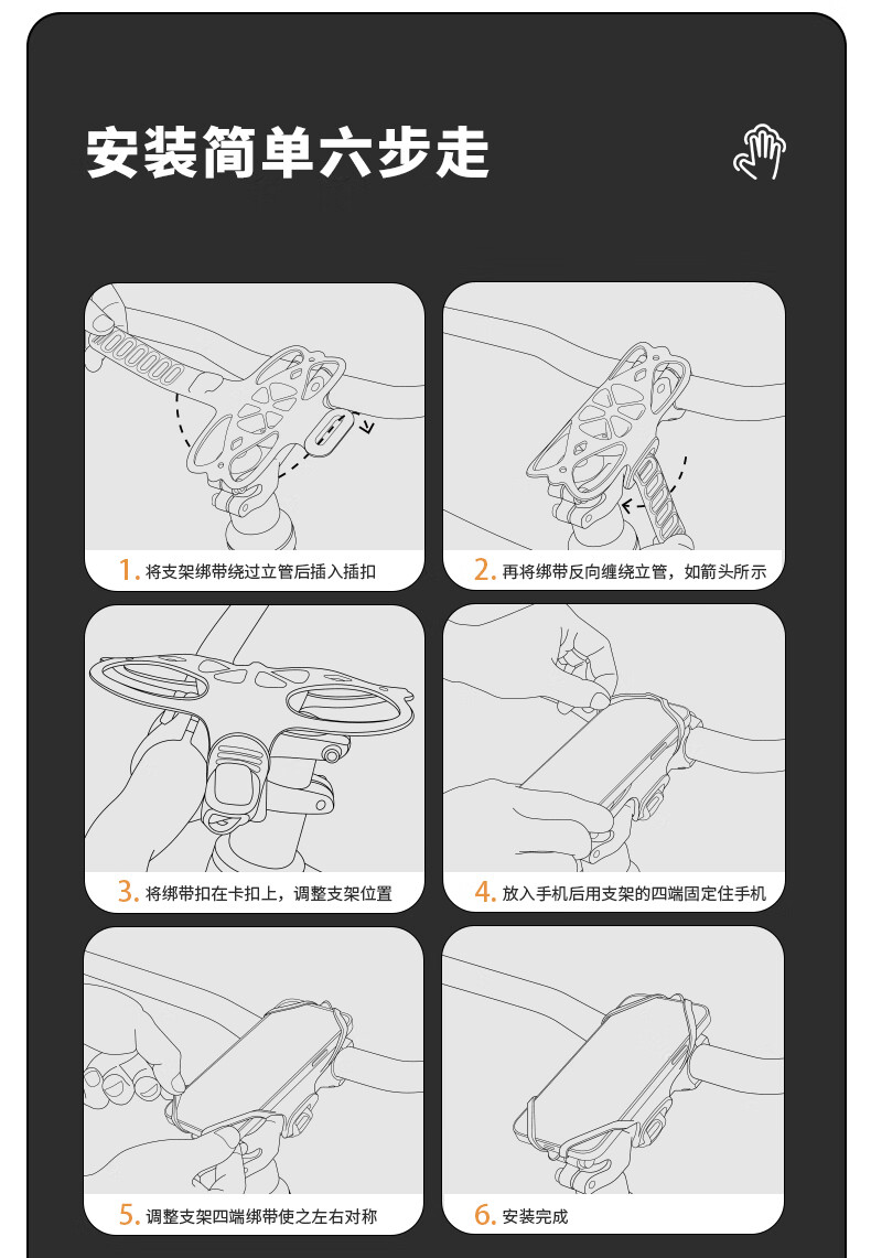 GUB P9 bicycle mobile phone holder mountain road bike silicone strap handlebar mobile phone holder stable, shockproof and anti-fall P9-Black