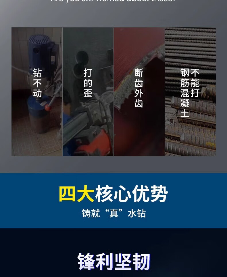 Dongcheng rhinestone drill bit pipe range hood diamond concrete air conditioning wall hole opener dry punching through the wall economical 254x350mm