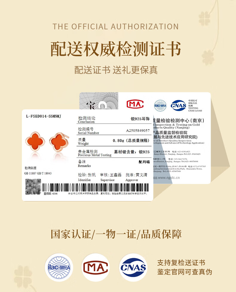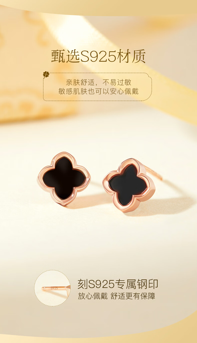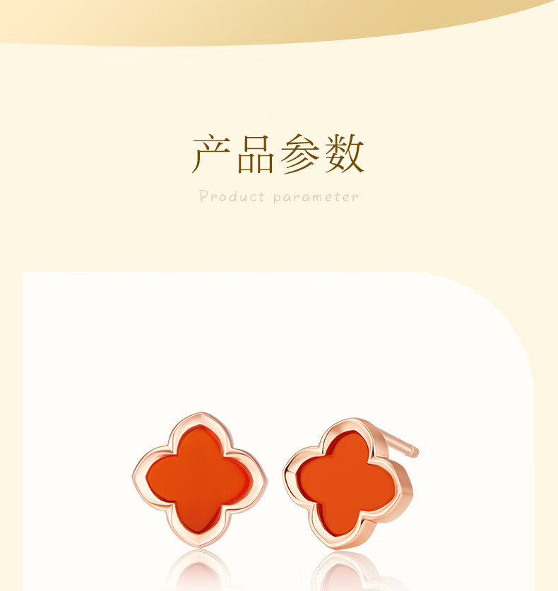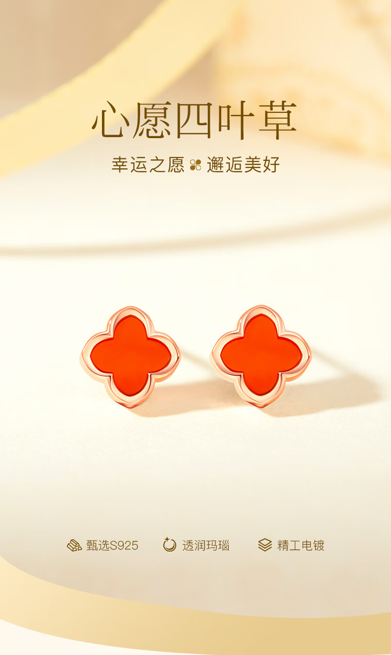 Lao Fengxiang four-leaf clover sterling silver earrings for women earrings ring women's 2025 new birthday gift anniversary gift for girlfriend and wife red agate Lao Fengxiang brand gift box