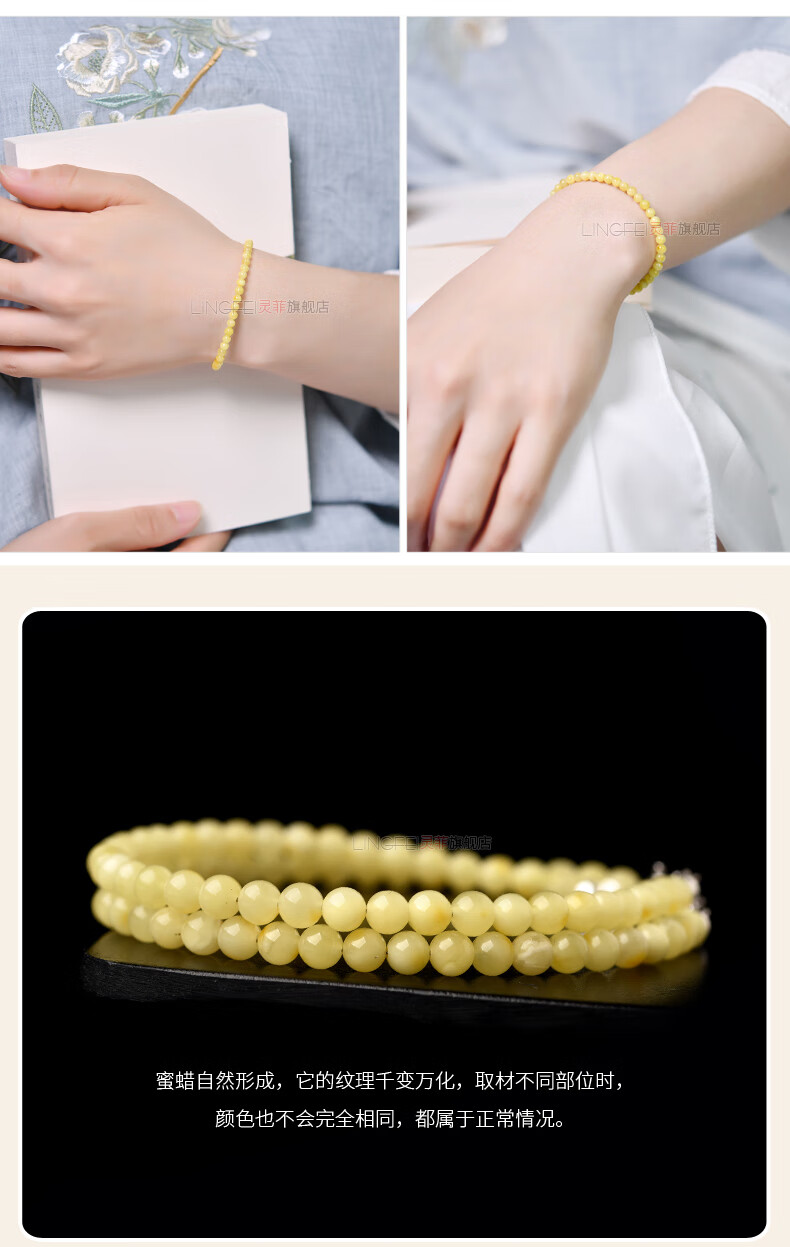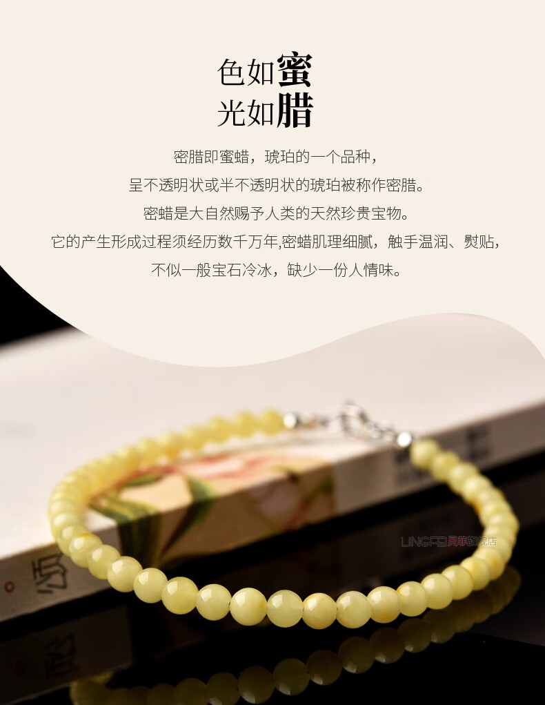 Chuxu collection-grade Russian beeswax bracelet for women, sterling silver amber beeswax, light luxury niche, exquisite cultural and Buddhist beads bracelet, bead diameter about 3mm (S925 silver buckle head + extension chain)