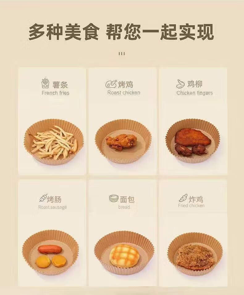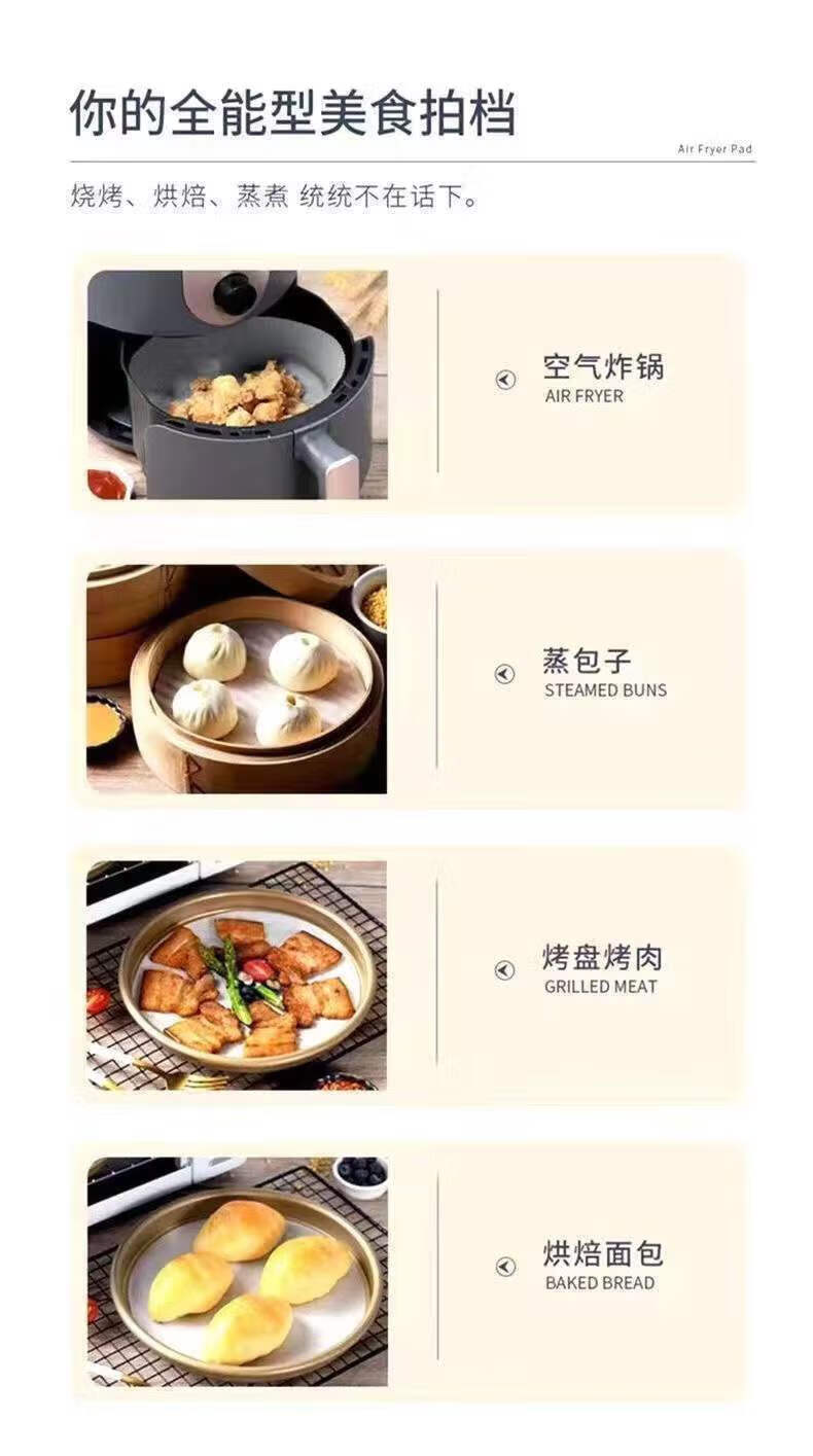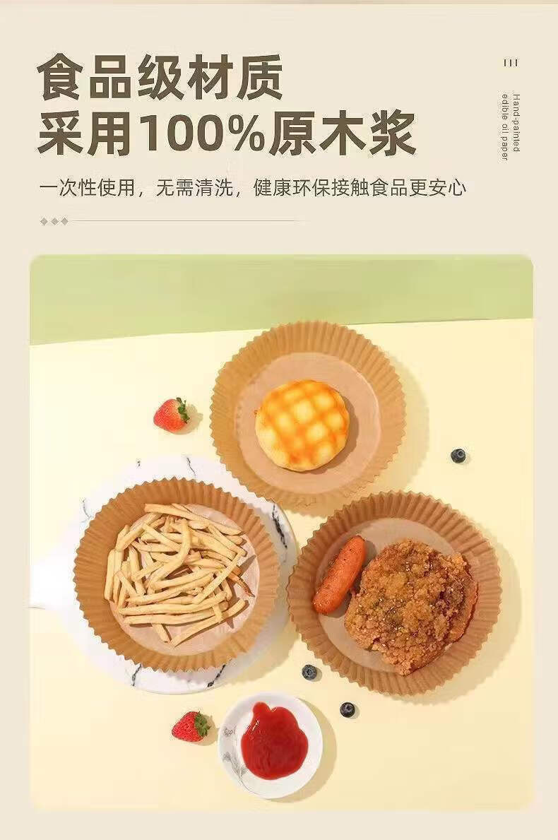 Jimang (JIMANG) 200 sheets of large and heightened frying paper for air fryers, grease-proof paper, round oil-absorbing paper, baking paper, square frying paper, 50 pieces