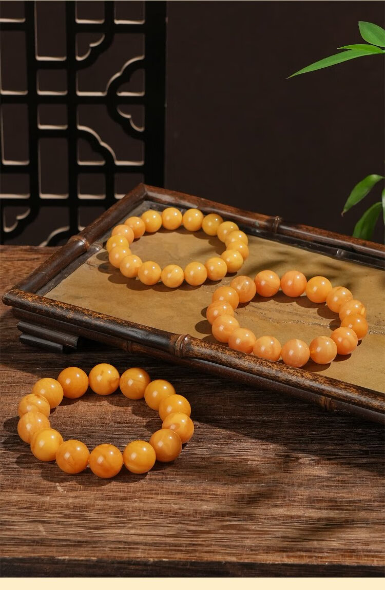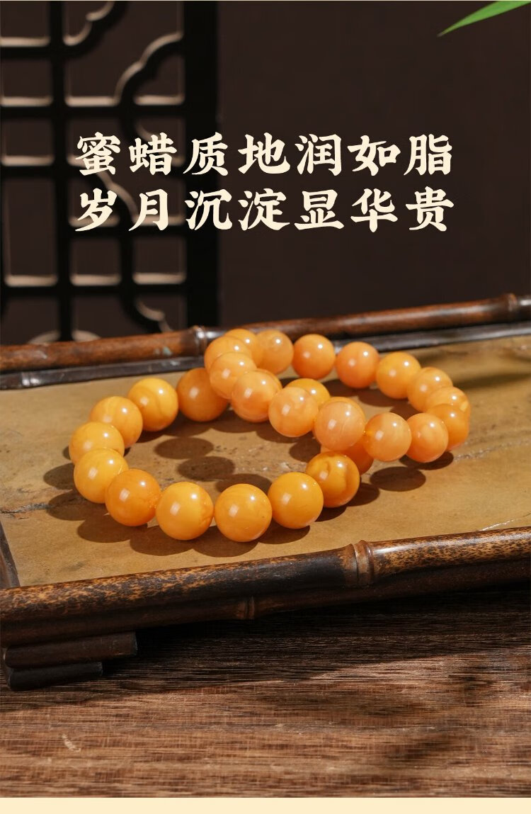 Qingchengshan Cultural and Creative Natural Beeswax Bracelet Russian Material Presbyopia Wax Flow Pattern Men's Bracelet Collection Grade Father's Day Gift for Men 12mm Flower Wax Bracelet Has Been Fragranced