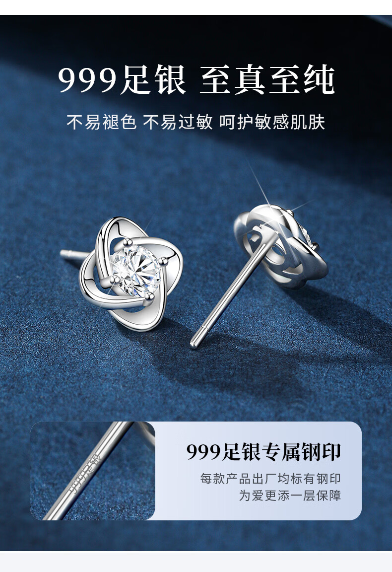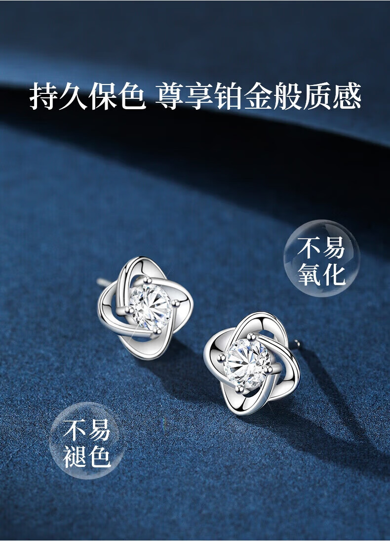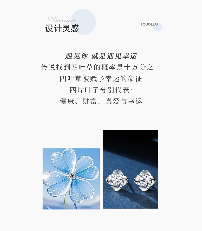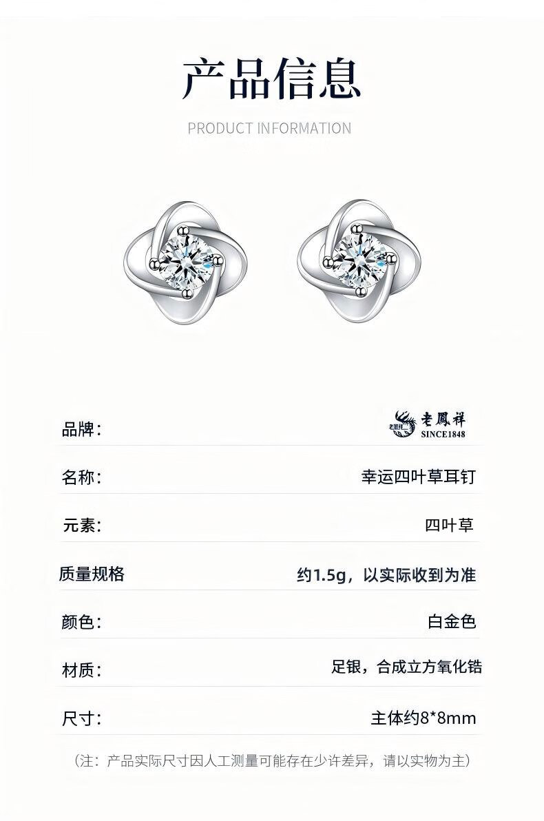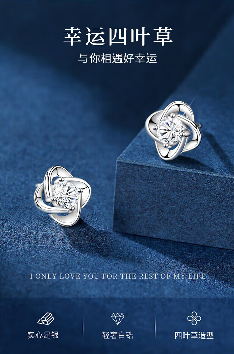 Lao Fengxiang sterling silver earrings for women, four-leaf clover pure silver earrings for women, new birthday gifts for girlfriends, wives and besties during holidays, Lao Fengxiang brand gift box, four-leaf clover earrings