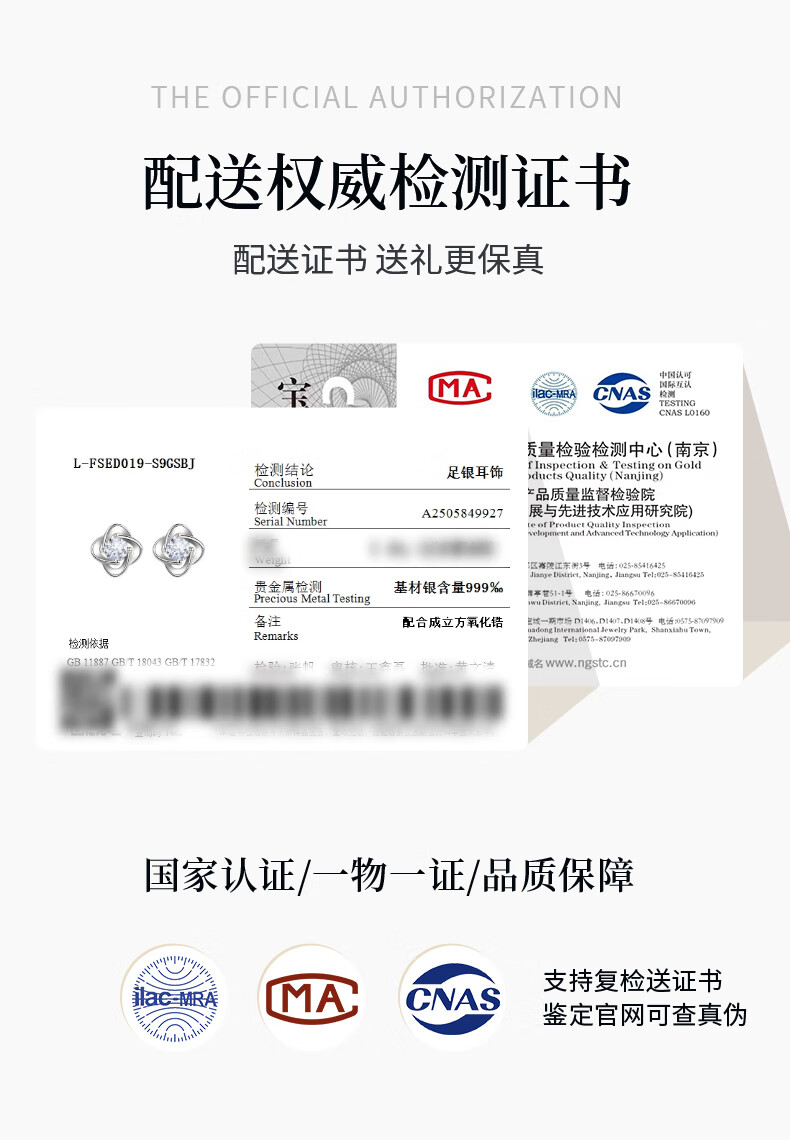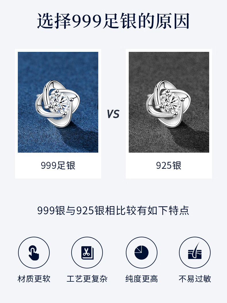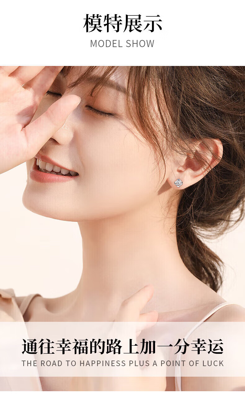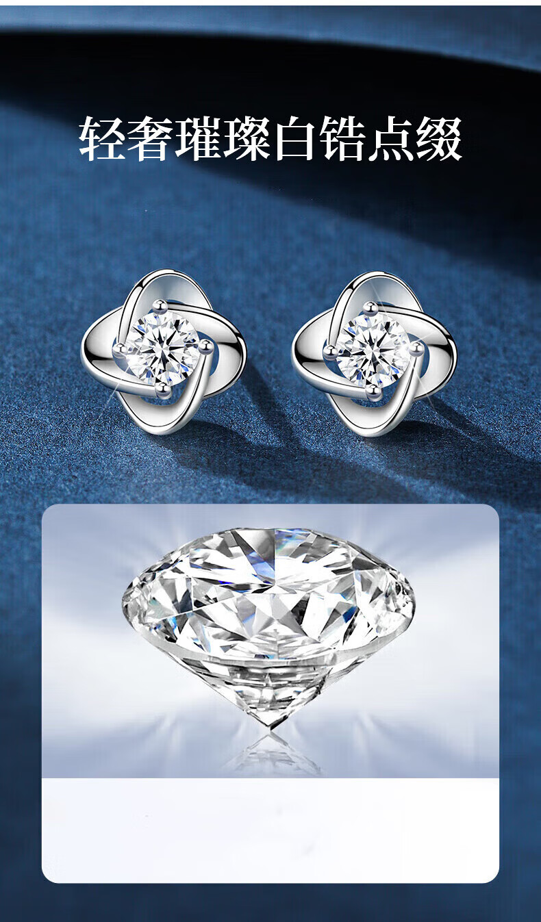 Lao Fengxiang sterling silver earrings for women, four-leaf clover pure silver earrings for women, new birthday gifts for girlfriends, wives and besties during holidays, Lao Fengxiang brand gift box, four-leaf clover earrings
