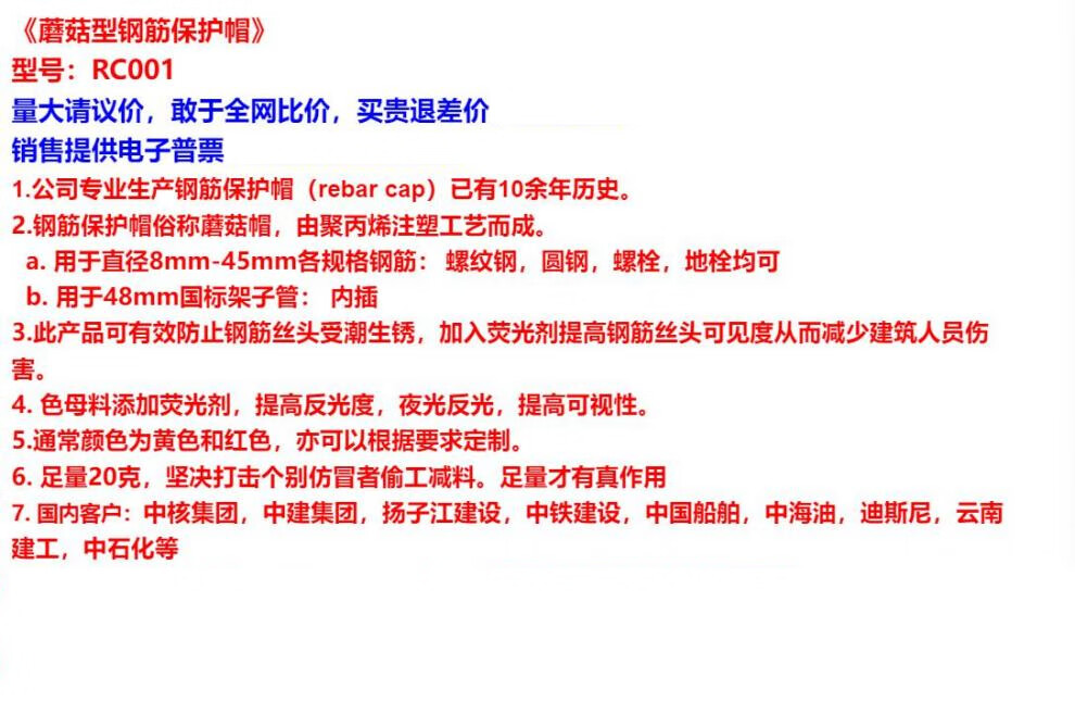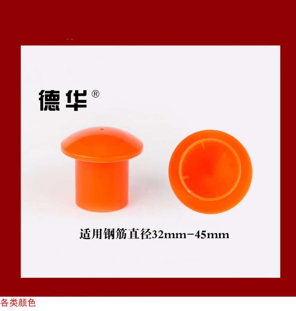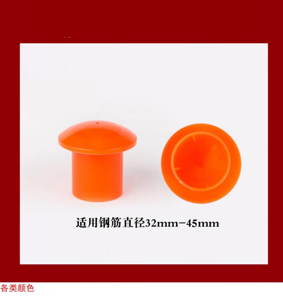 Suitable steel bar protective caps, steel bar protective sleeves, threaded steel bar protective caps, mushroom caps, wire head protective caps, shelf pipe caps, steel bar diameter 33mm-45mm, thickened with fluorescence, 50 pcs