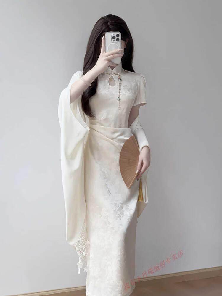 Pierre Cardin cheongsam 2025 new temperament young style national style silk dress daily new Chinese style girl summer dress pear white-cheongsam S