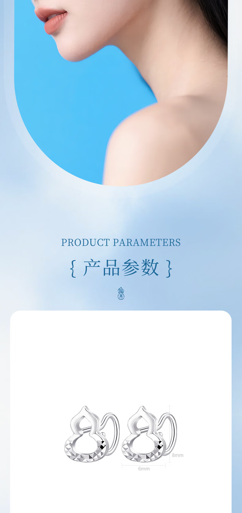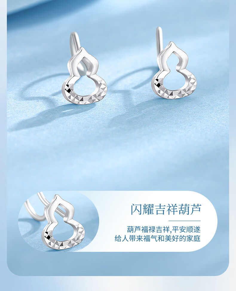 Chinese Gold Gourd Platinum Earrings Women's Platinum Crushed Ice Earrings Gift for Girlfriend and Wife's Birthday Practical Platinum Gourd Ear Hooks