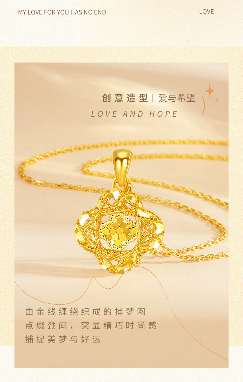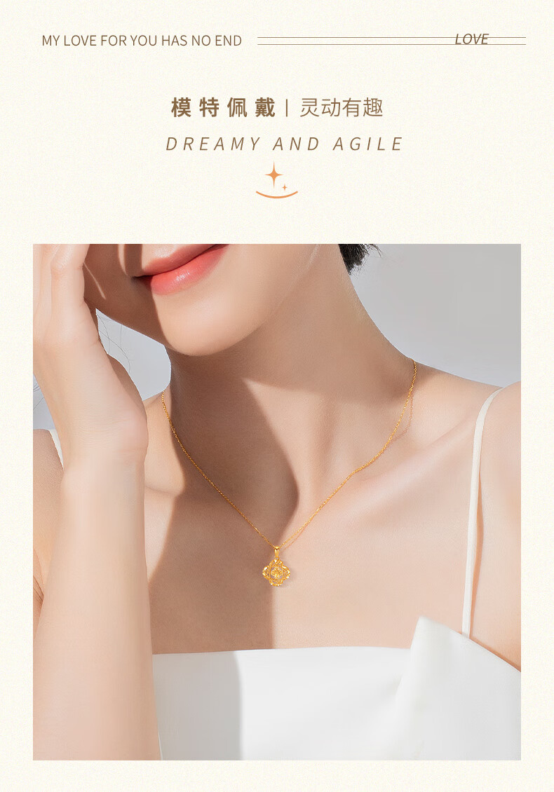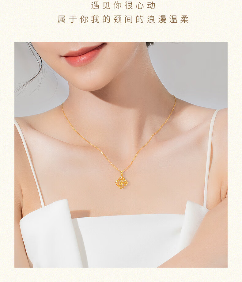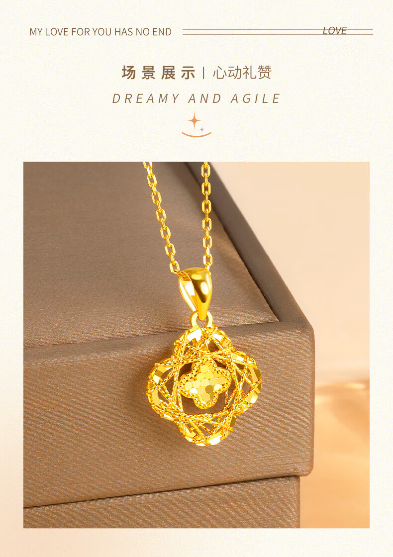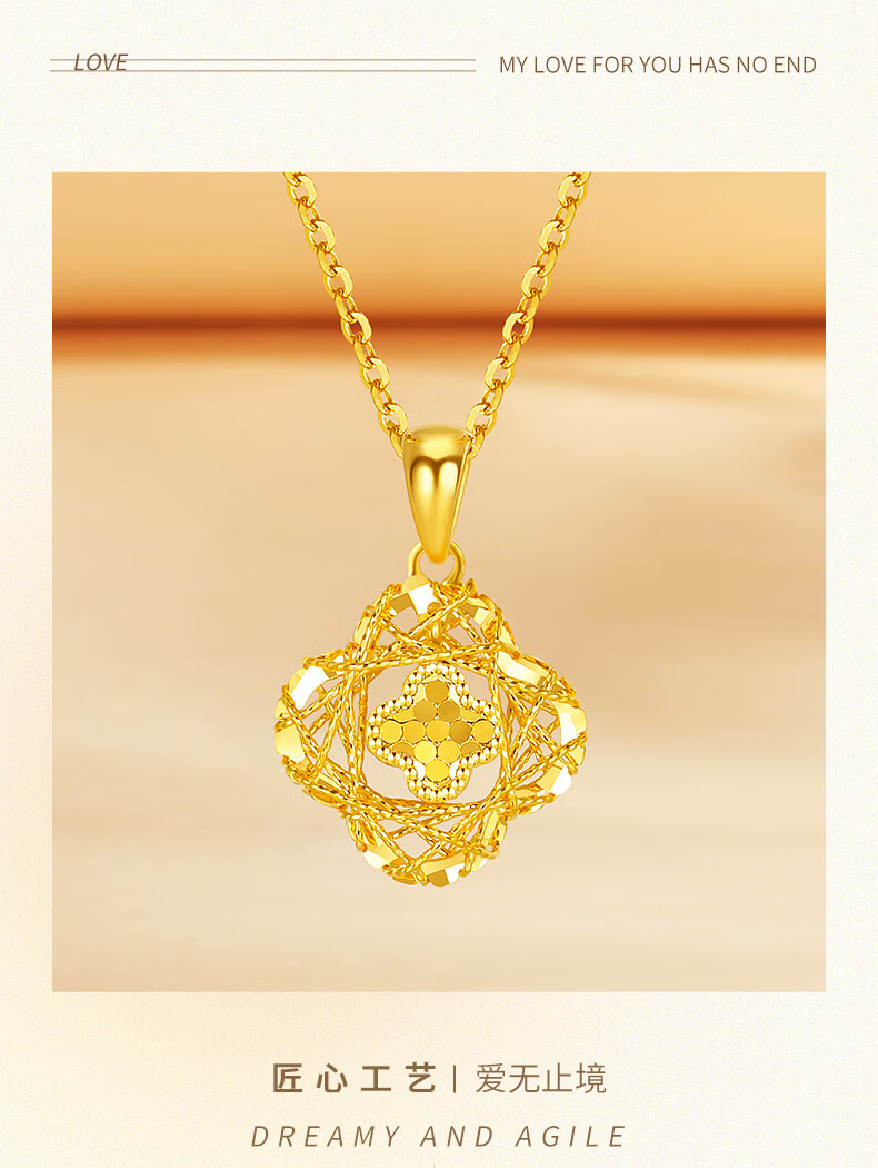 Chow Tai Sang Gold Necklace Crushed Ice Four-leaf Clover Gold Necklace Women's Valentine's Day Gift for Girlfriend Wife Mom Birthday Gift Pure Gold About 1.15-1.25g + Free S925 Silver Chain/Gift Box