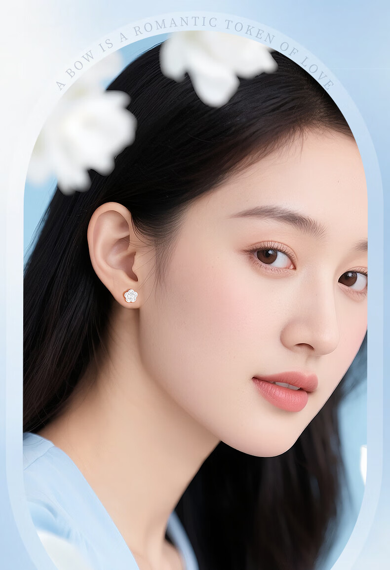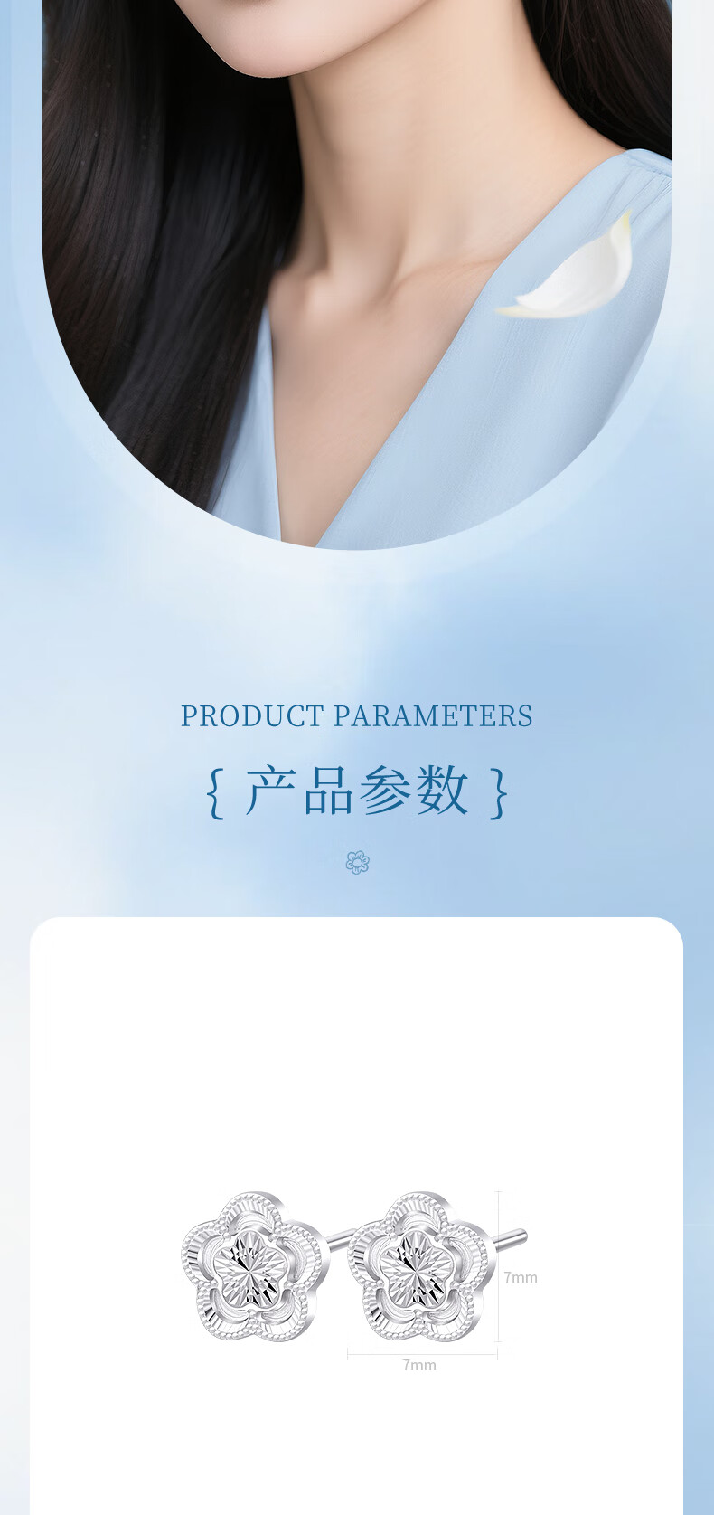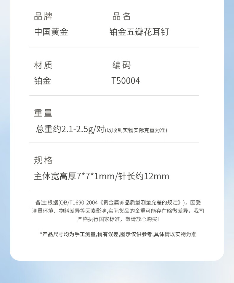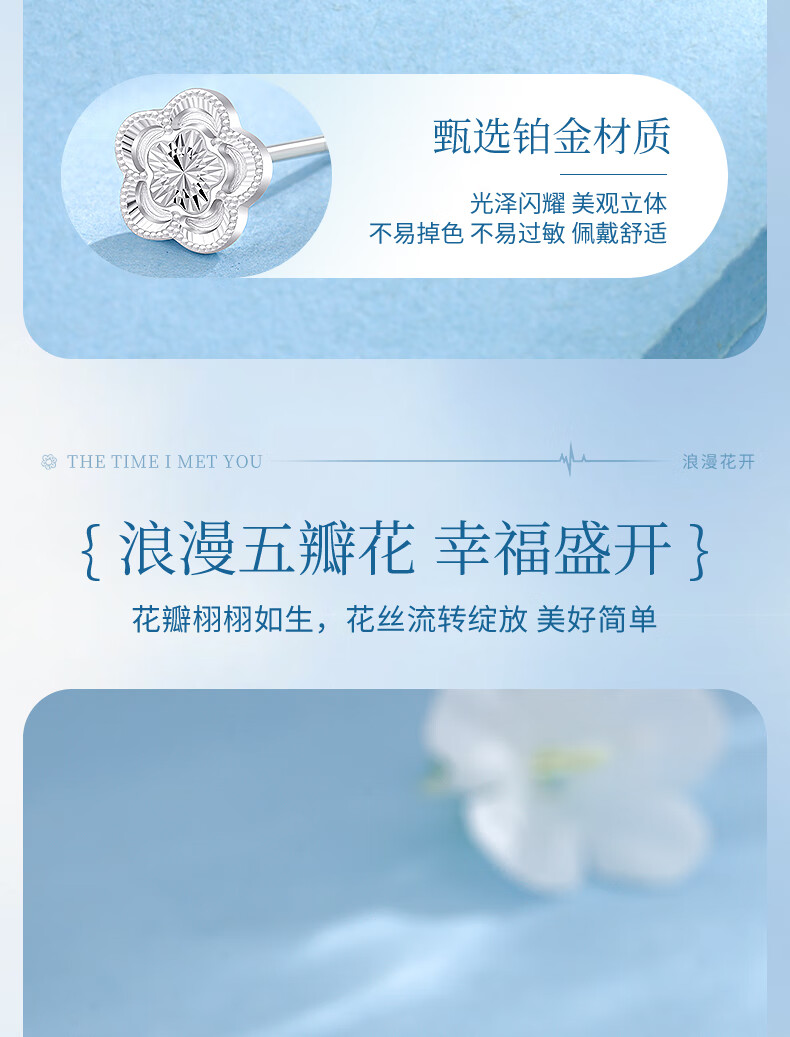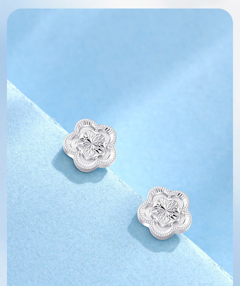 Chinese gold five-petal flower platinum earrings for women platinum earrings gift for girlfriend and wife's birthday practical and practical platinum five-petal flower earrings