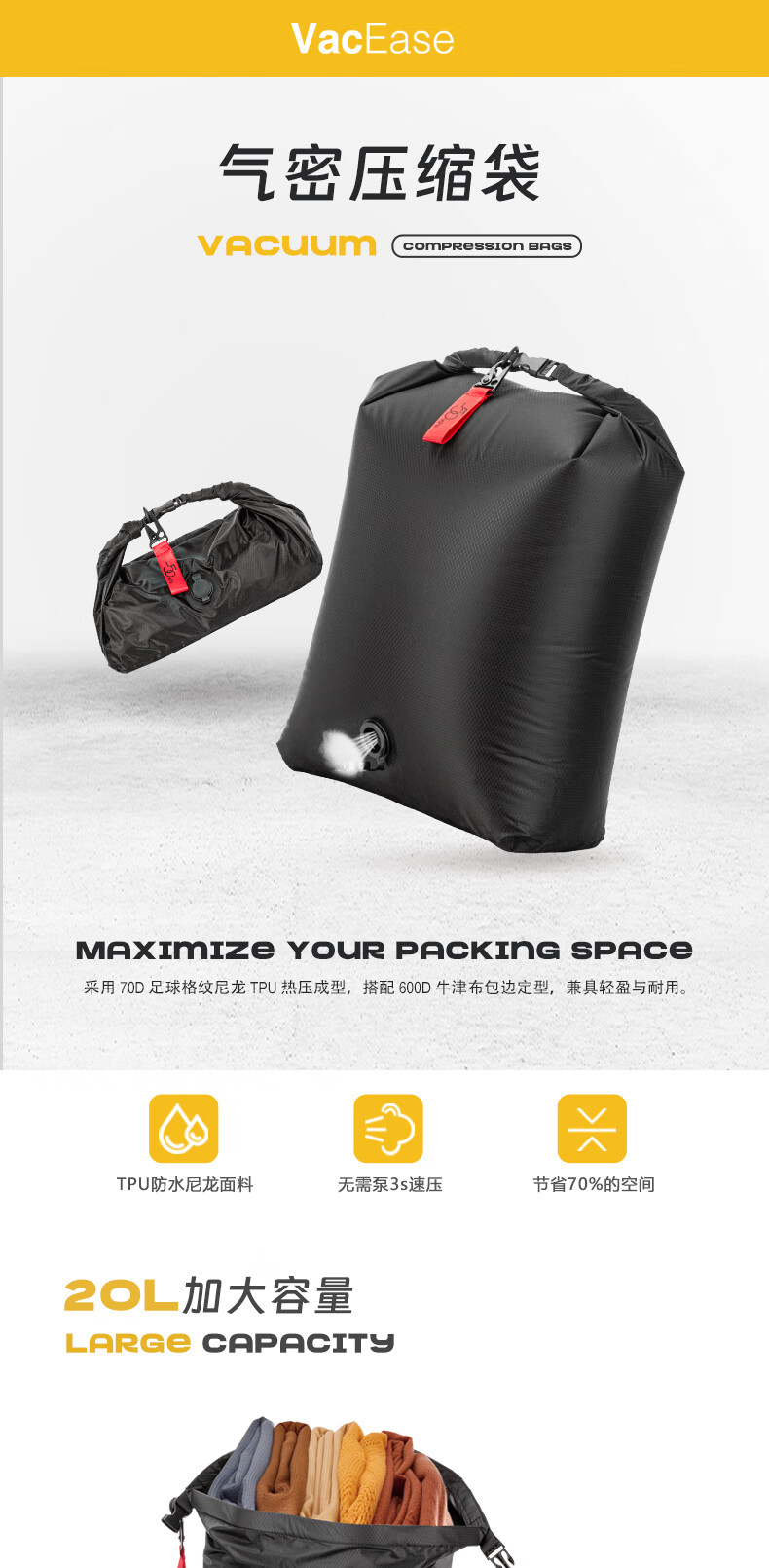 Li Shen vacuum compression storage bag portable large capacity waterproof multifunctional luggage bag clothing bag dustproof business trip black (single pack)