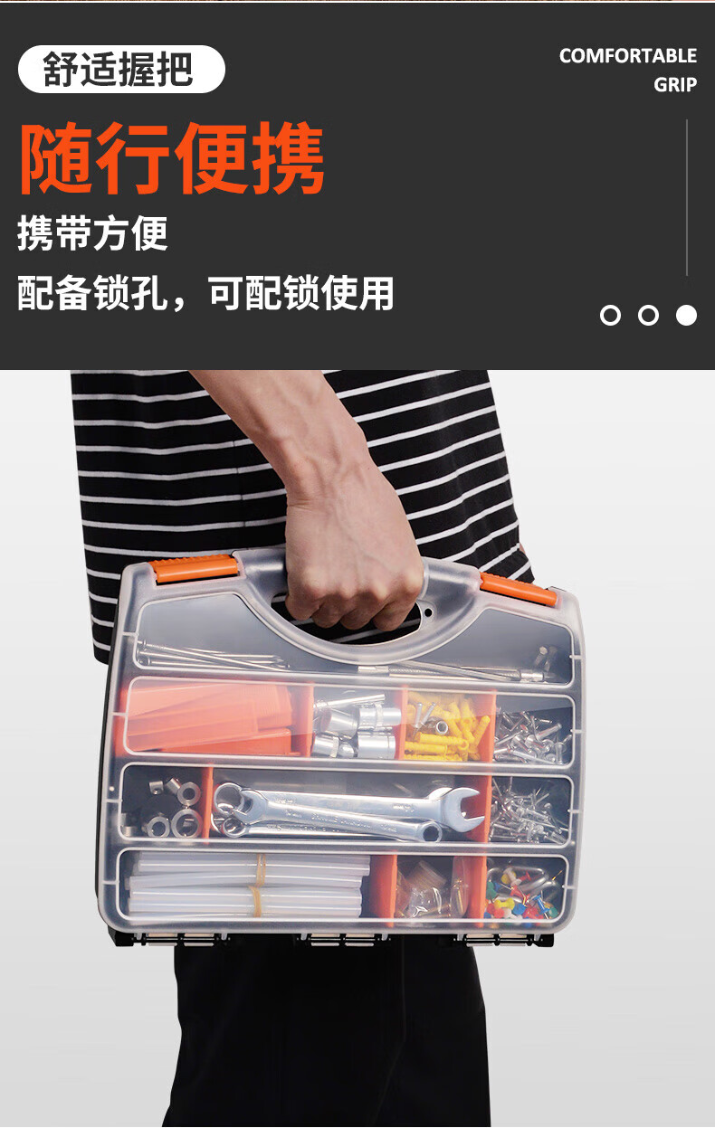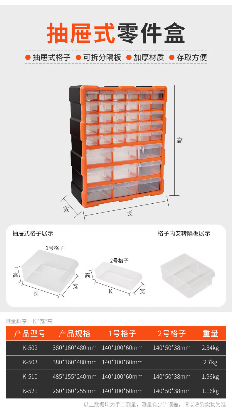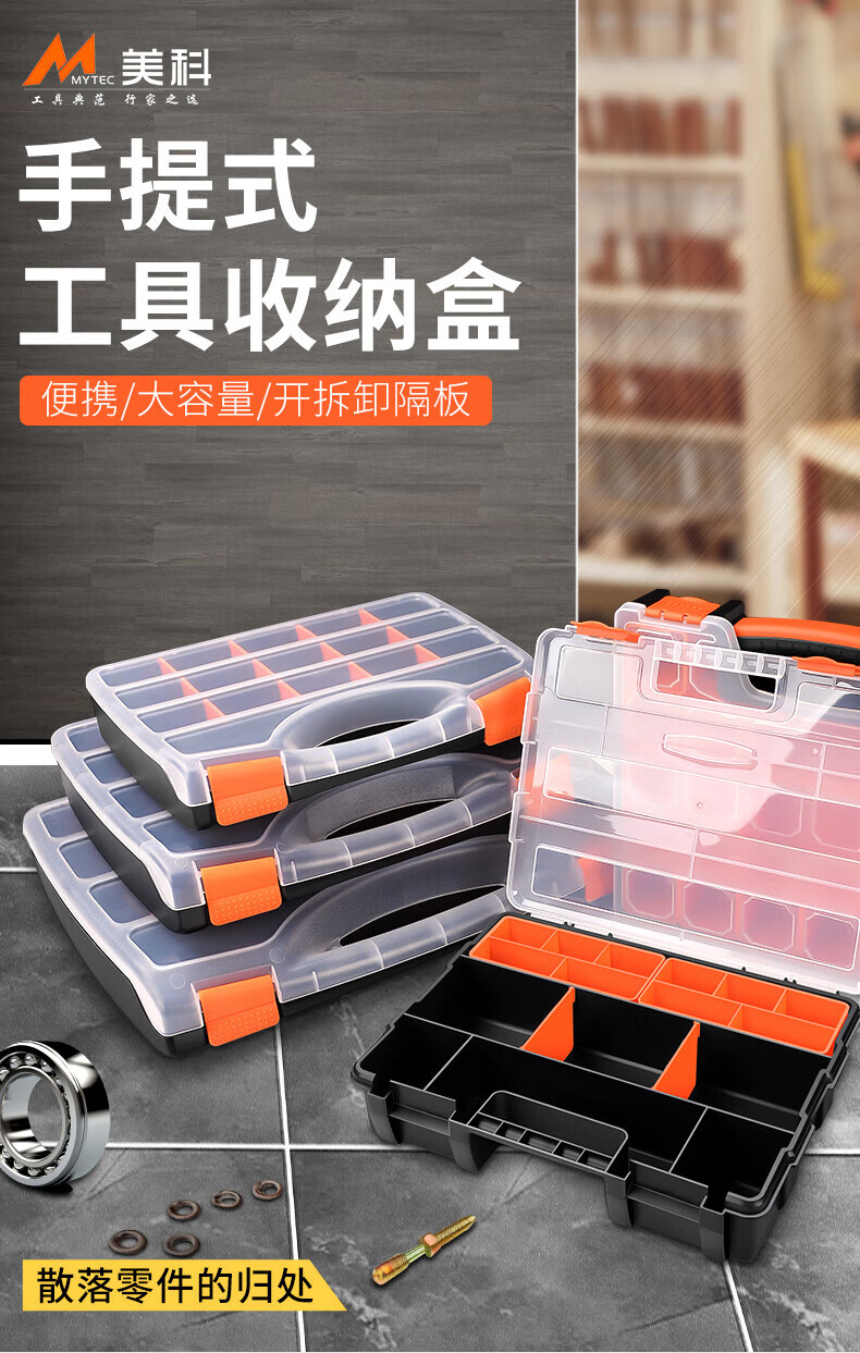 Parts storage box, drill bit sorting box, tool box, classification compartment, screw storage box, portable accessory box, B-460 large compartment parts box - detachable
