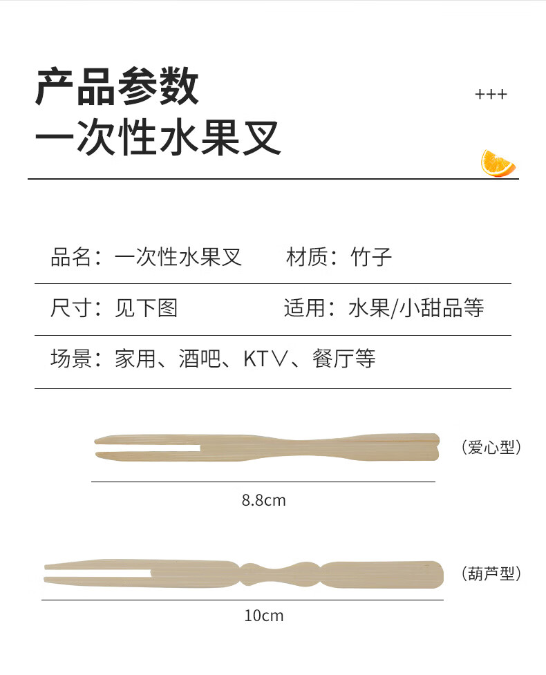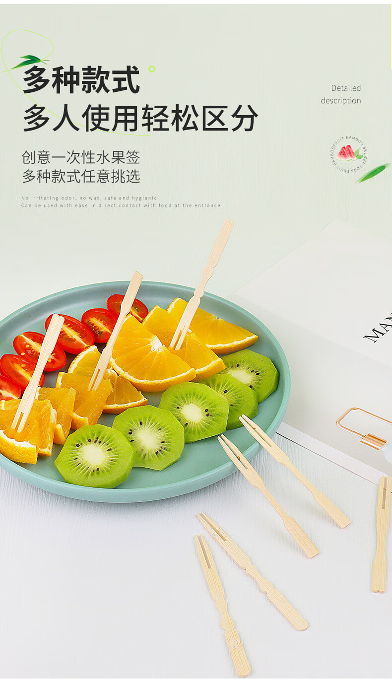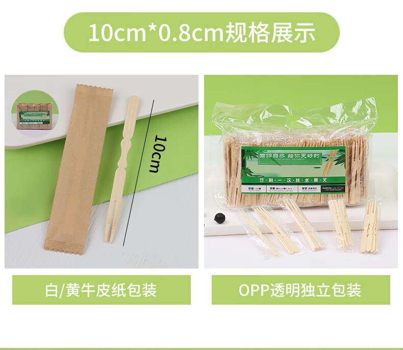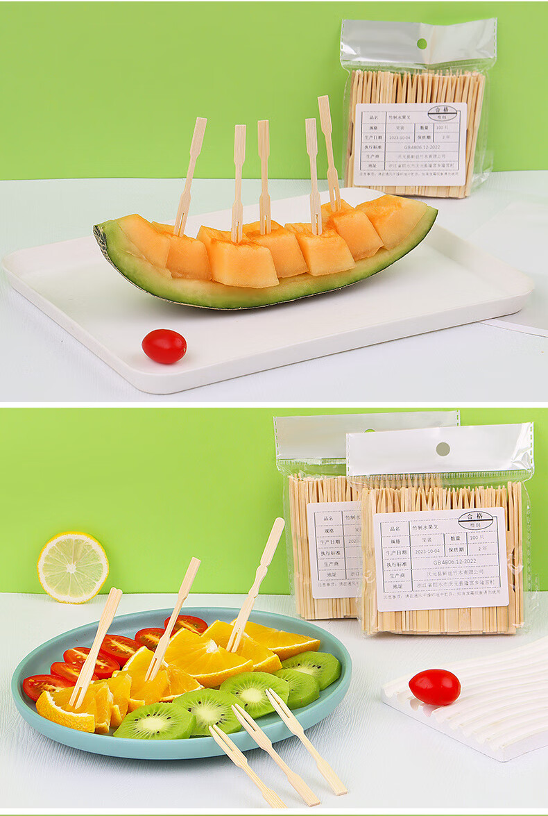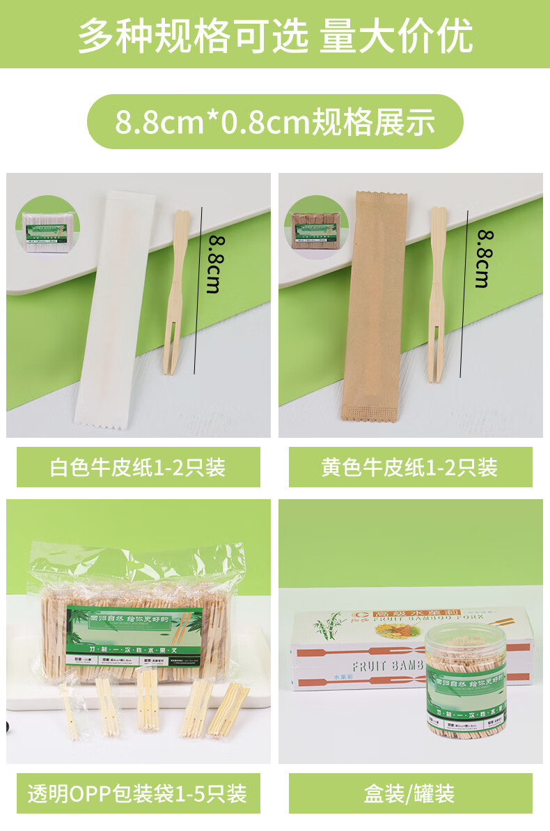 Qinkai disposable fruit fork thickened bamboo skewer two-tine fork cake dessert household fork kraft paper package yellow kraft paper 1 piece total 100 pieces length 8.8CM