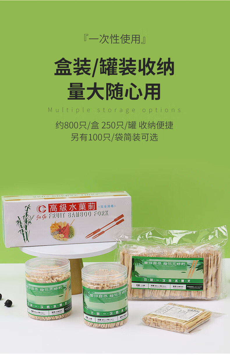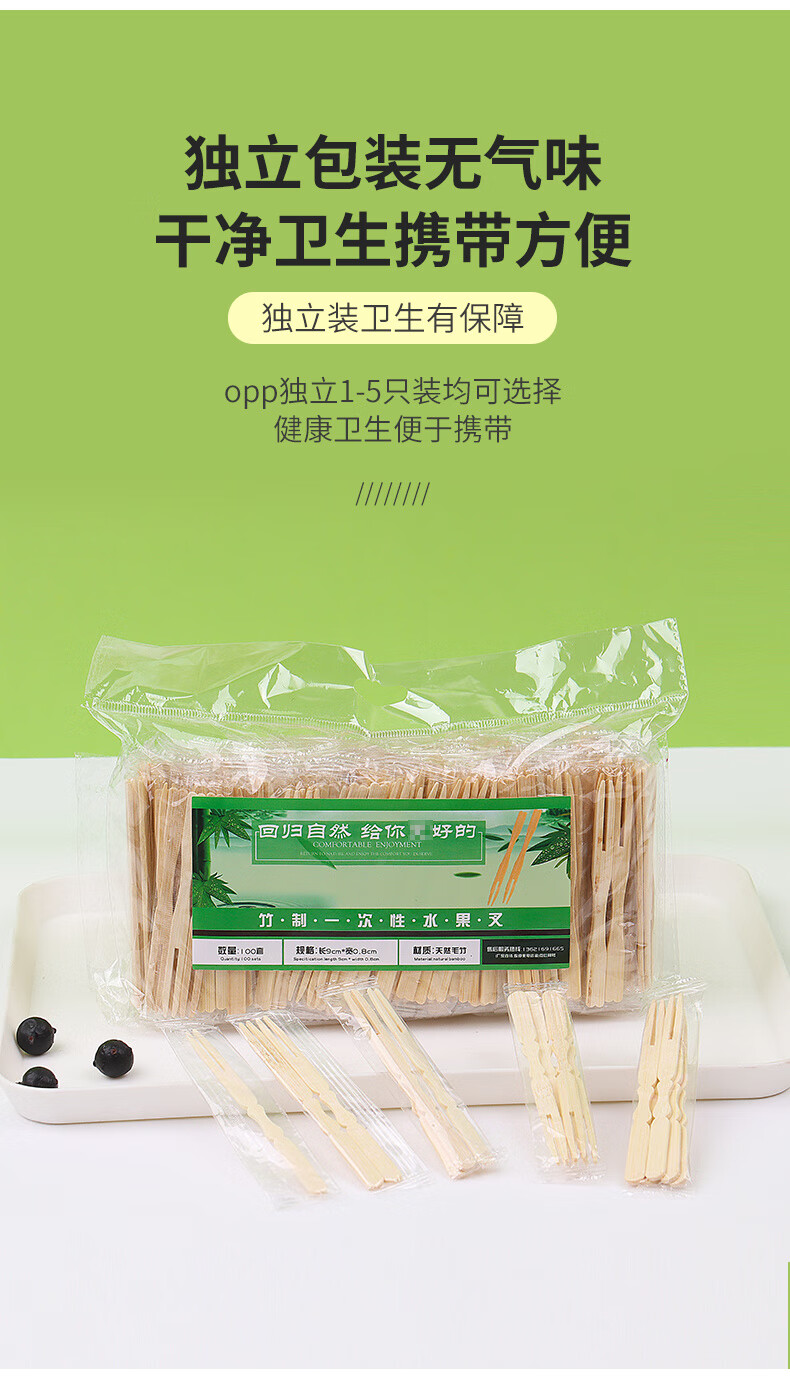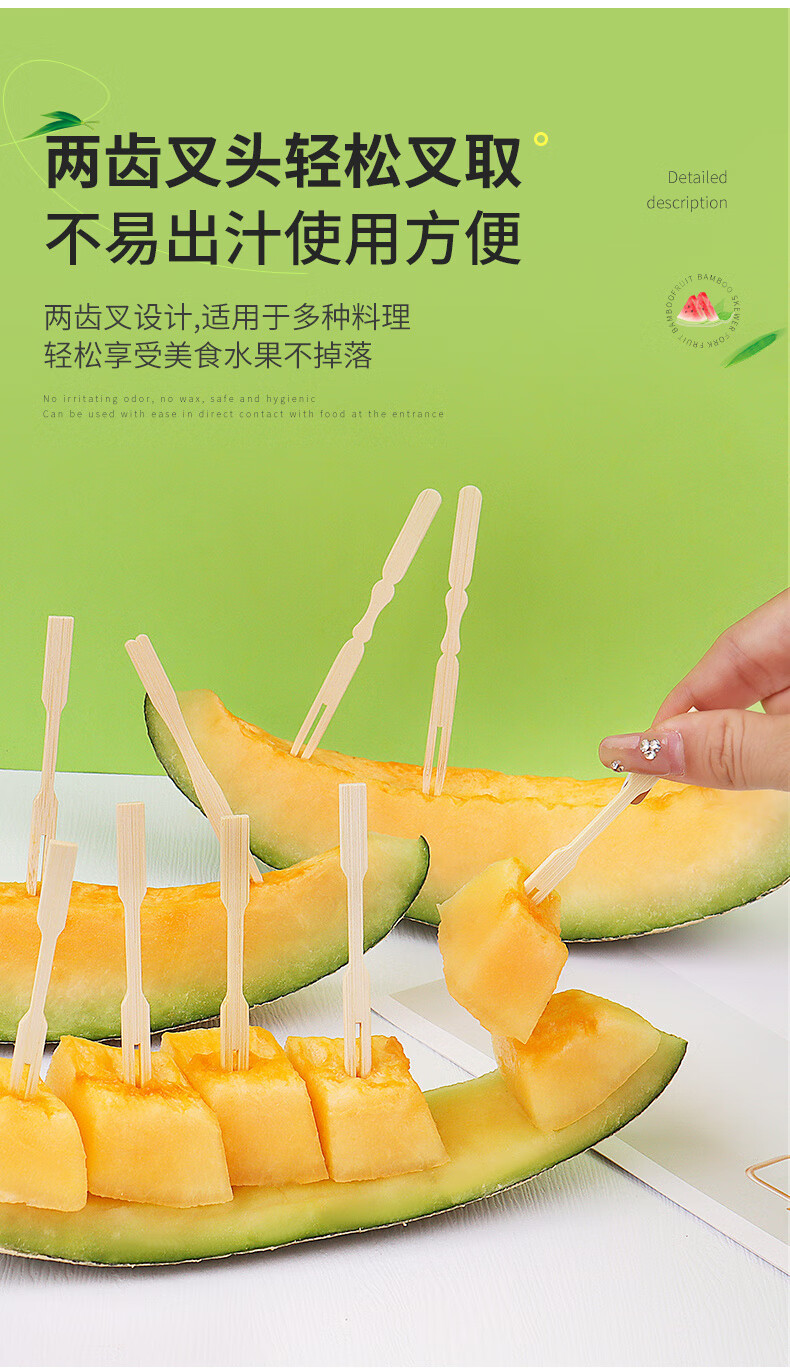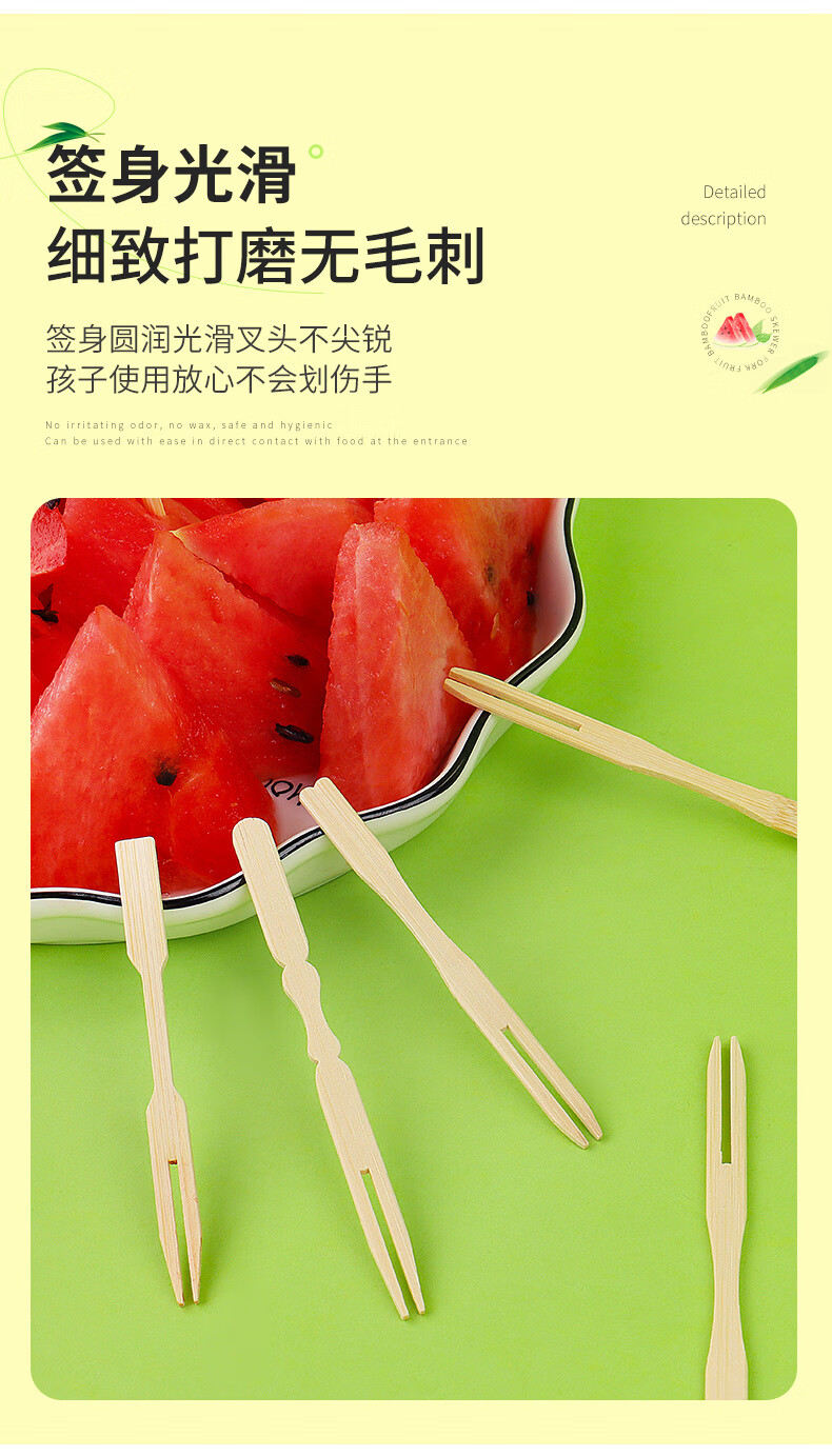 Qinkai disposable fruit fork thickened bamboo skewer two-tine fork cake dessert household fork kraft paper package yellow kraft paper 1 piece total 100 pieces length 8.8CM