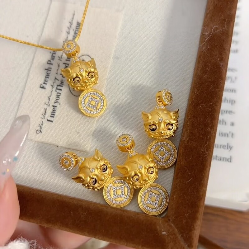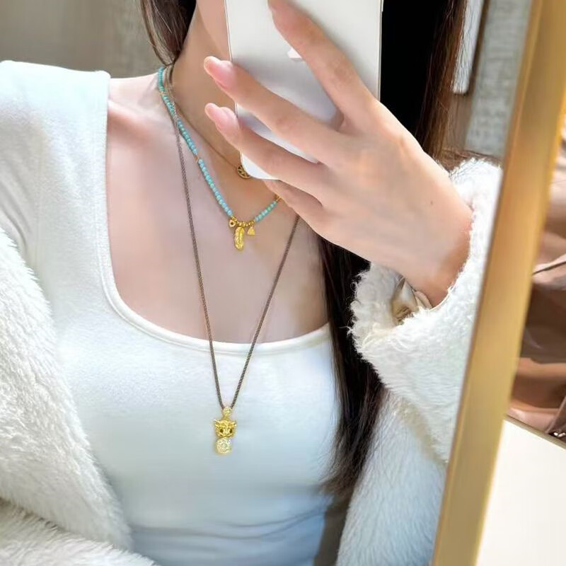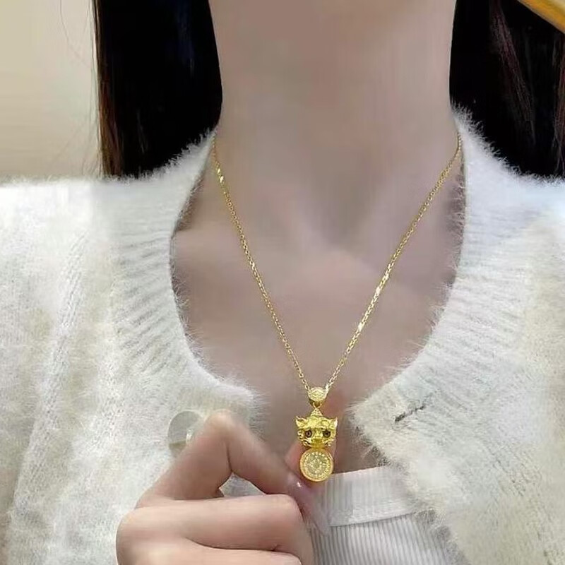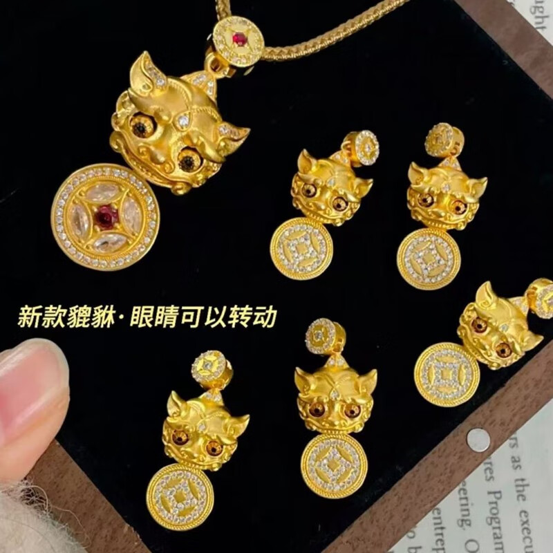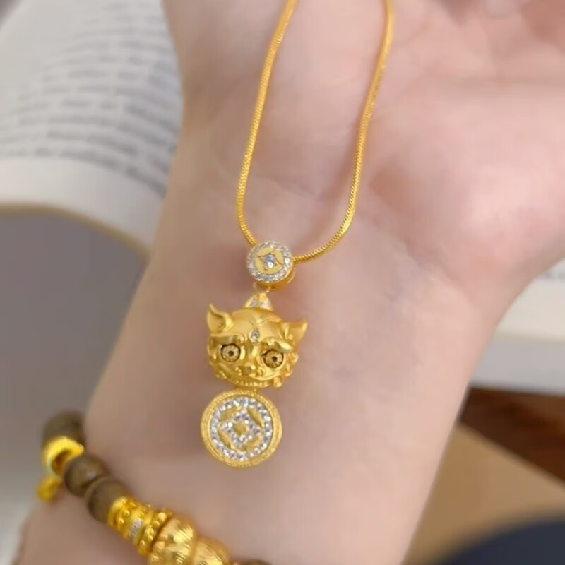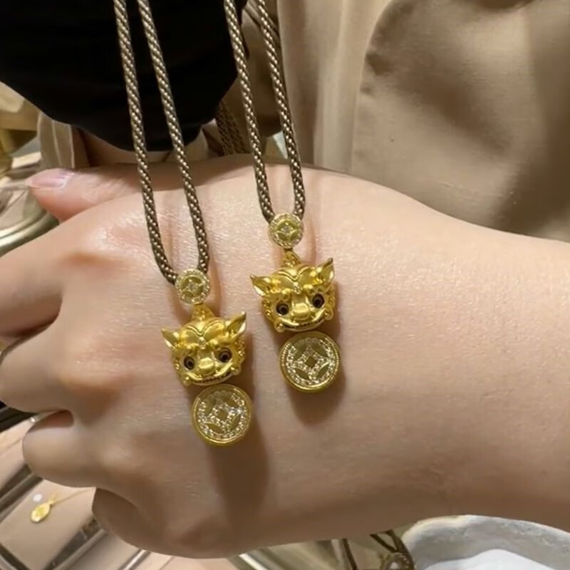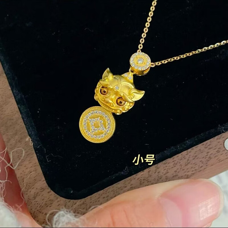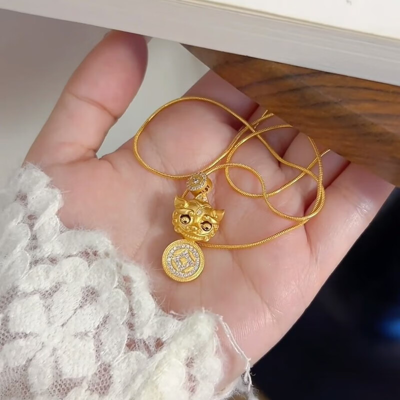 Qian Sheng Yuan Lao Phoenix 999 gilt New Year blinking ancient method light luxury Wei Xue Pixiu diamond copper coin Xiangyun pendant necklace large blinking Pixiu necklace hangs the quality of Lao Fengxiang